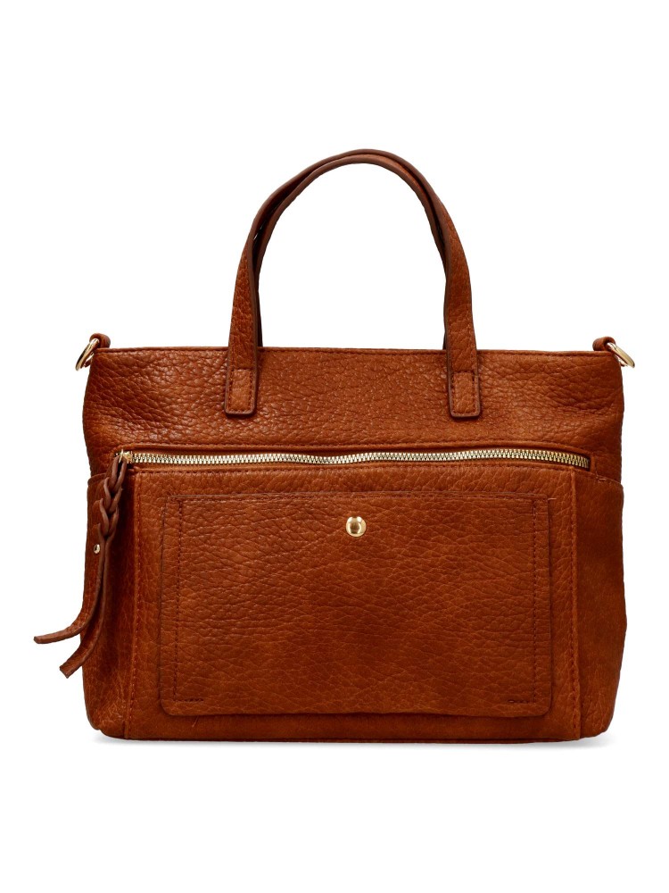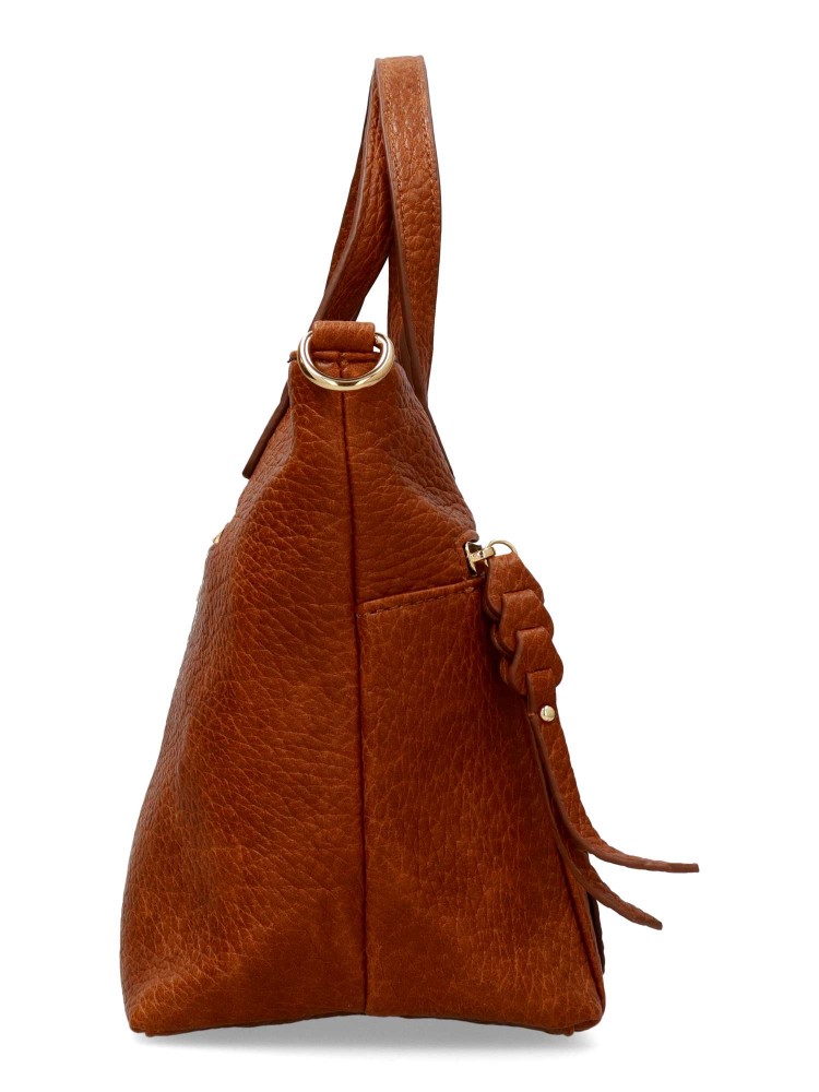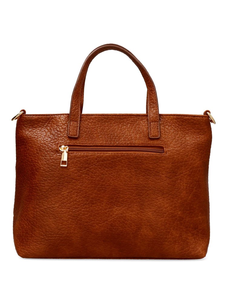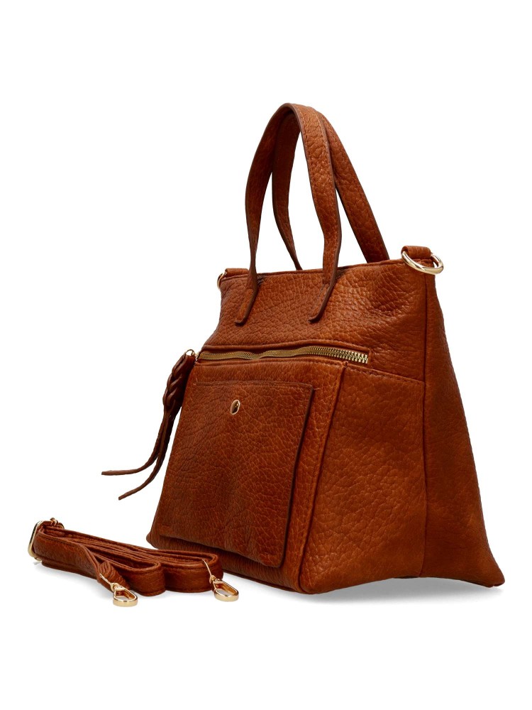Bolso de mano para mujer, con bandolera y cierre de cremallera. Color marrón. Medidas aproximadas (alto x ancho x fondo): 23 x 35 x 14 cm.