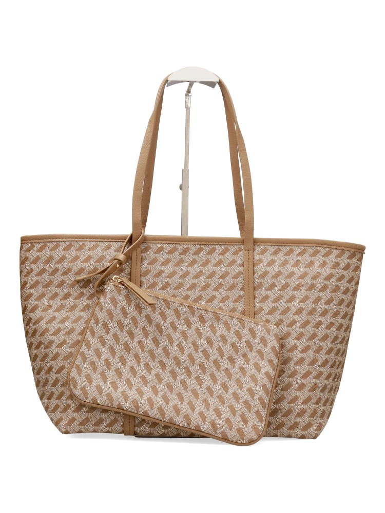 Bolso de hombro para mujer, con cierre de cremallera. Neceser a juego. Color kaki. Medidas aproximadas (alto x ancho x fondo): 26 x 47 x 13 cm.