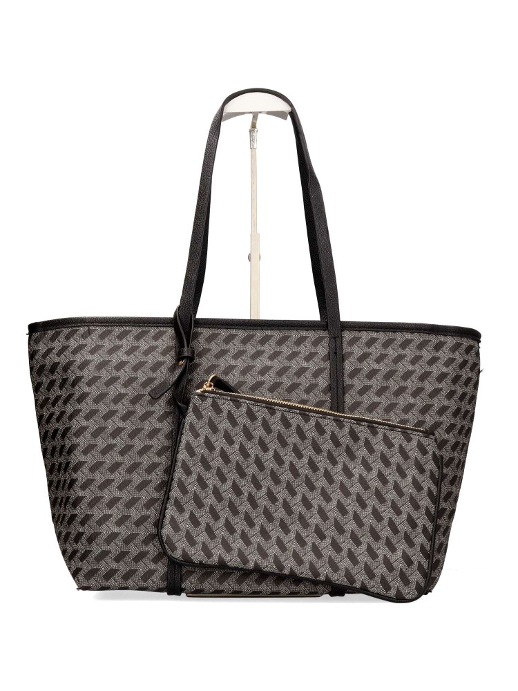 Bolso de hombro para mujer, con cierre de cremallera. Neceser a juego. Color negro. Medidas aproximadas (alto x ancho x fondo): 26 x 47 x 13 cm.