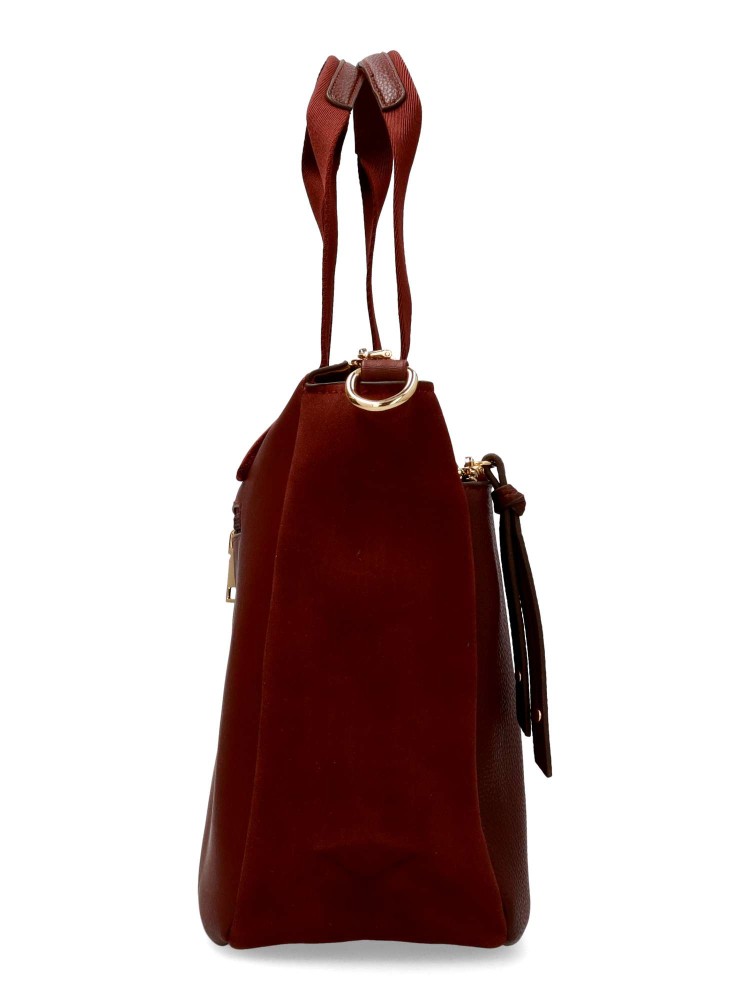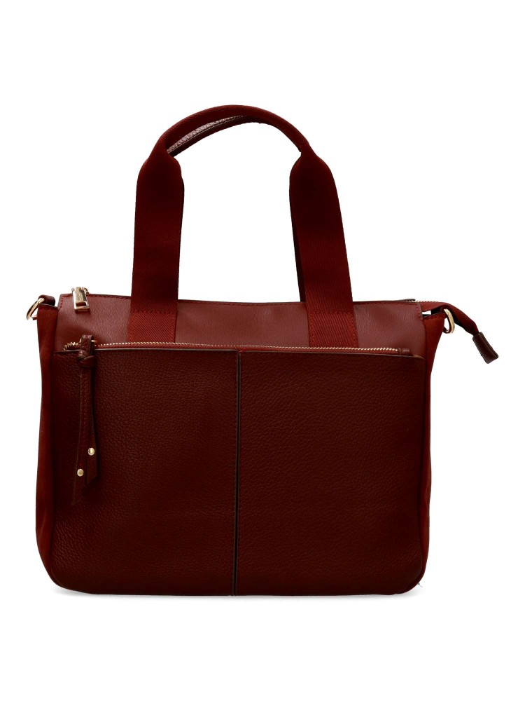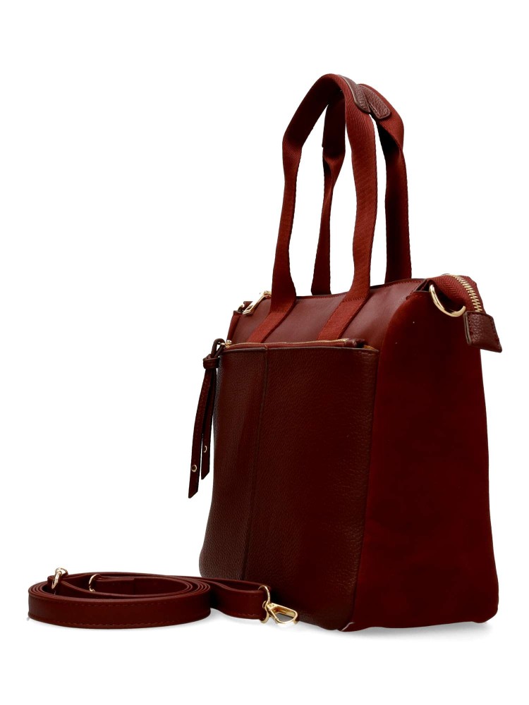 Bolso de mano para mujer, con cierre de cremallera. Asa bandolera. Color burdeos. Medidas aproximadas (alto x ancho x fondo): 24 x 30 x 11 cm.