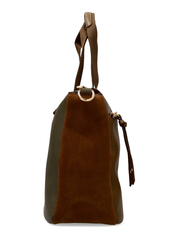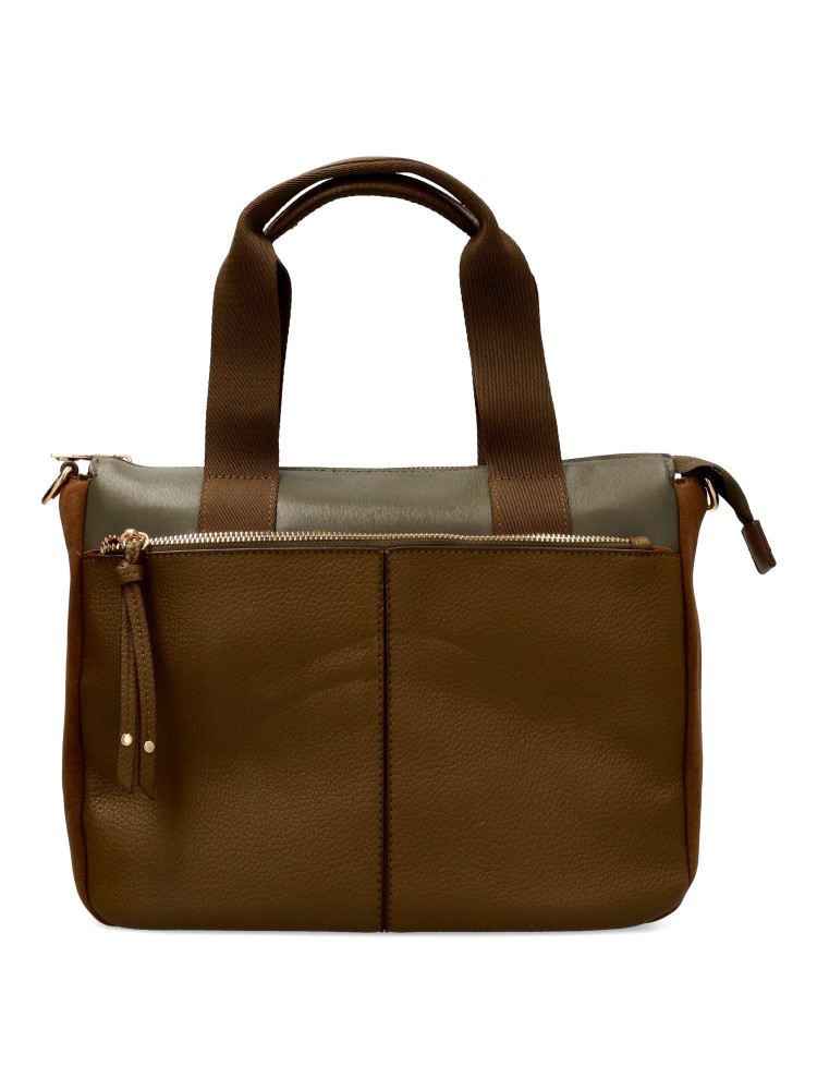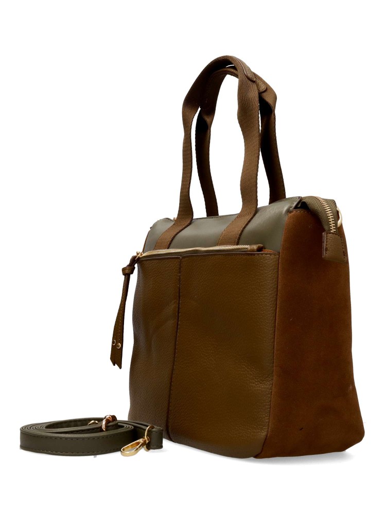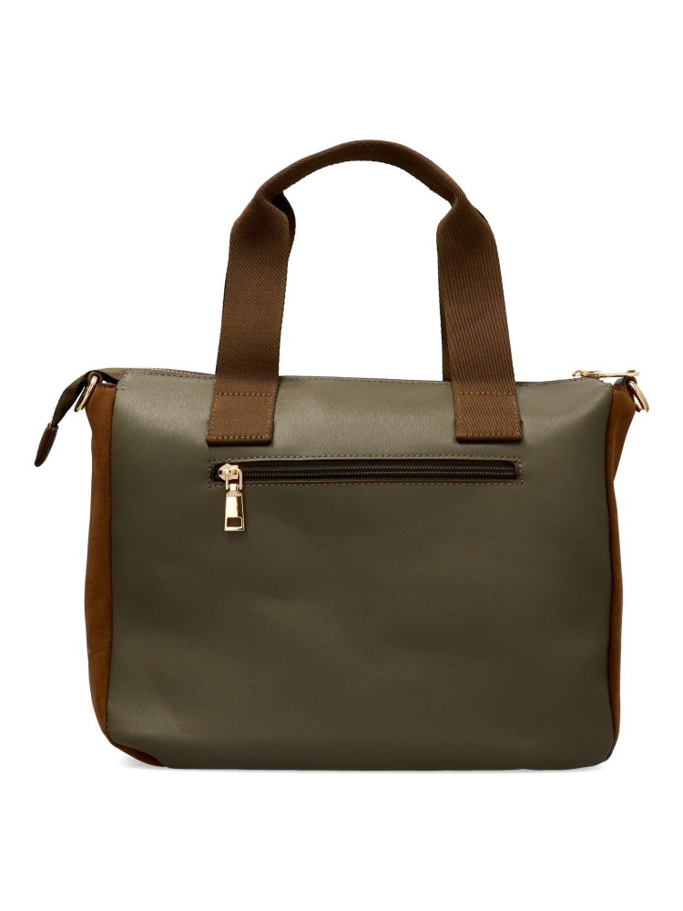 Bolso de mano para mujer, con cierre de cremallera. Asa bandolera. Color verde. Medidas aproximadas (alto x ancho x fondo): 24 x 30 x 11 cm.