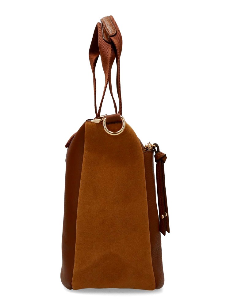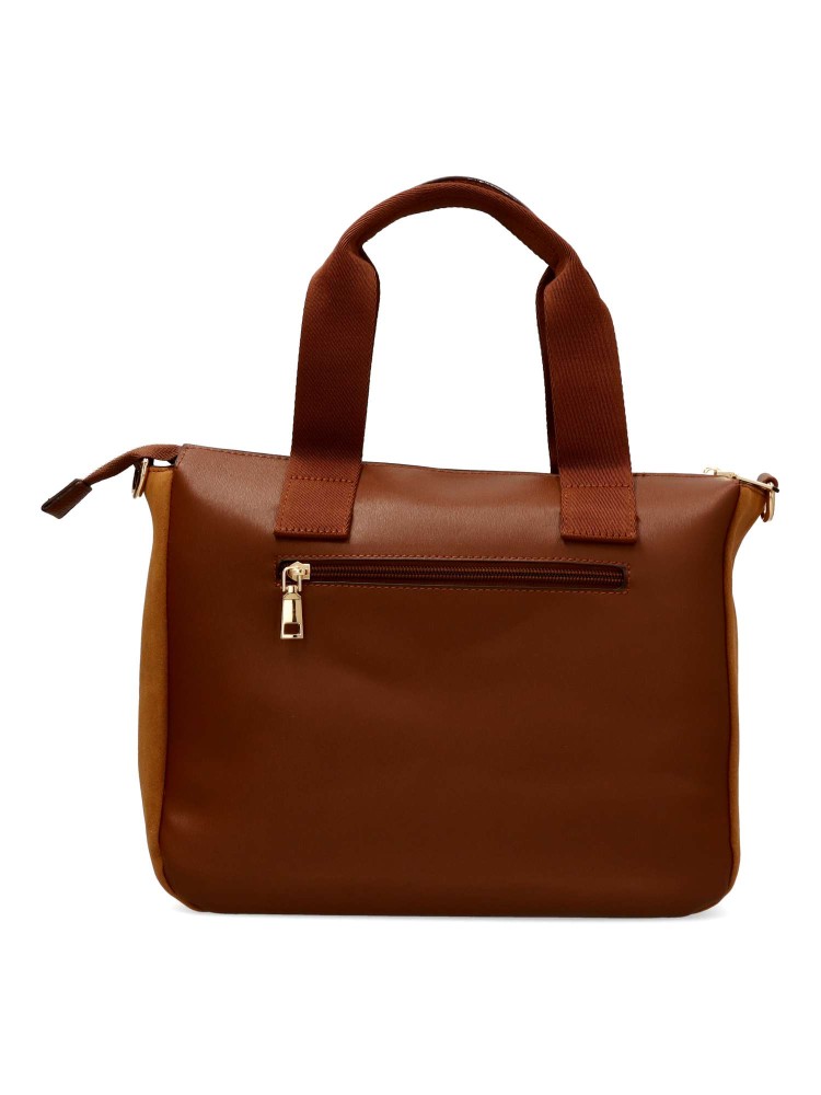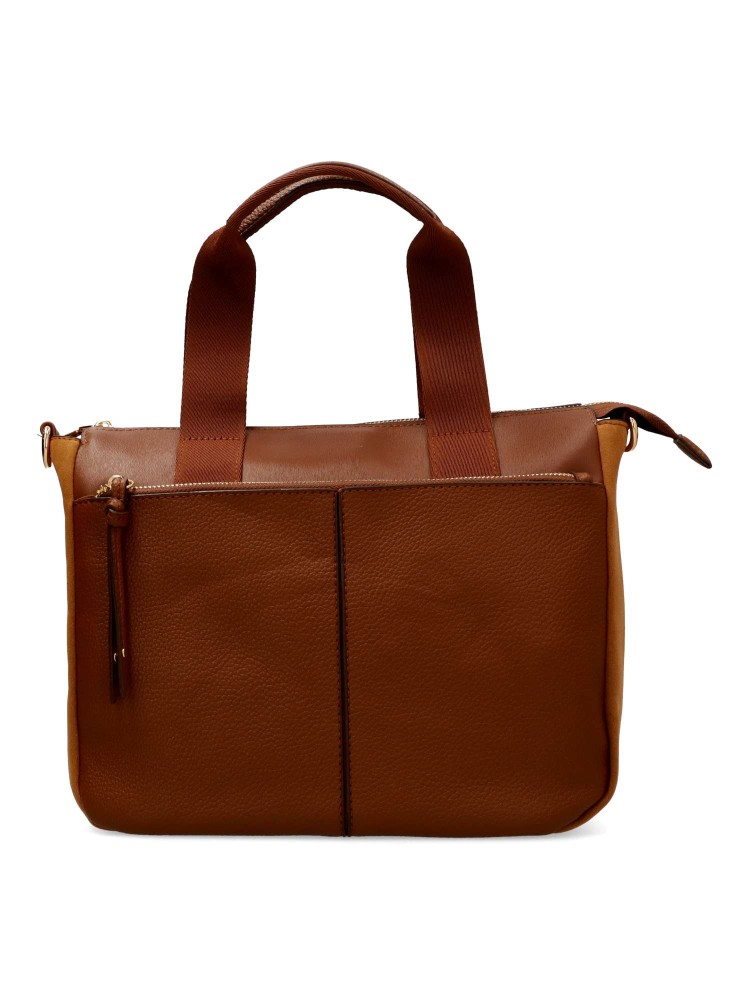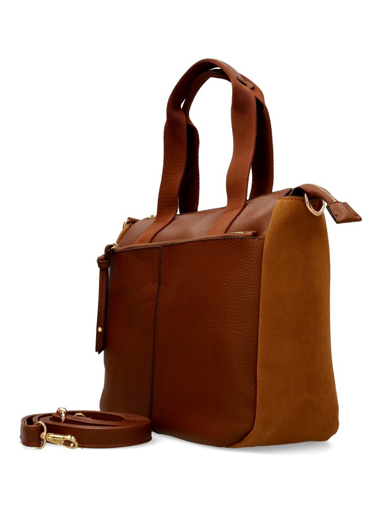Bolso de mano para mujer, con cierre de cremallera. Asa bandolera. Color cafe. Medidas aproximadas (alto x ancho x fondo): 24 x 30 x 11 cm.