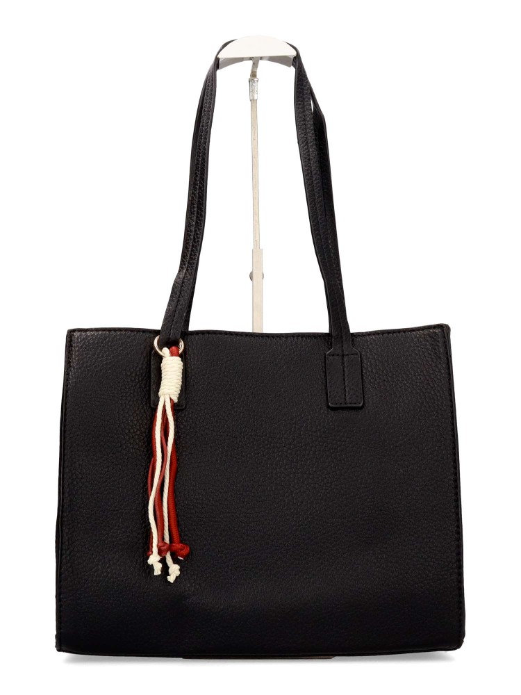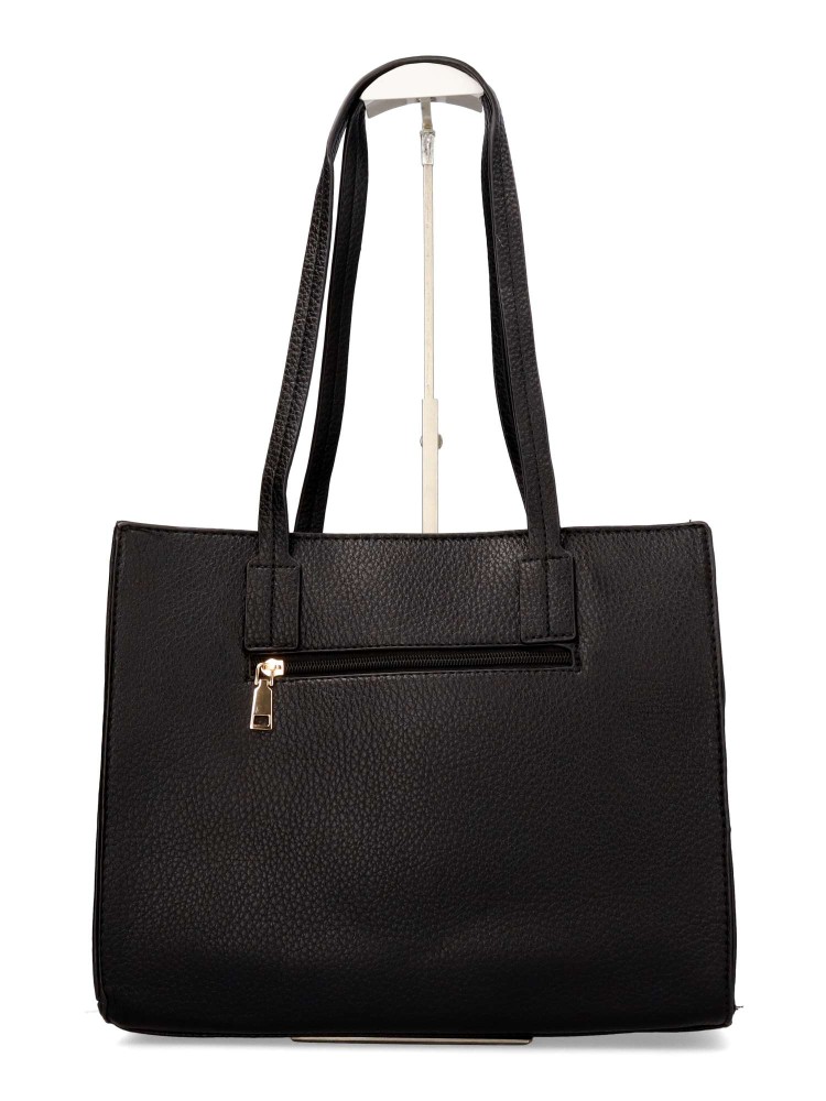 Bolso de hombro de mujer, con cierre de cremallera. Color negro. Medidas aproximadas (alto x ancho x fondo): 27 x 33 x 9 cm.