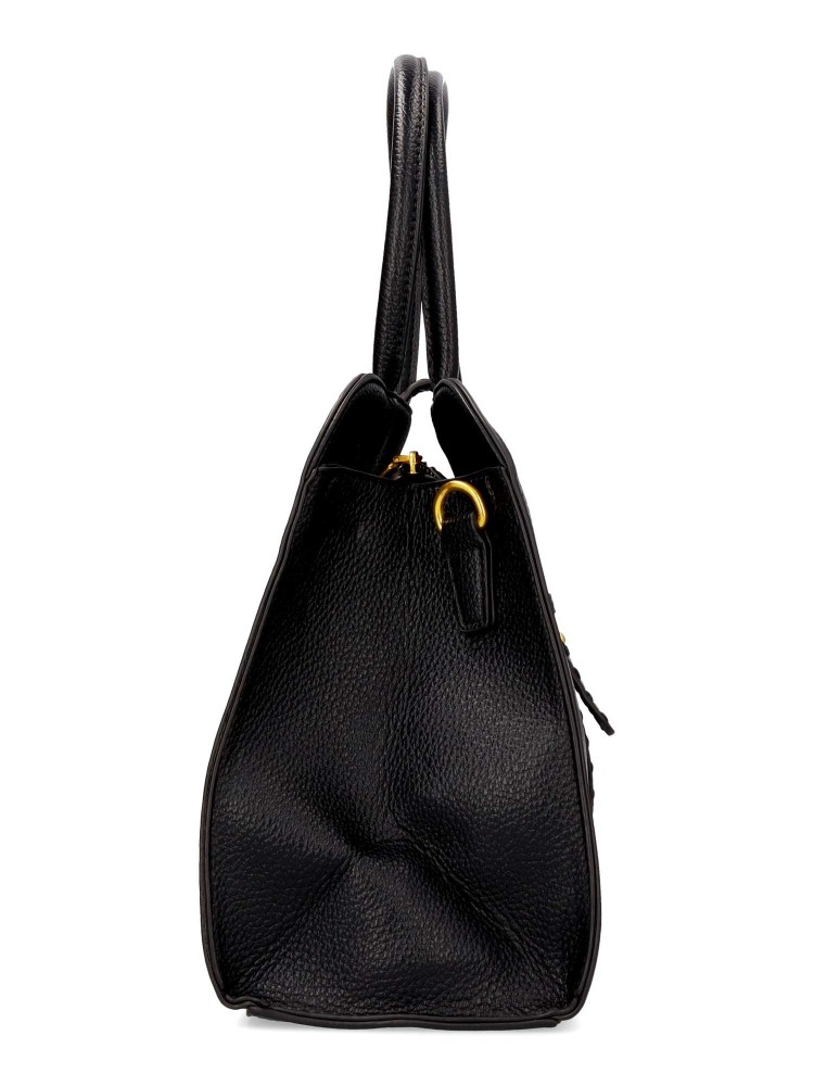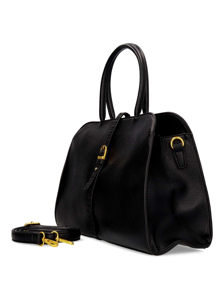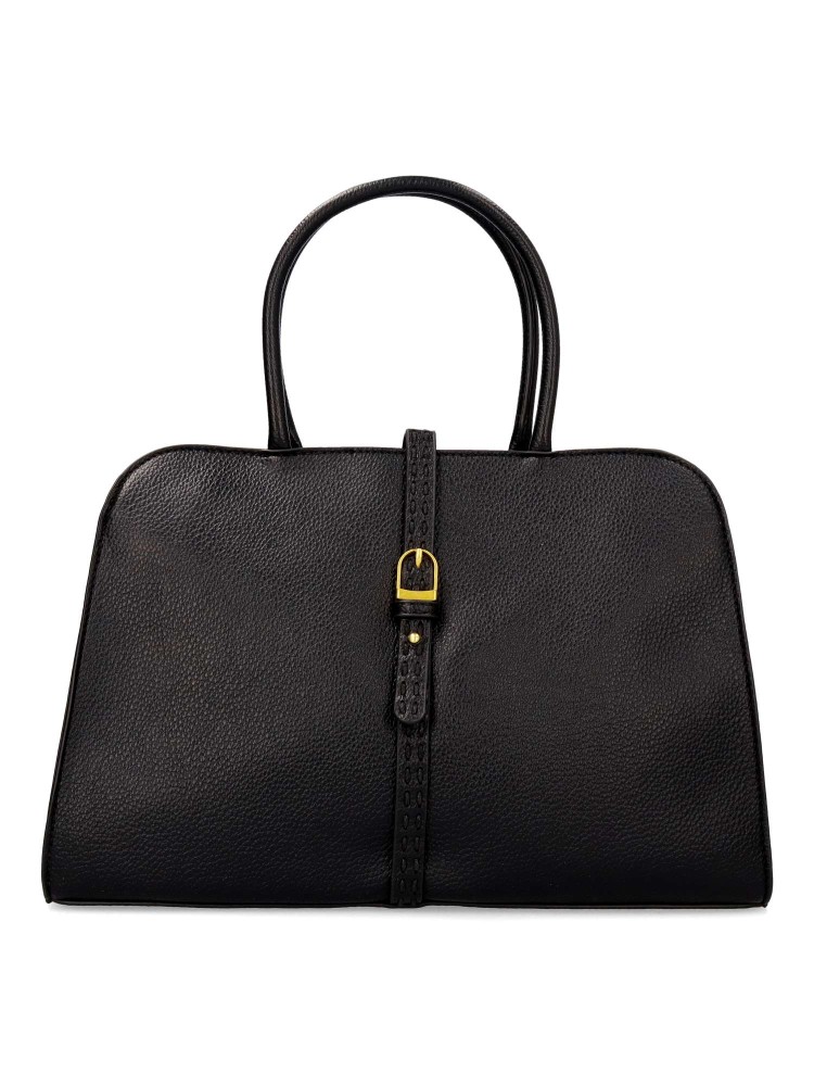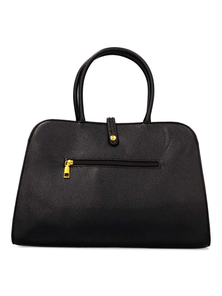 Bolso de mano de mujer con cierre de cremallera. Asa bandolera regulable. Color negro. Medidas aproximadas (alto x ancho x fondo): 24 x 35 x 12 cm.