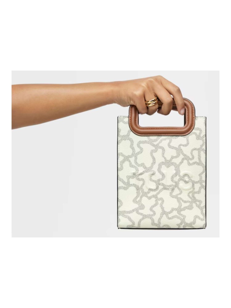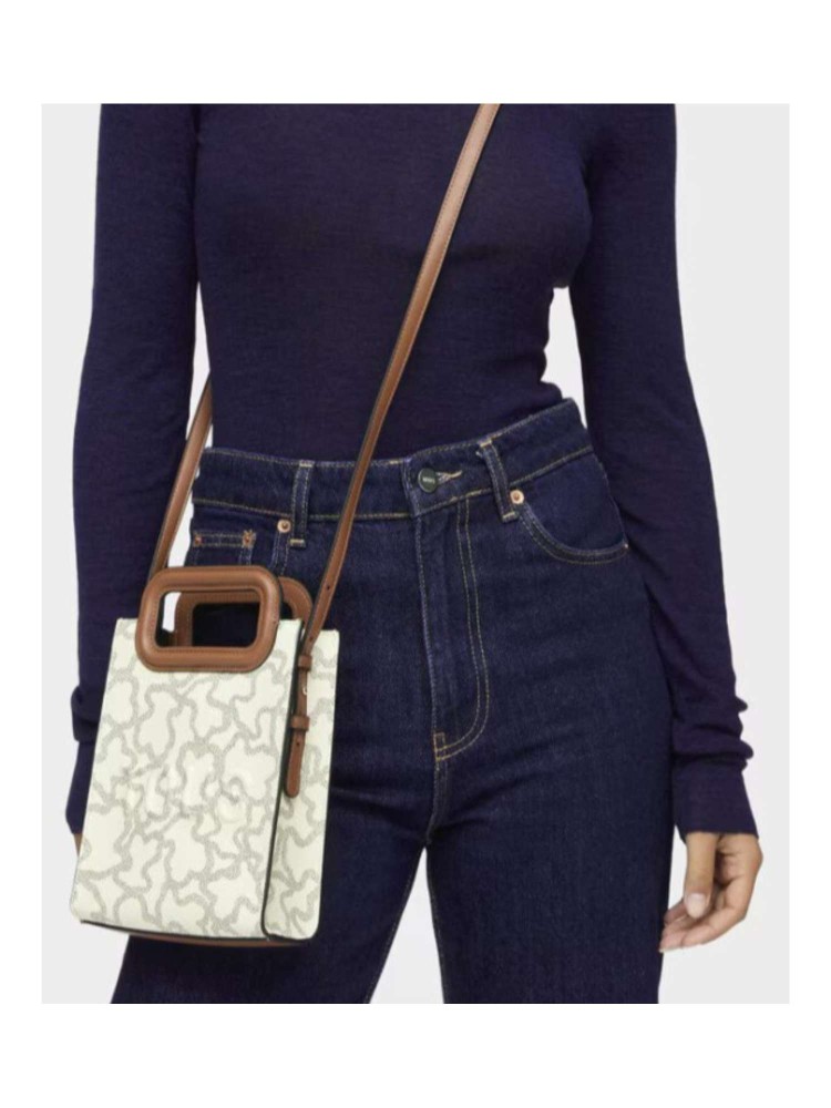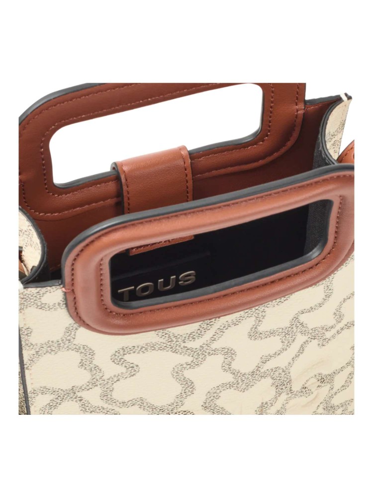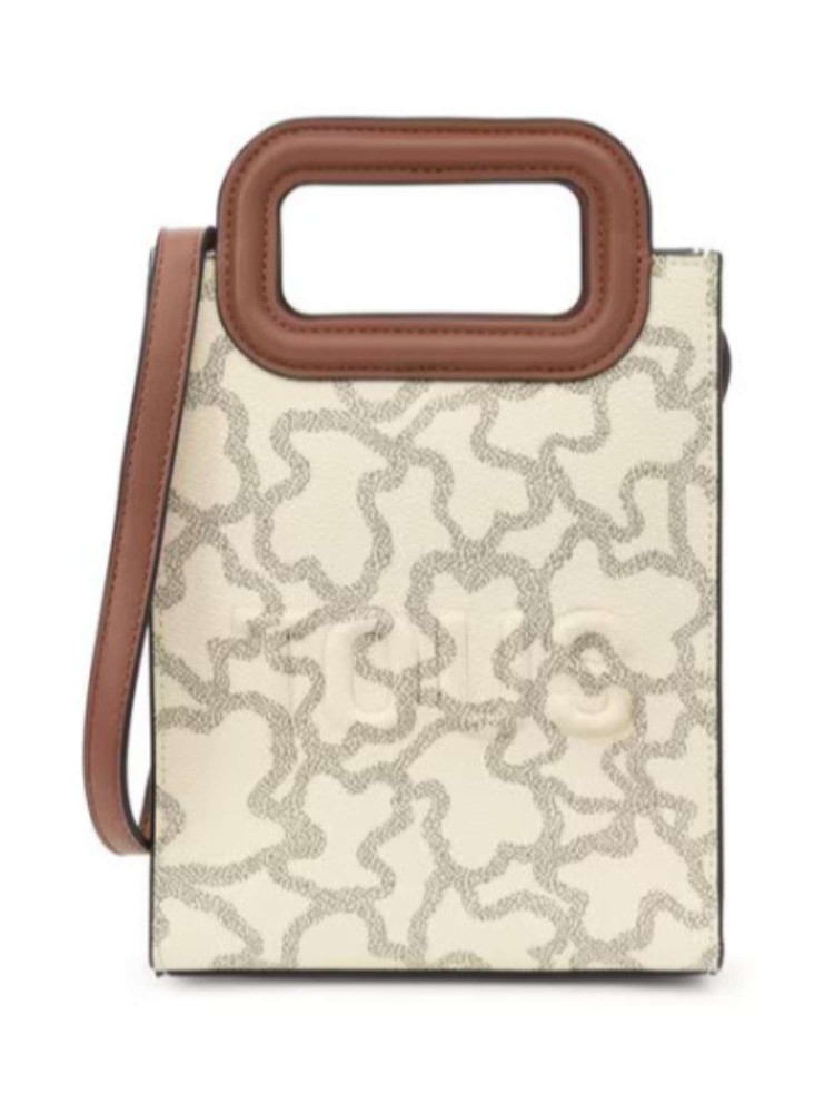Mini bolso TOUS Kaos Icon de lona con estampado Kaos en color beige con detalles en poliuretano. Cierre con botón magnético. Asa bandolera ajustable y extraíble y asas fijas de mano. Medidas (alto x ancho x fondo): 20 x 16 x 7 cm.