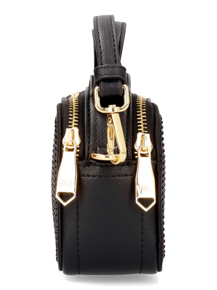 Bolso bandolera con asa ajustable. Interior: Forrado, con varios bolsillos, uno con cremallera. Medidas: Largo 19 x Ancho 7 x Alto 11 cm. (medidas aproximadas).