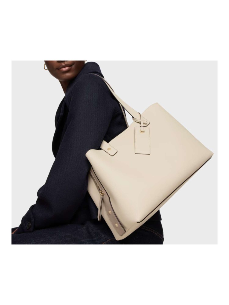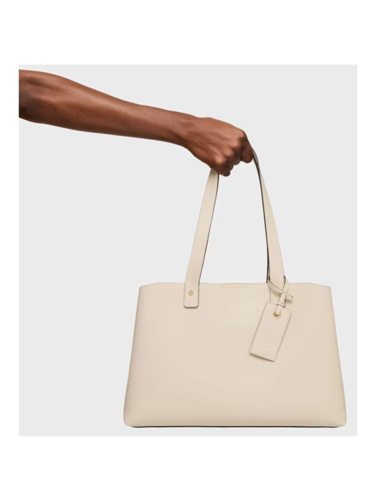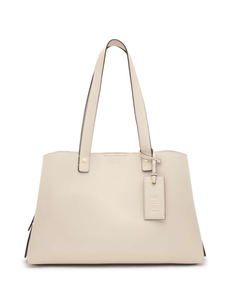 Bolso city mediano TOUS The Citybow de poliuretano en color beige. Cierre con botón magnético. Bolsillo interior con cremallera. Asa fija de hombro. Medidas (alto x ancho x fondo): 19 x 39 x 24 cm.