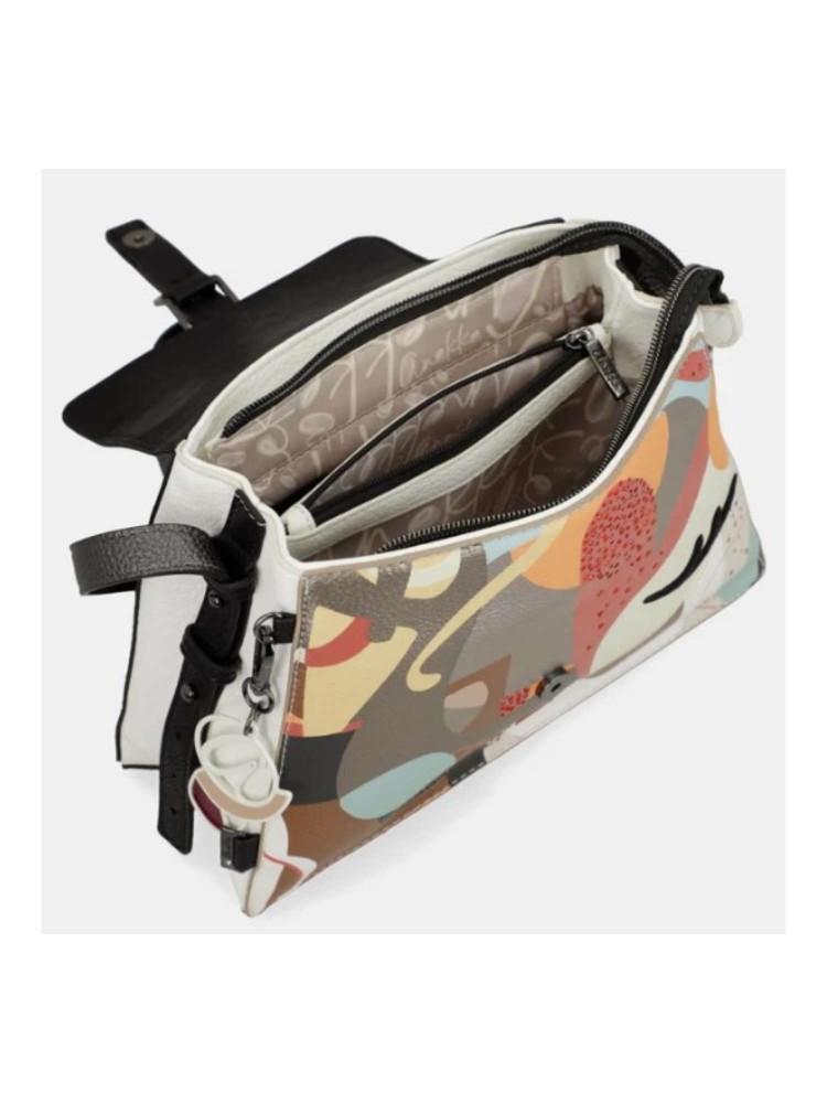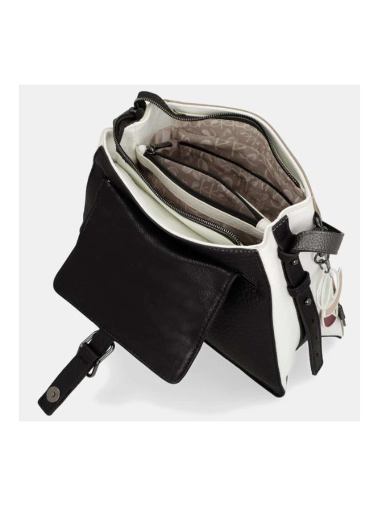 Bolso bandolera con solapa y cierre de cremallera. Bolsillo trasero y bolsillo interior con cremallera para el movil. Asa bandolera. Medidas (Largo x Alto x Ancho): 27 cm / 18 cm / 8 cm.