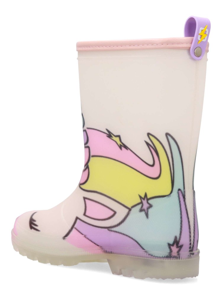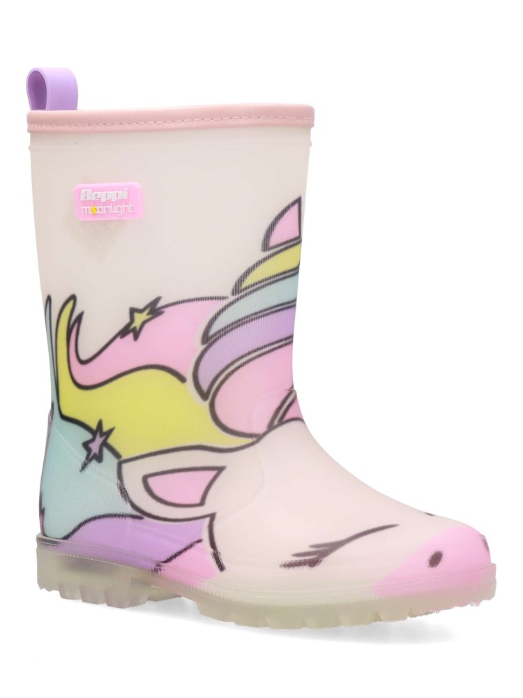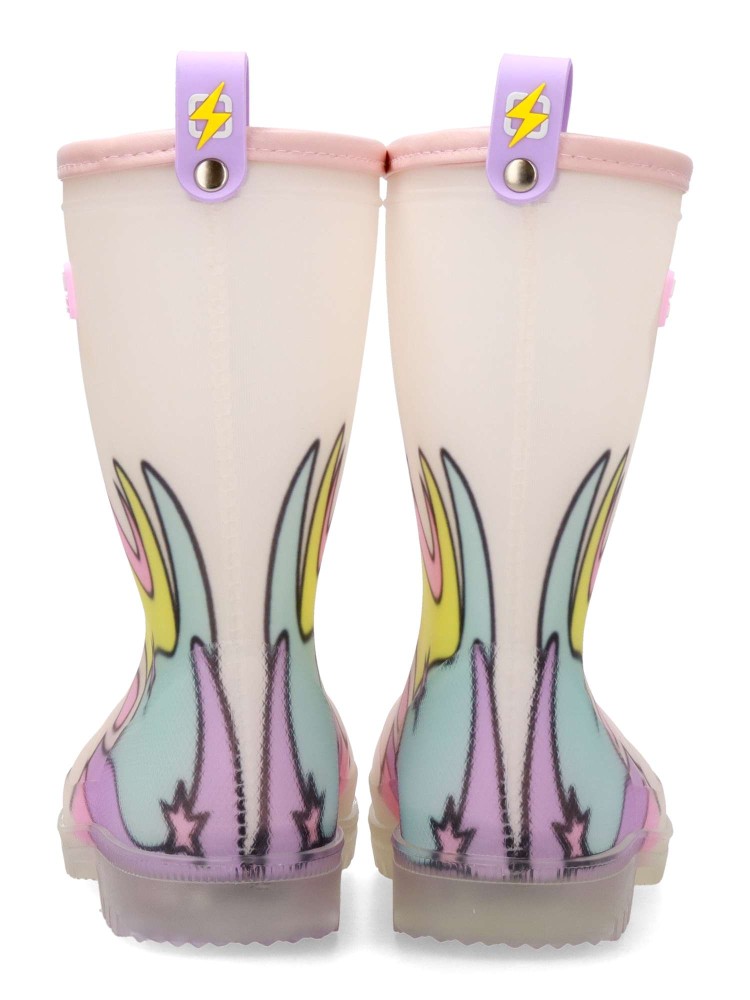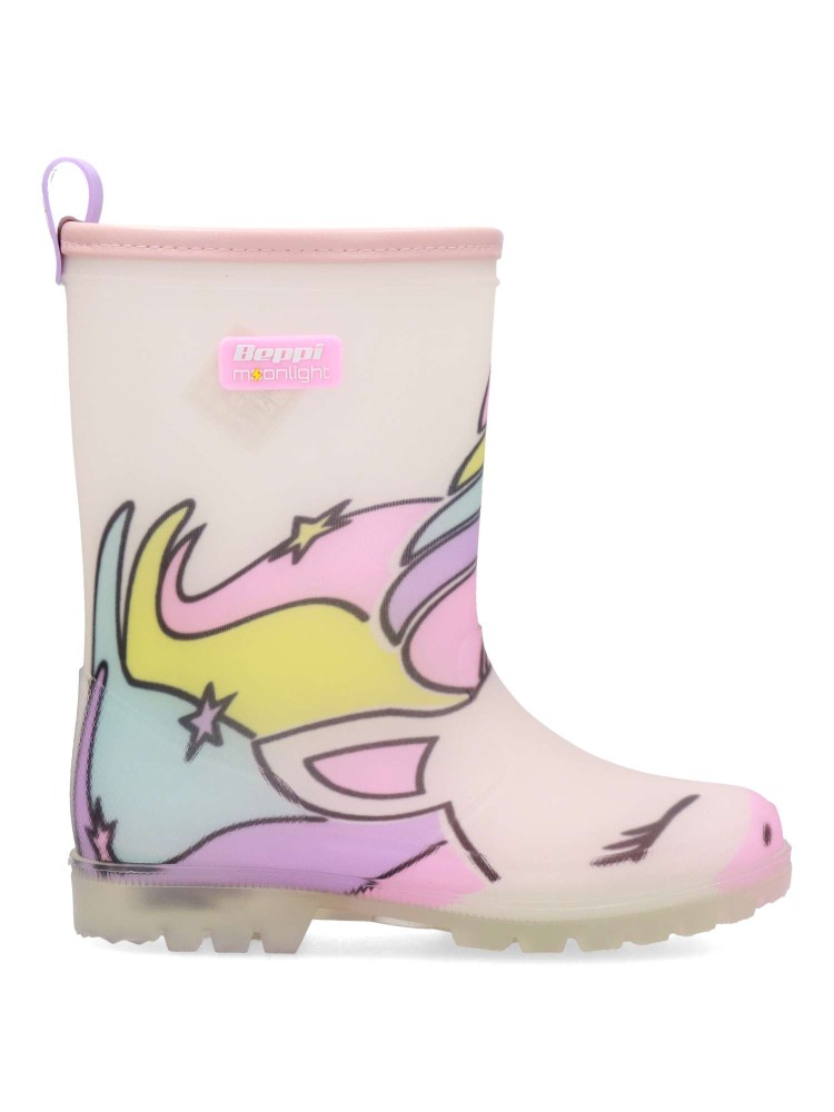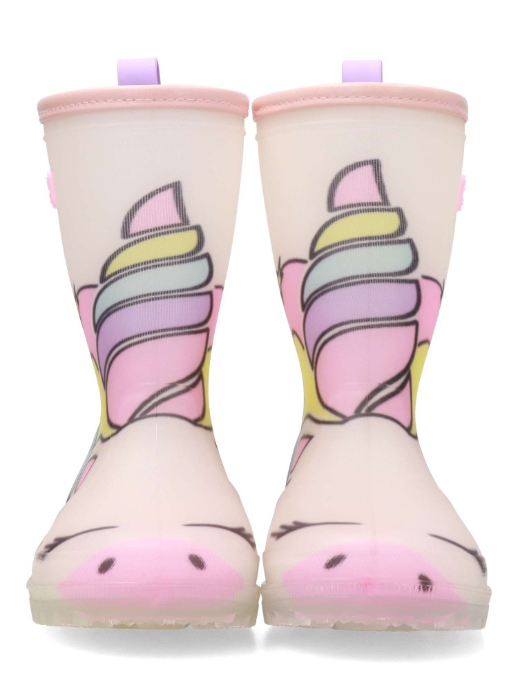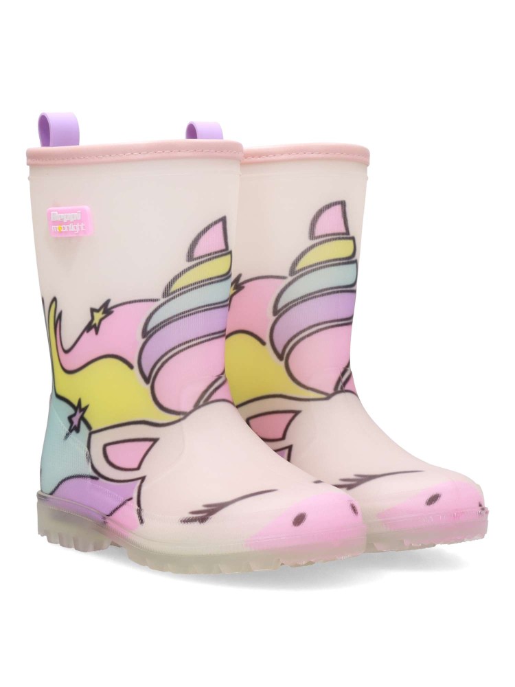 Botas de agua juveniles, de goma, con estampado «unicornio». Color rosa. Suela con luz LED para caminar de forma divertida. Diversión para niñas, ideal para días lluviosos y terrenos húmedos.