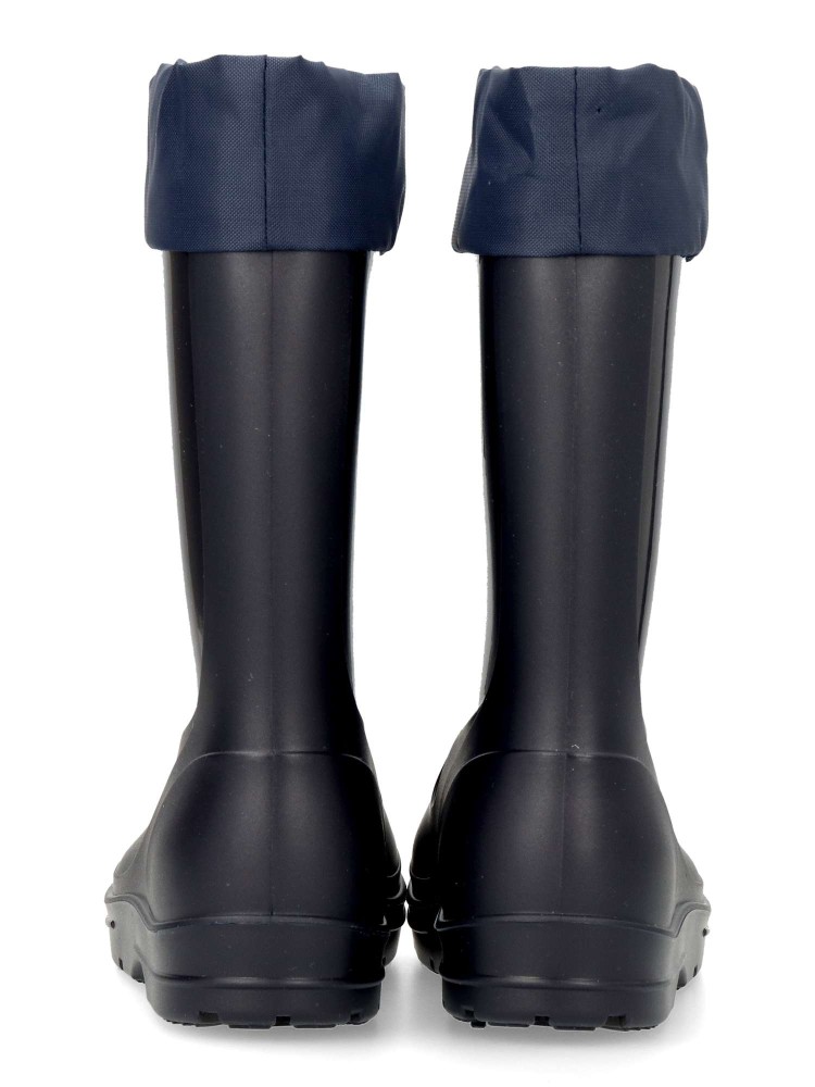 Bota de agua con forro interior textil y collarín ajustable. Fabricada en goma flexible que impide que se mojen los pies. Ideal para utilizarla en días de lluvia y para terrenos humedos y mojados. Altura caña 20 cm. y diametro de 28 cm. aproximadamente.