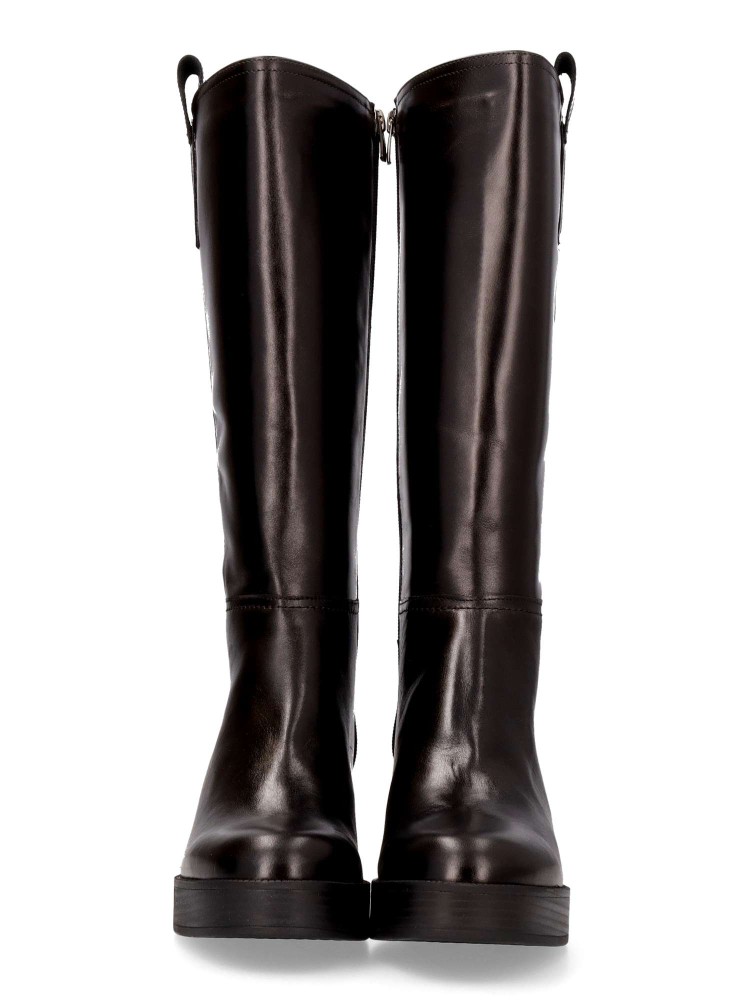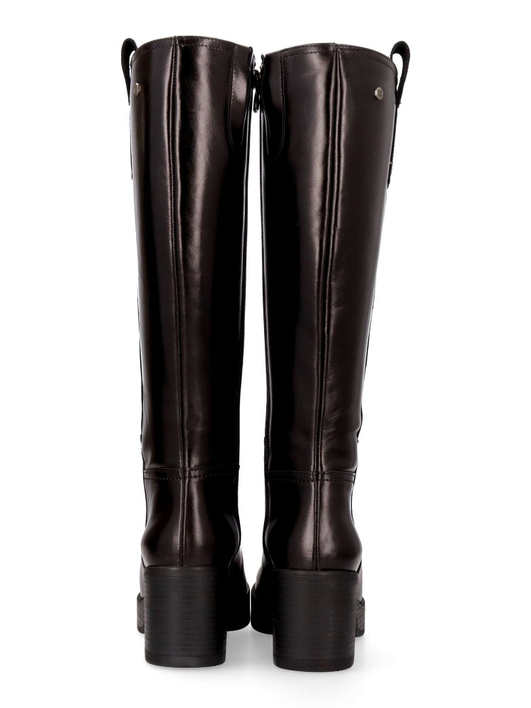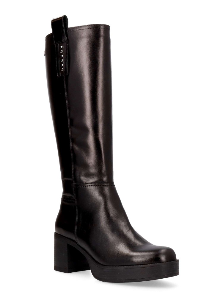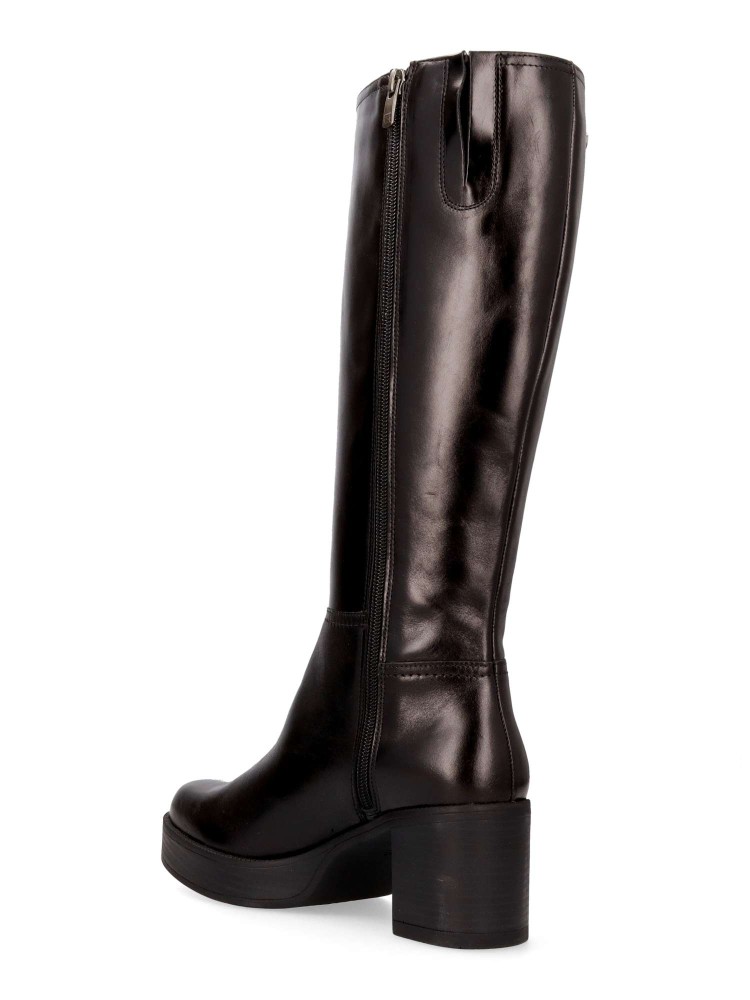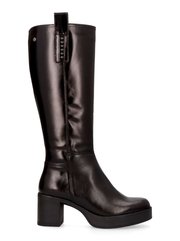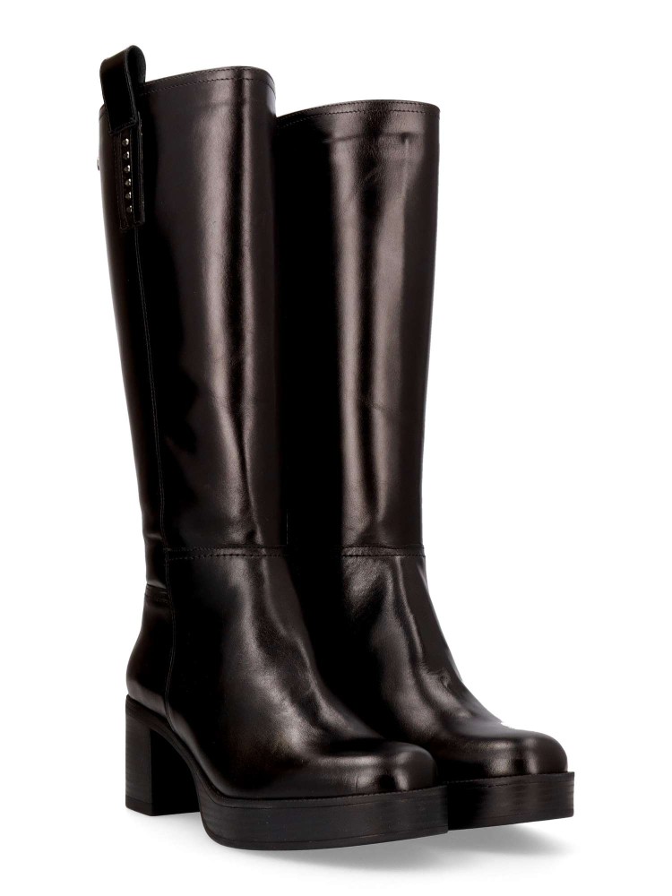 Bota alta de mujer, con cierre de cremallera. Fabricada en piel de primera calidad. Su tacón alto y estable estiliza la figura, mientras su plataforma aporta equilibrio. Eleva tus looks con un diseño versátil que suma elegancia y carácter a tus outfits.