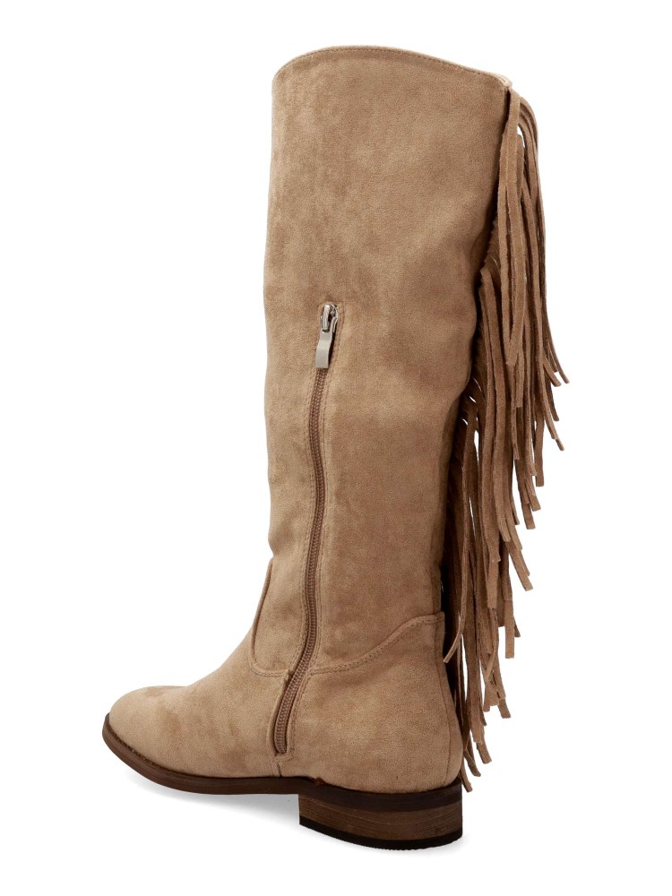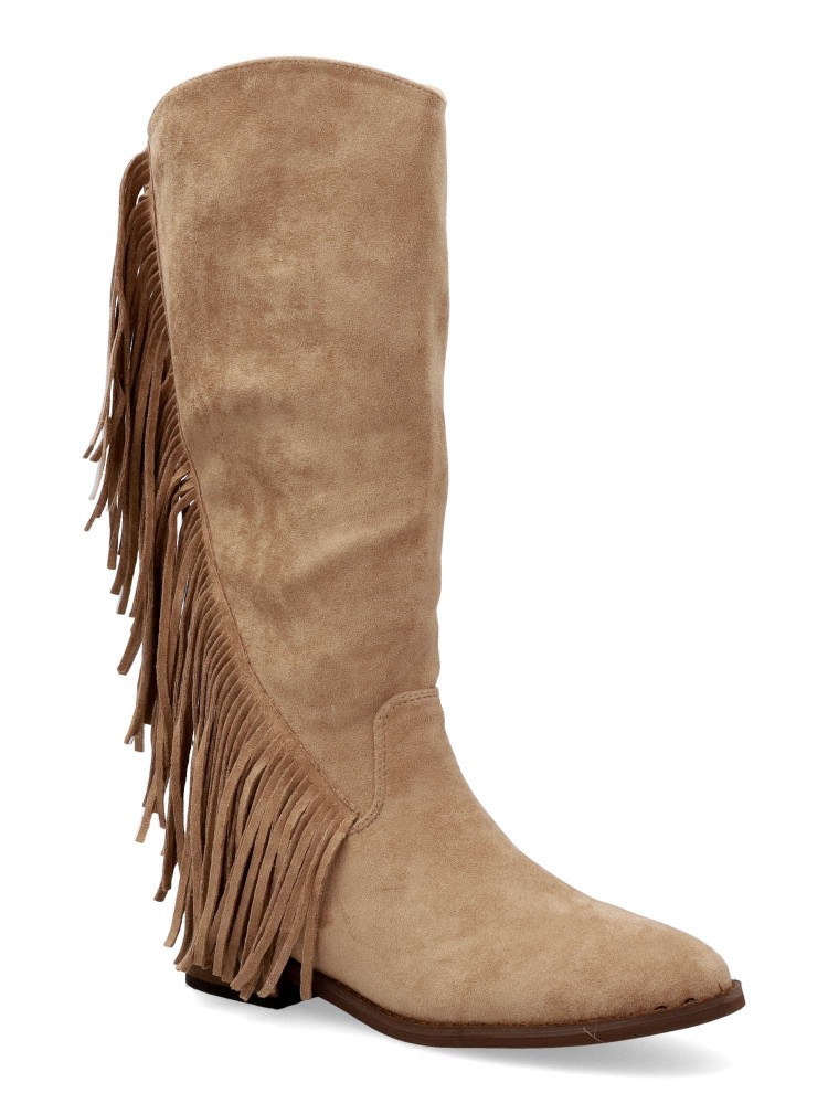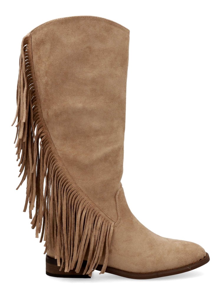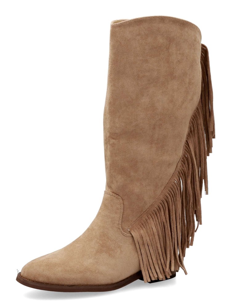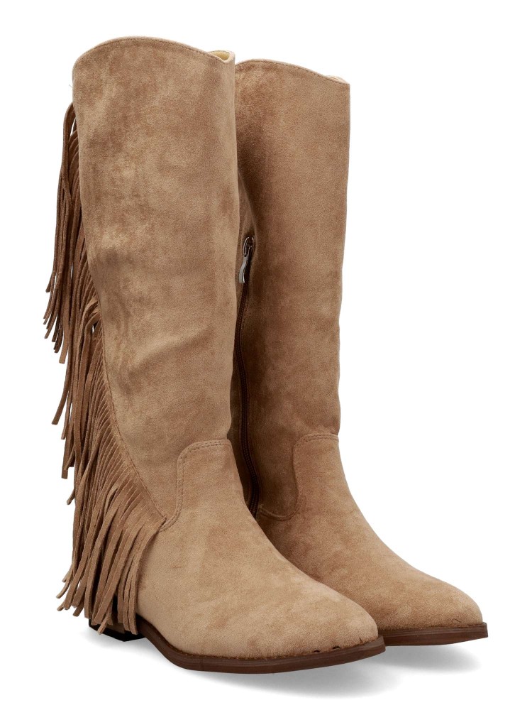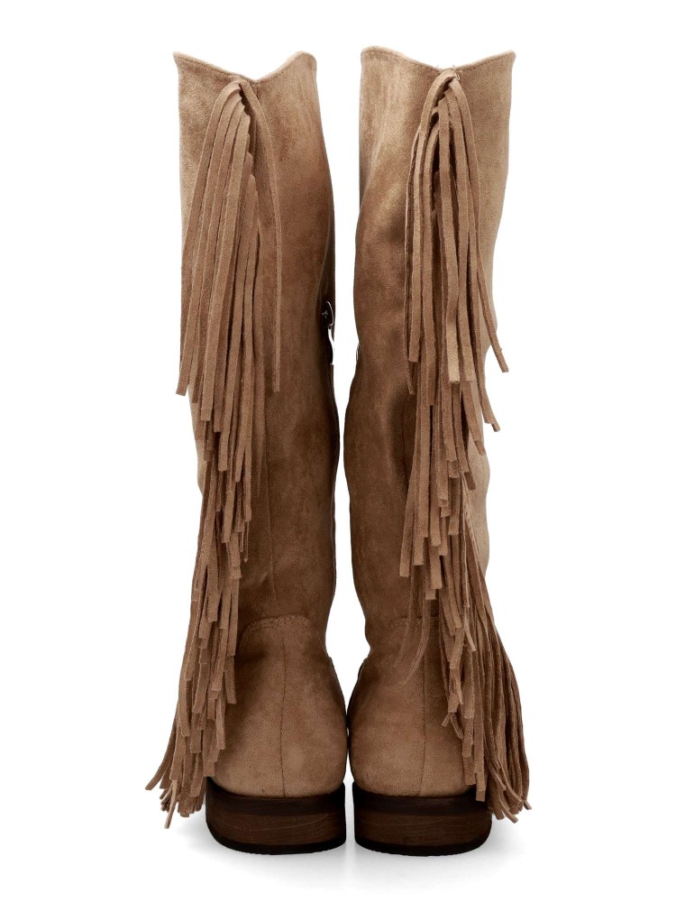 Bota de mujer con cierre de cremallera y fabricadas en antelina suave. Diseñadas con elegantes flecos, ofrecen un toque boho-chic a cualquier atuendo. Perfectas para el uso diario, combinan la durabilidad con un diseño atractivo que te hará destacar.