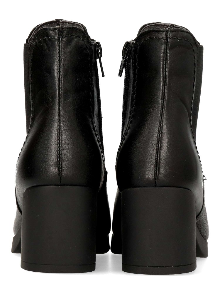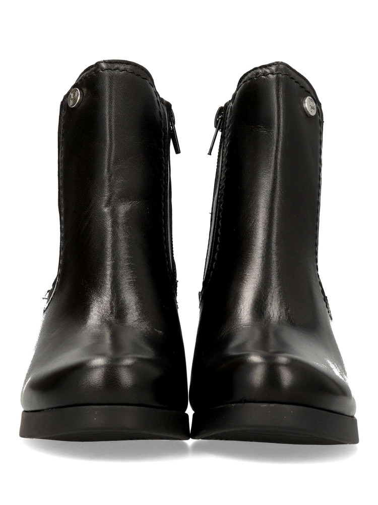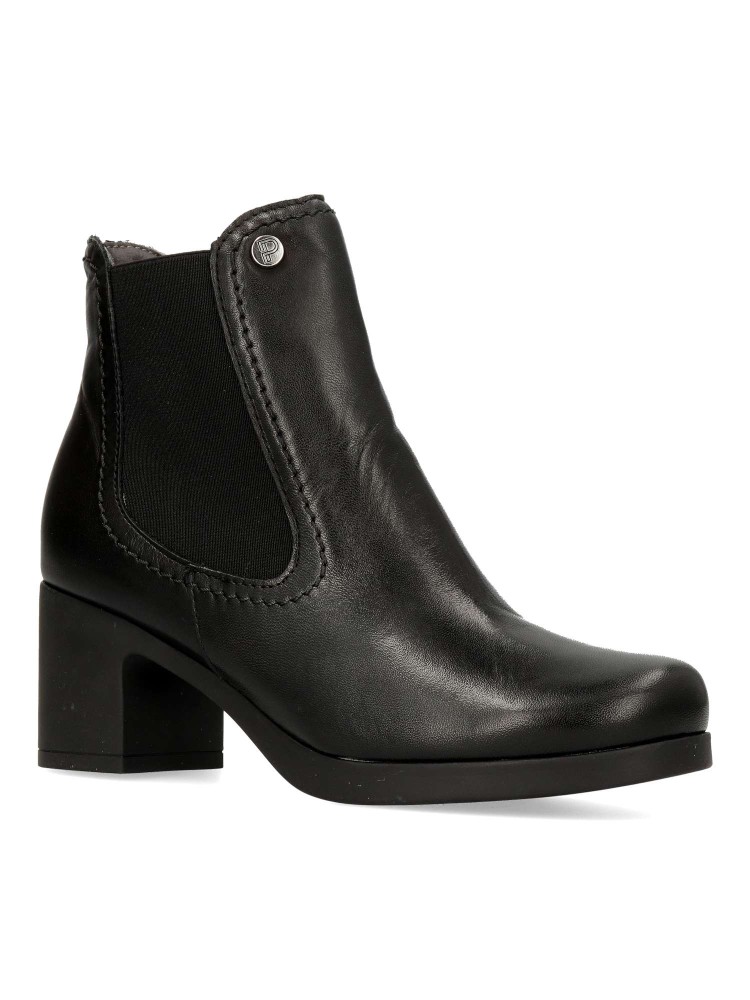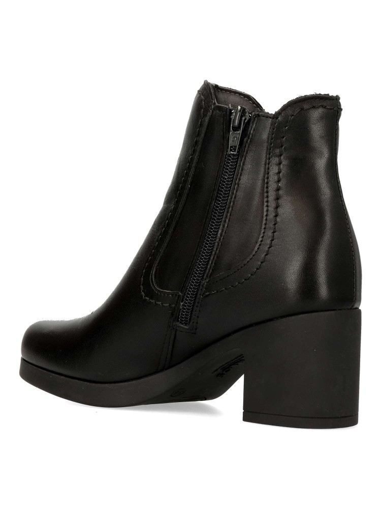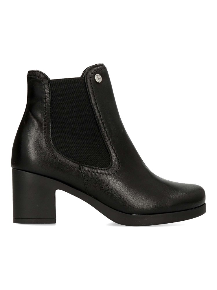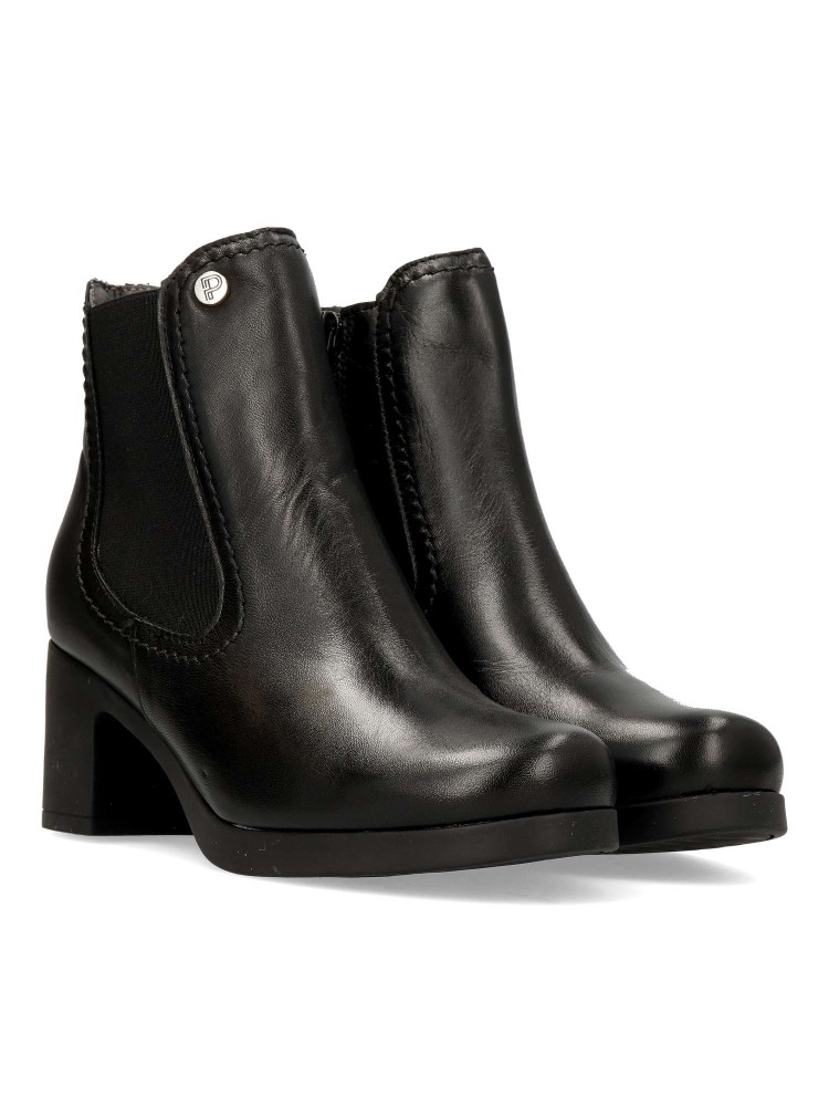 Botín cómodo de mujer, con cierre de cremallera y elástico en lateral. Fabricados en piel, con suela de goma. Altura tacón 6 cm. Plantilla acolchada. Color negro. Botínes tipo chelsea, versátil y cómodo para este invierno. Hecho en España