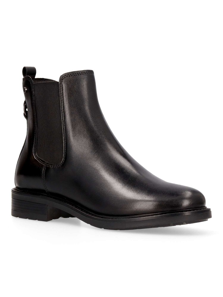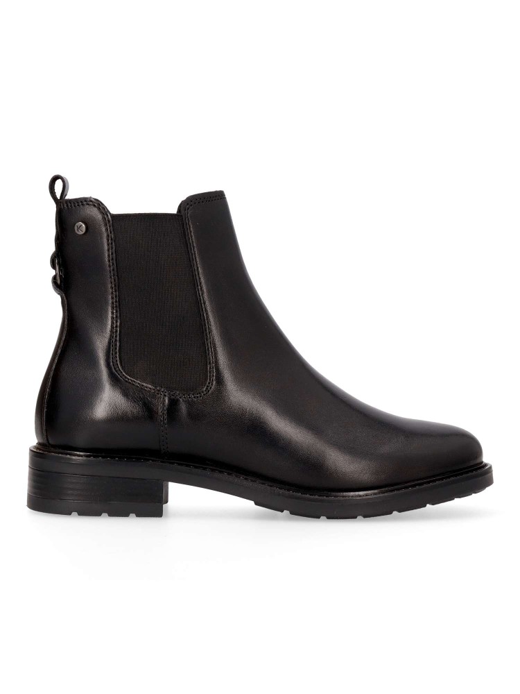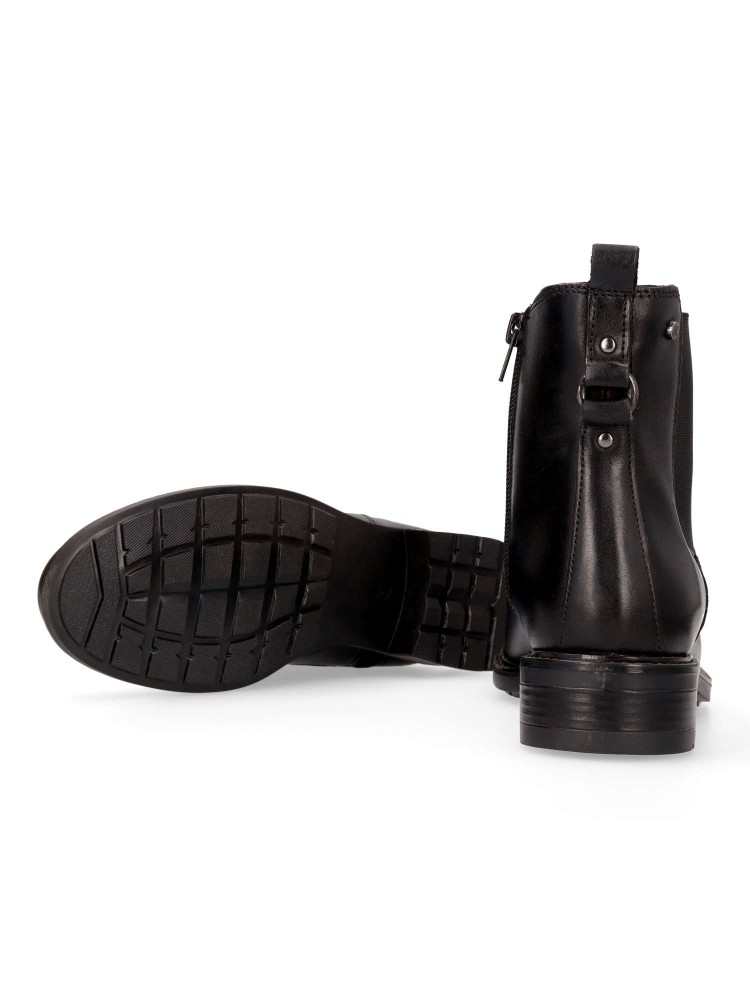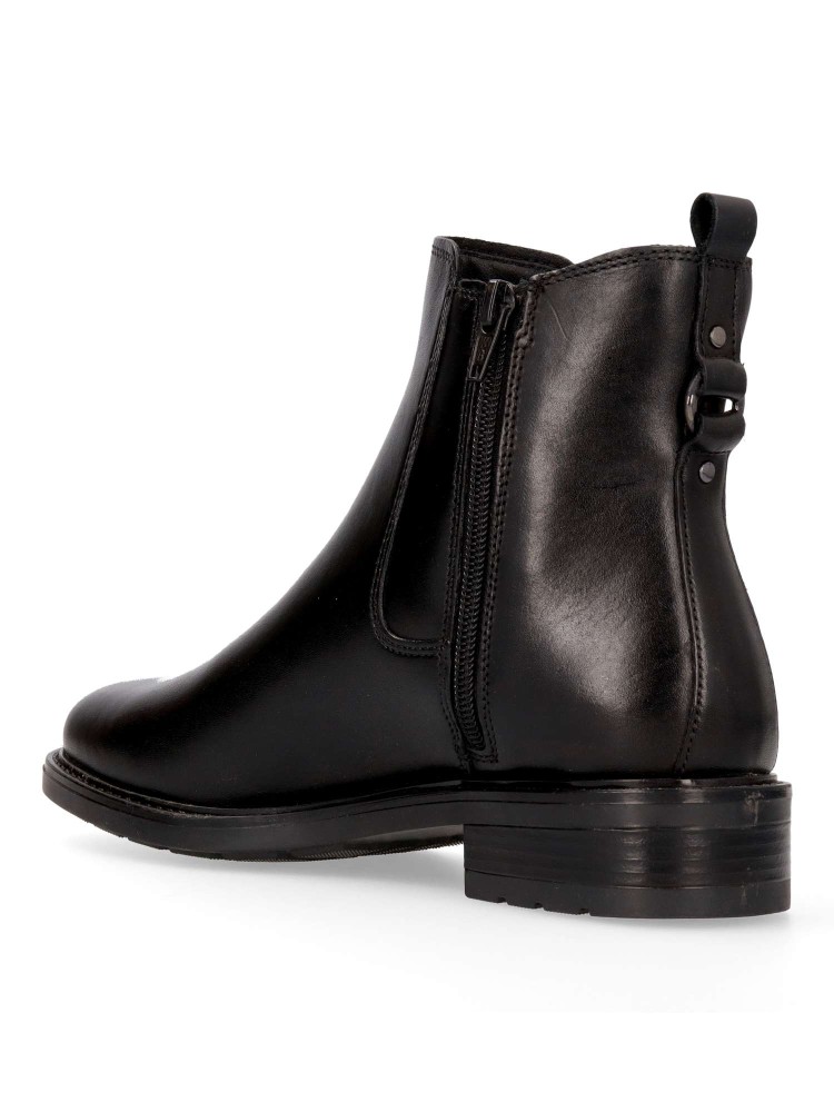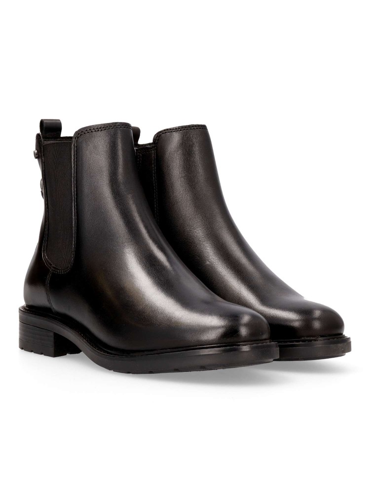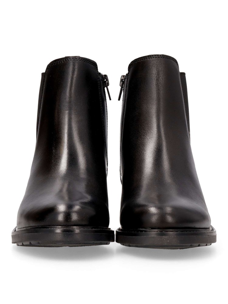 Botín de mujer tipo chesea, con cierre de cremallera y elástico lateral. Modelo cómodo, fabricado en piel. Tacón bajo de 3 cm y caña de 13,5 cm. Un botín clásico, versátil, cómodo y elegante, muy fácil de combinar con tus outfits de diario.