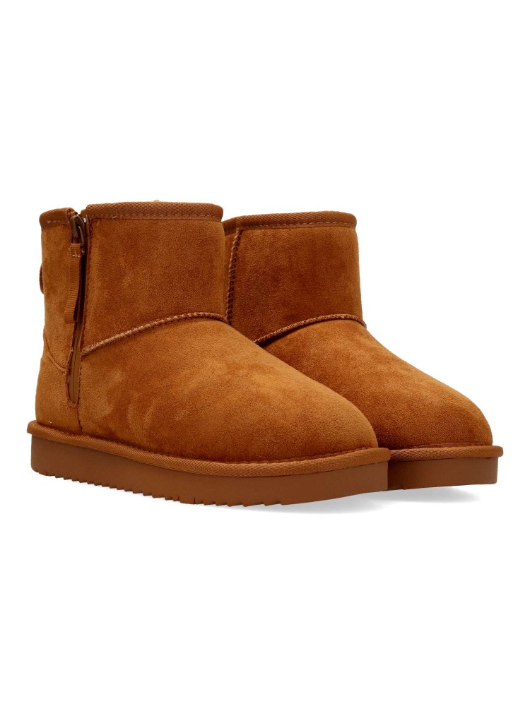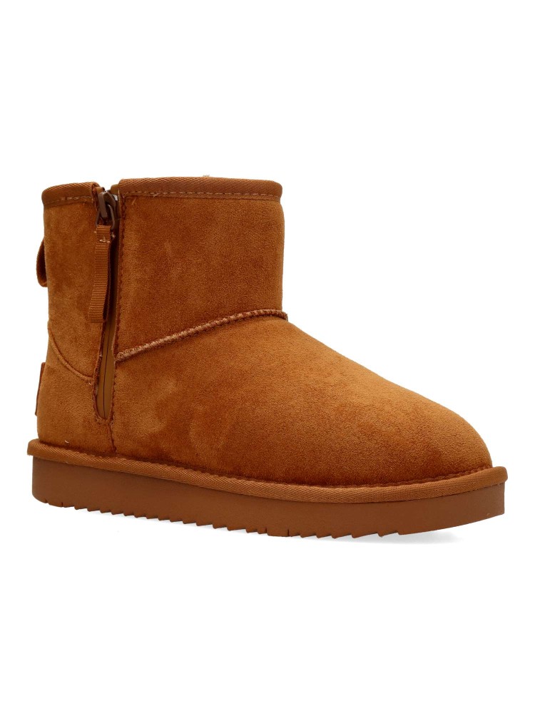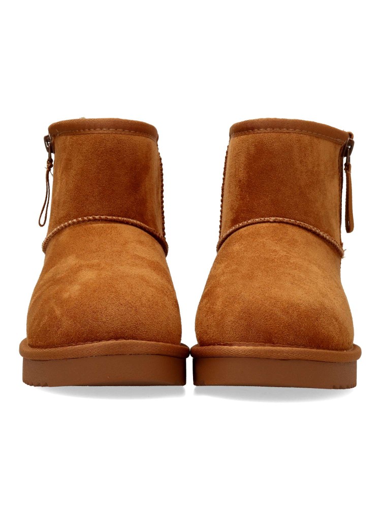Botines de mujer tipo australiana. Fabricados en antelina, con suela de goma antideslizante. Forro interio de pelo sintético. Tirador trasero para facilitar la puesta. Un modelo en tendencia ideal tanto para la calle como para casa. Certificado vegano.