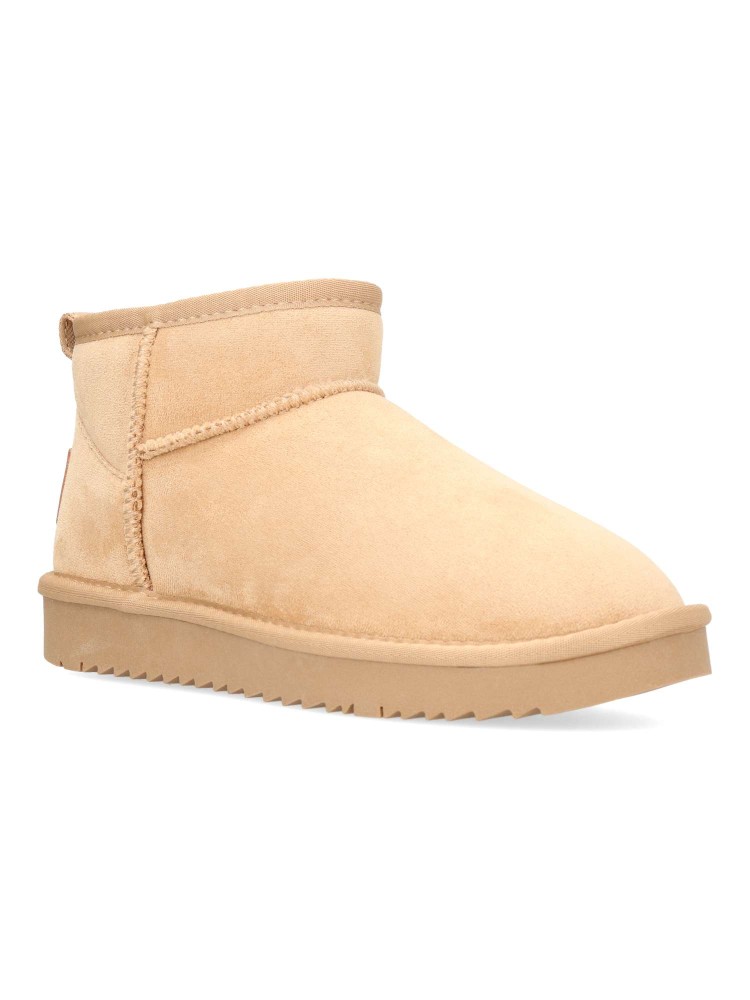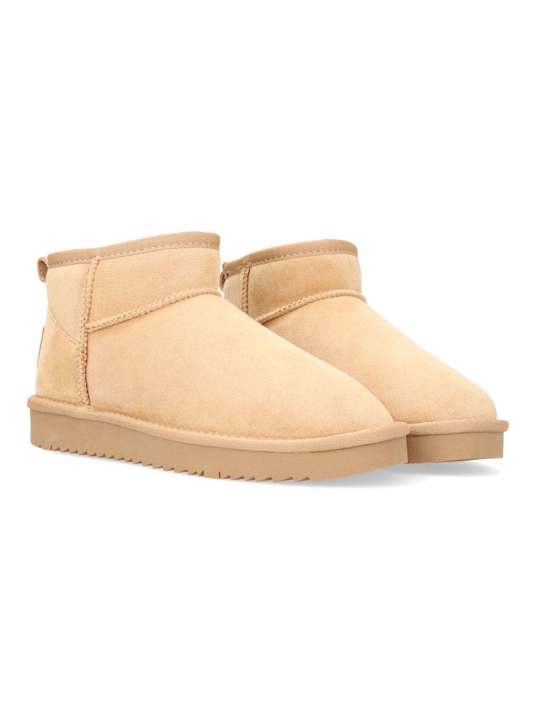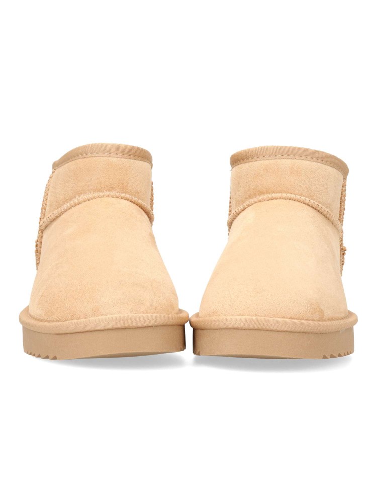 Botines de mujer tipo australiana. Fabricados en antelina, con suela de goma antideslizante. Forro interio de pelo sintético. Tirador trasero para facilitar la puesta. Un modelo en tendencia ideal tanto para la calle como para casa. Certificado vegano.