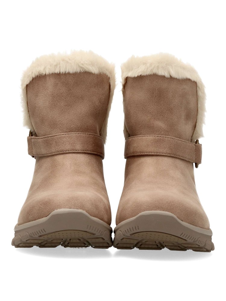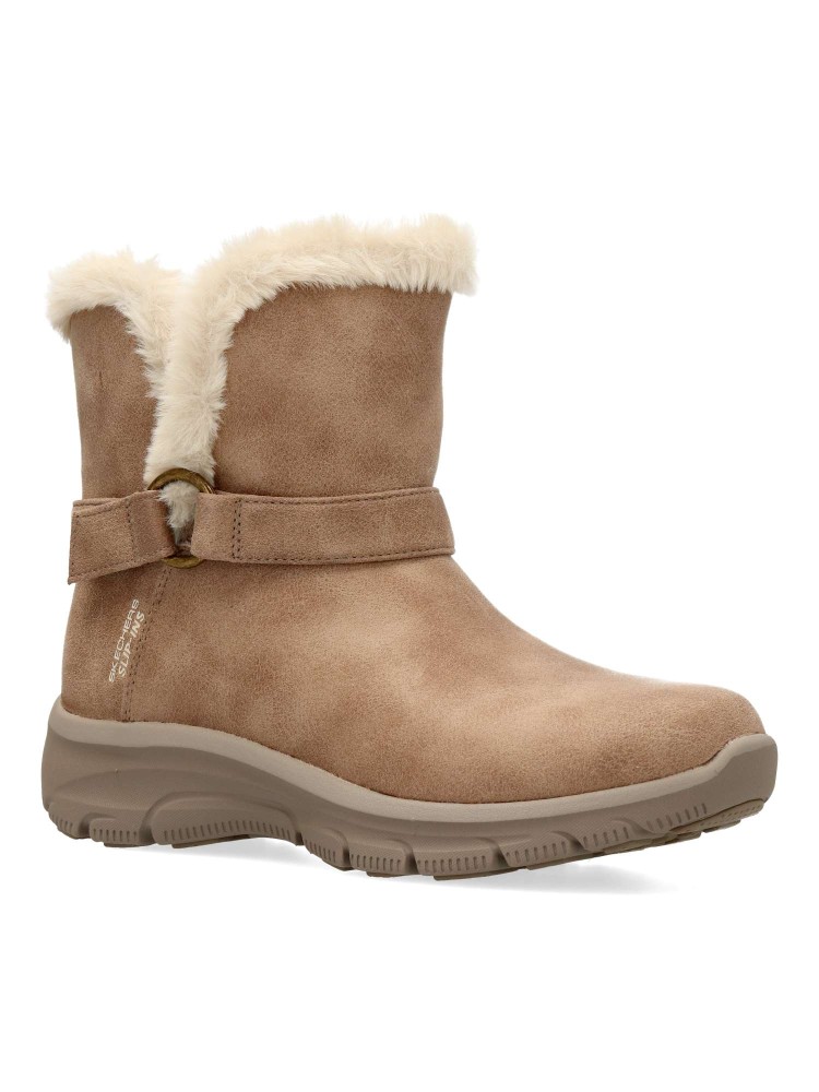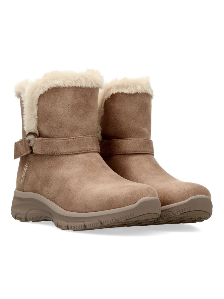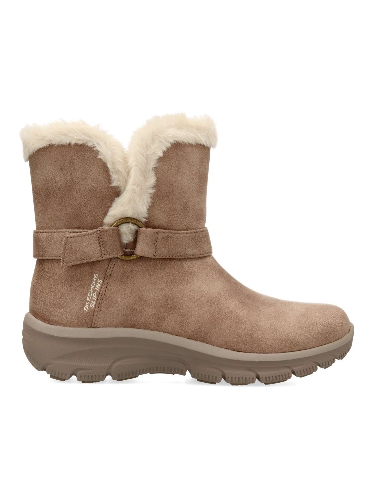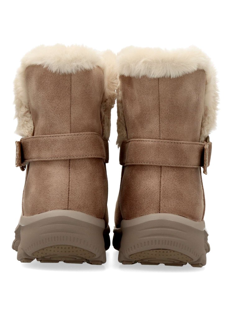 Bota diseñada con nuestro sistema exclusivo Heel Pillow™, cuenta con una parte superior de piel vegana tratada con 3M® Scotchgard®, con forro y ribete de piel sintética y una plantilla Skechers Air-Cooled Memory Foam® con amortiguación.