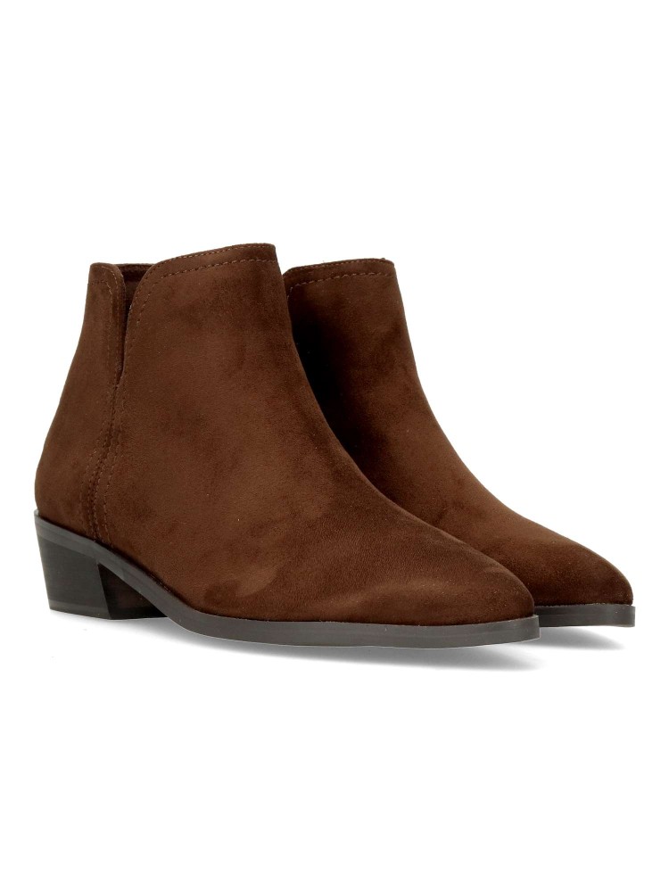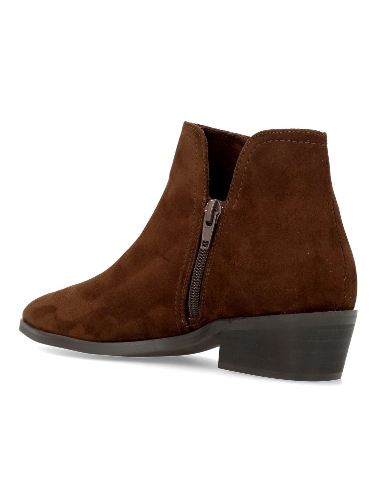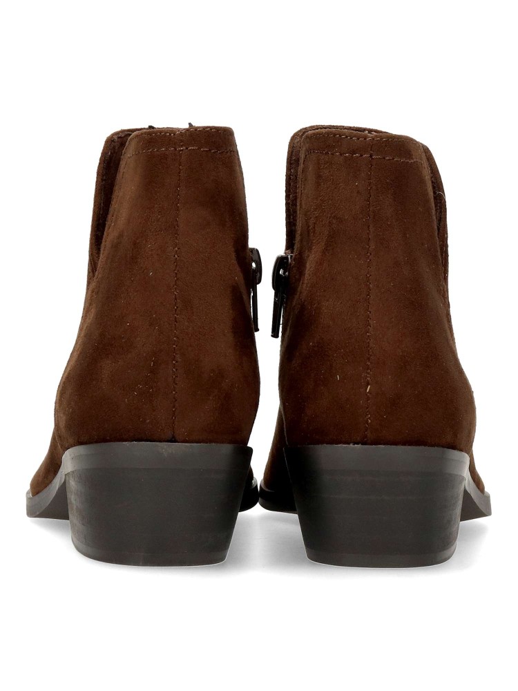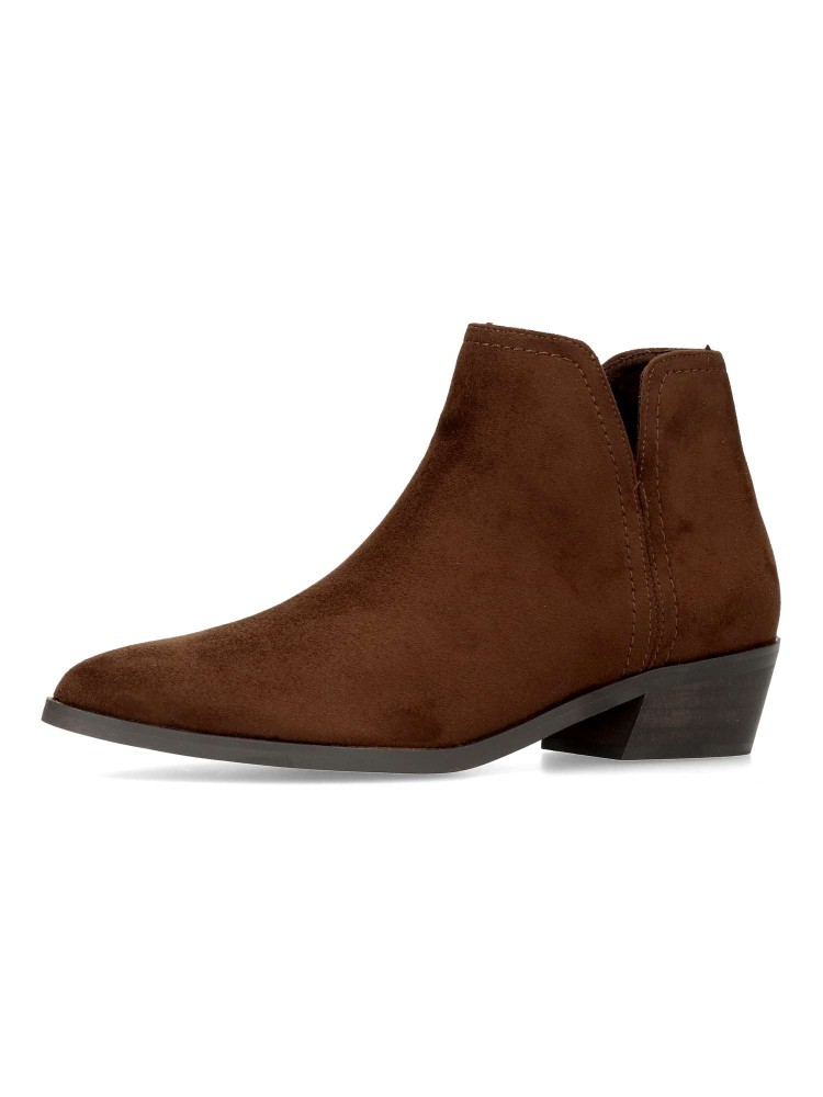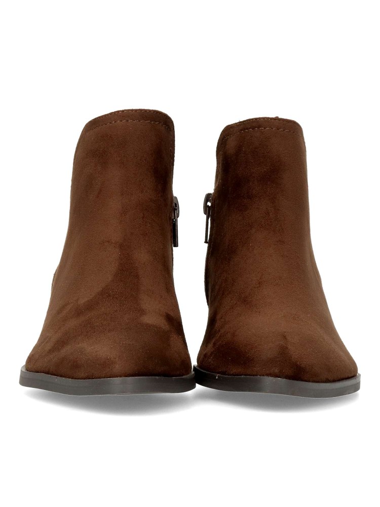 Botín de caña baja de mujer. Diseño estilo cowboy, con cierre de cremallera. Fabricado en sintético antelina, con suela de goma. Tacón de 3,5 cm. Caña de 10 cm. Color negro. Botín campero clásico y versátil, con tus looks de temporada.