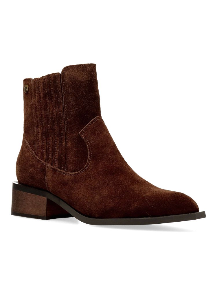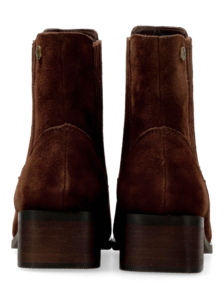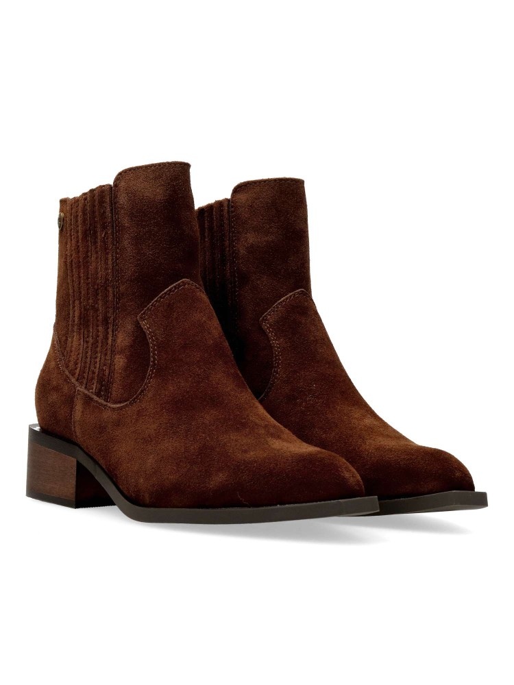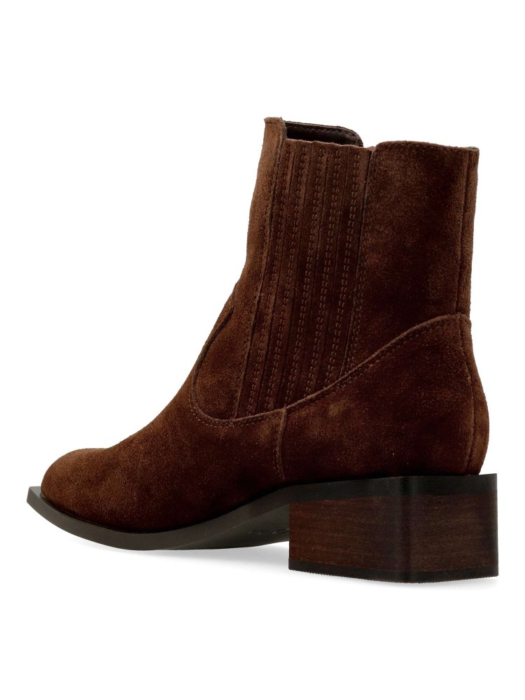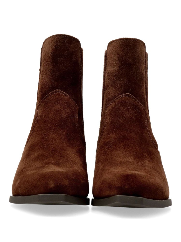 Botín estilo campero de mujer, con elásticos en los laterales para un mejor calce. Fabricados en piel serraje de primera calidad. Suela de goma. Tacón bajo de 4 cm. Botín clásico, cómodo y versátil, que podrás combinar con todos tus outfits de invierno.