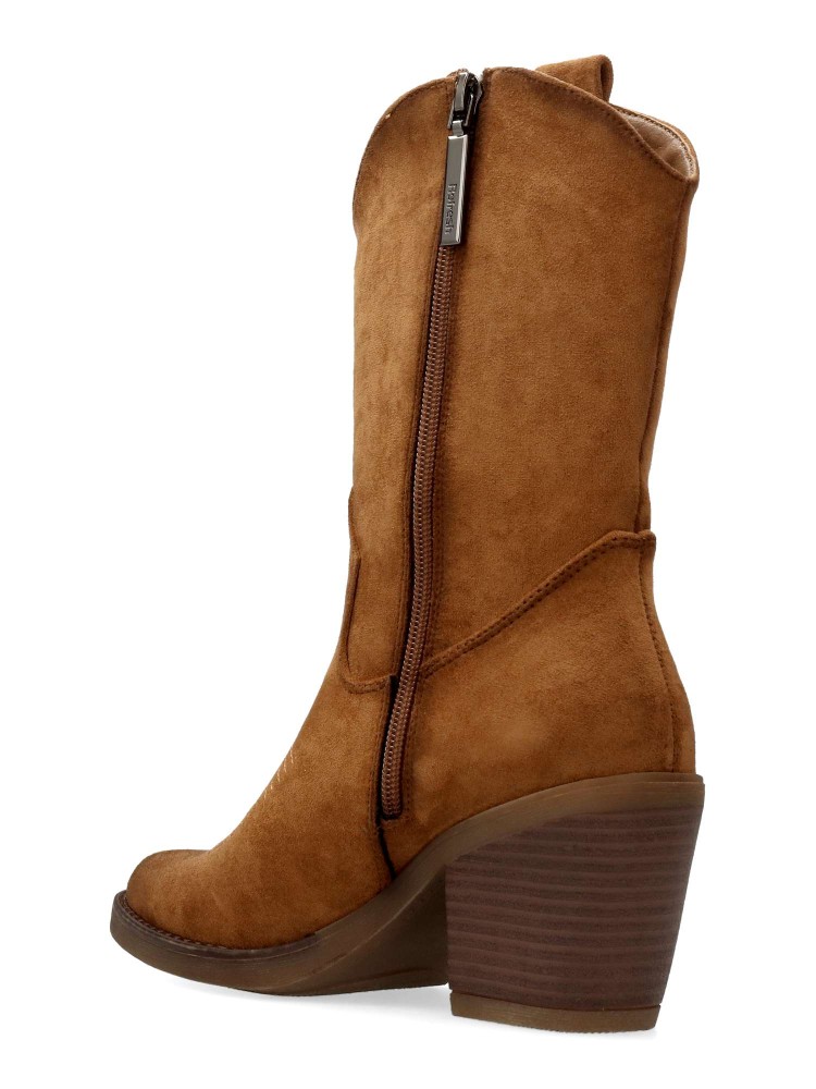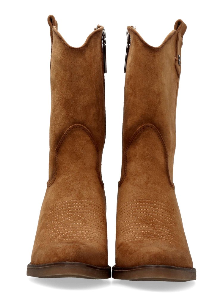 Bota cowboy de mujer, fabricada en una suave antelina. Cierre de cremallera interior. Terminación en punta fina. Suela antideslizante. Plantilla acolchada y extraíble. Un básico de invierno que no puede faltar en tu armario. Certificado vegano.