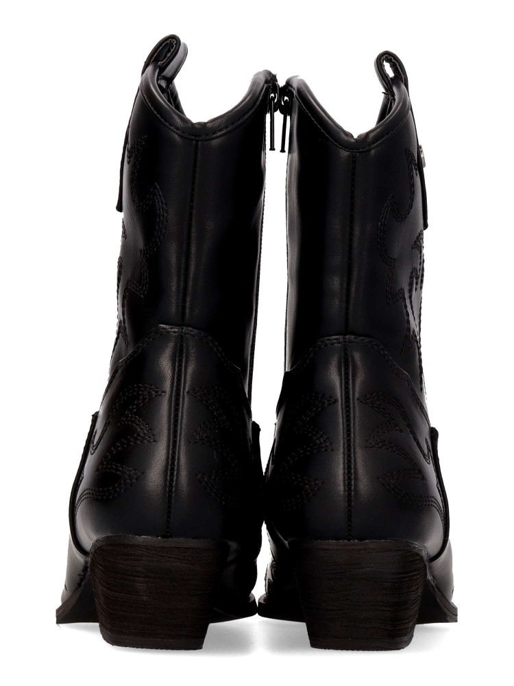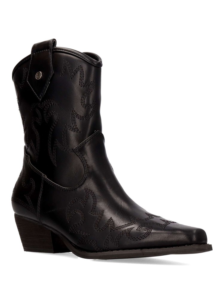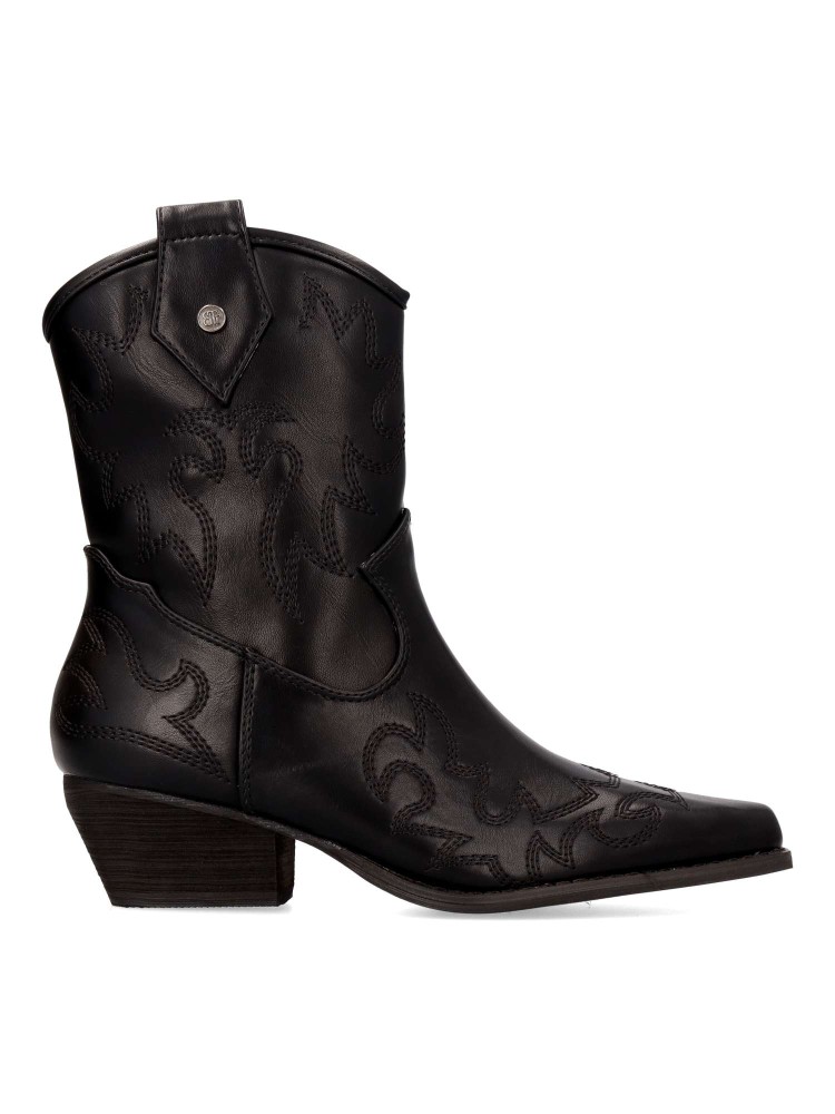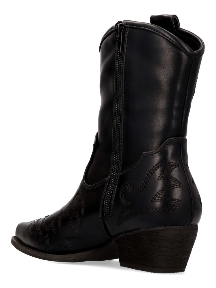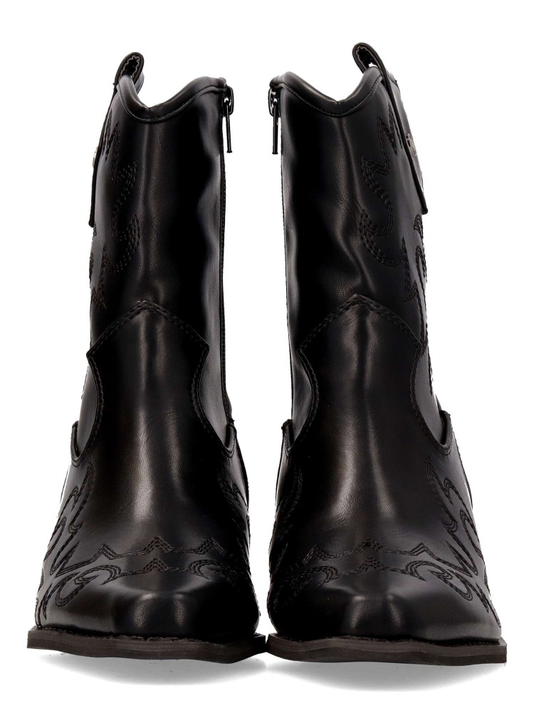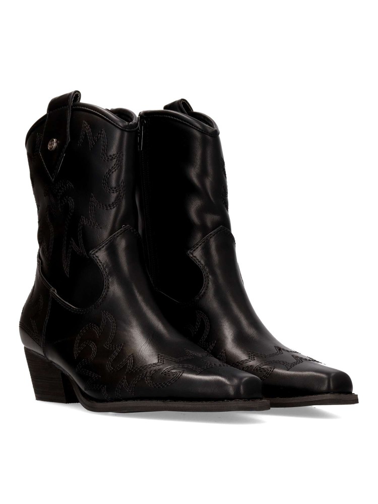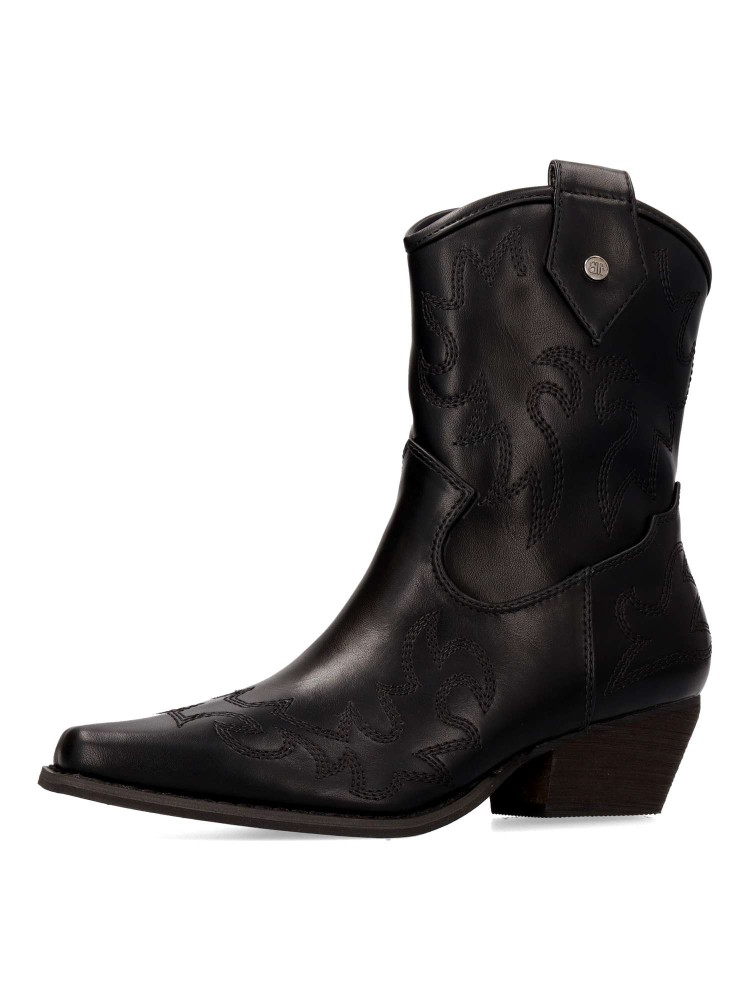 Botín cowboy de mujer, con cierre de cremallera. Fabricado en sintético suave. Original bordado en la caña. Color negro. Elegantes, versátiles y siempre en tendencia. Un equilibrio perfecto entre estilo y comodidad para complementar cualquier look.