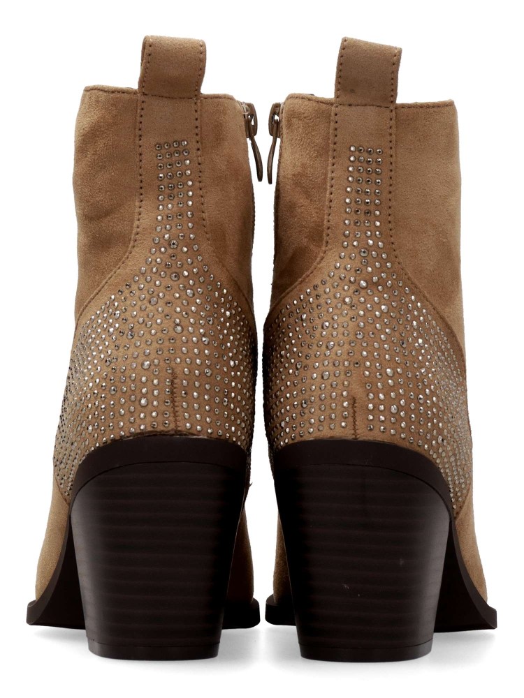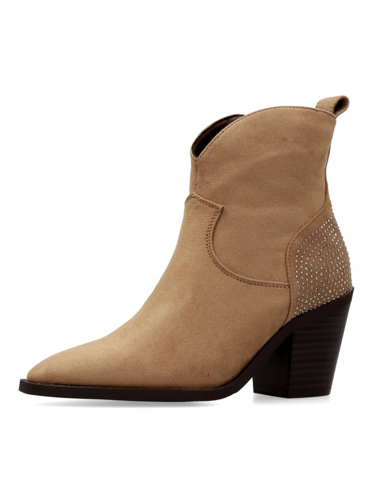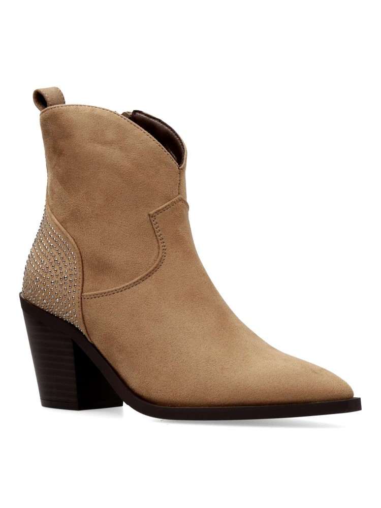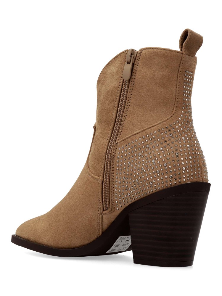 Botín cowboy de mujer, con cierre de cremallera. Fabricado en sintético suave. Talonera con pedrería de brillo decorativa. Elegantes, versátiles y siempre en tendencia. Un equilibrio perfecto entre estilo y comodidad para complementar cualquier look.