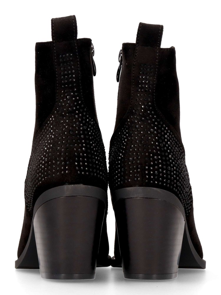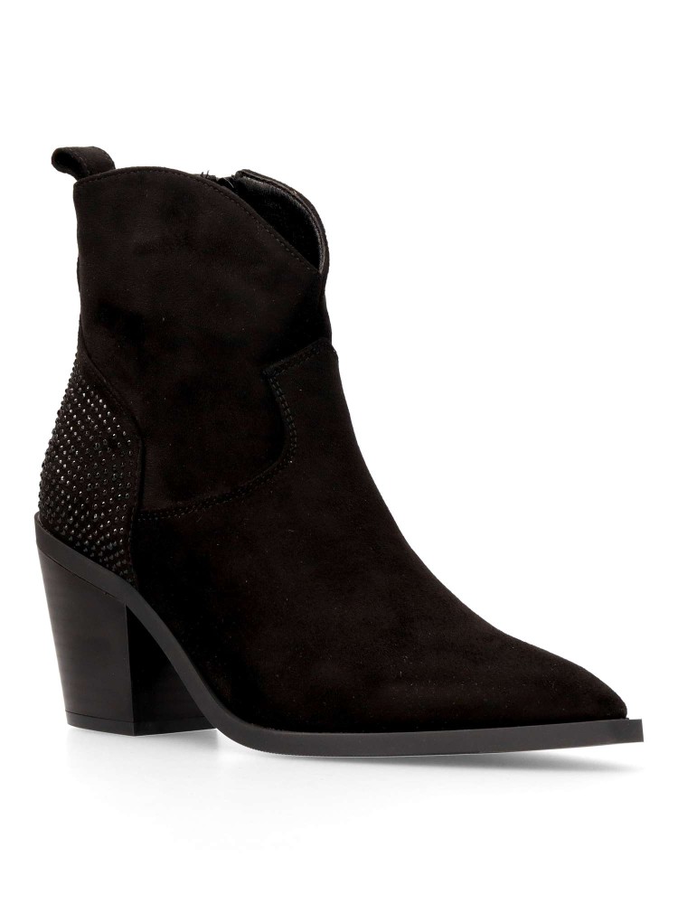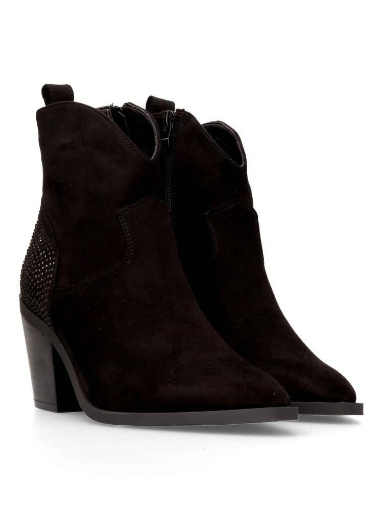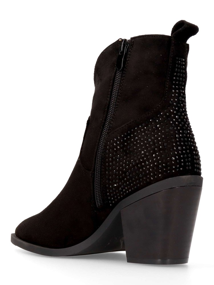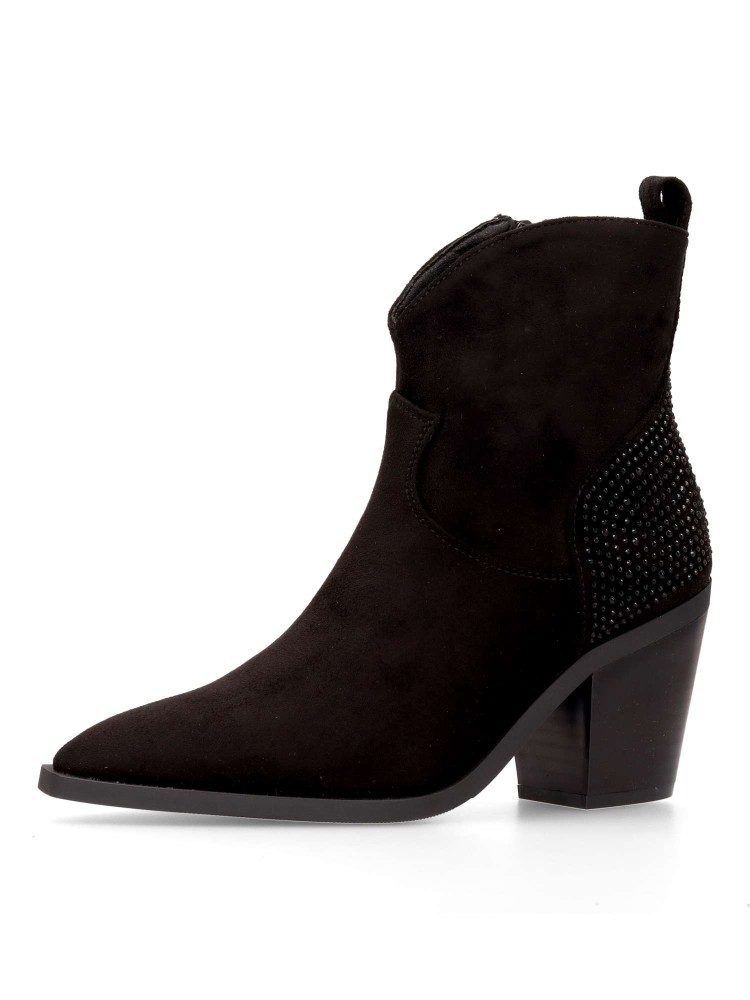 Botín cowboy de mujer, con cierre de cremallera. Fabricado en sintético suave. Talonera con pedrería de brillo decorativa. Elegantes, versátiles y siempre en tendencia. Un equilibrio perfecto entre estilo y comodidad para complementar cualquier look.