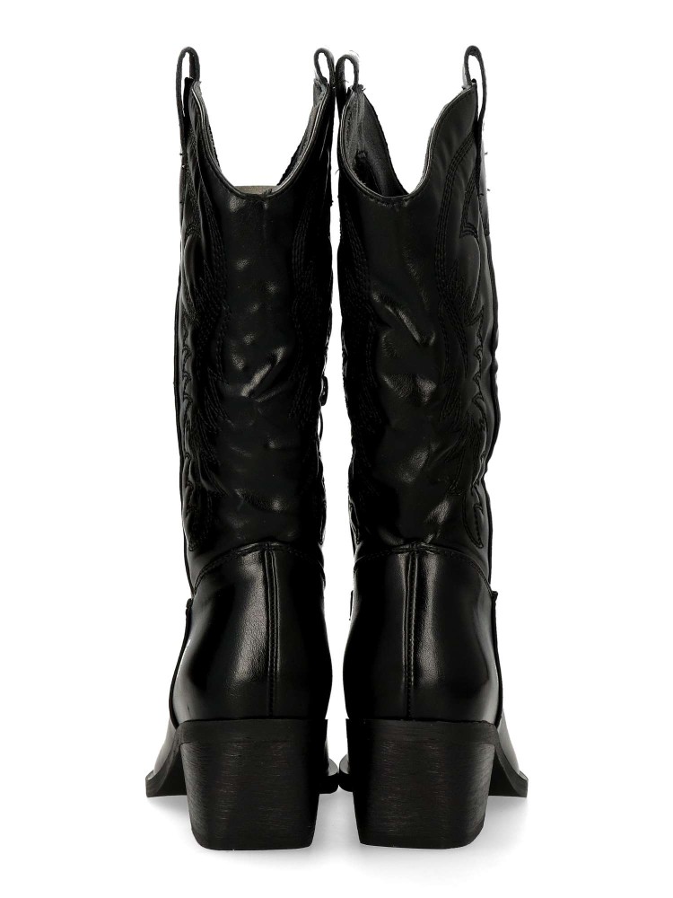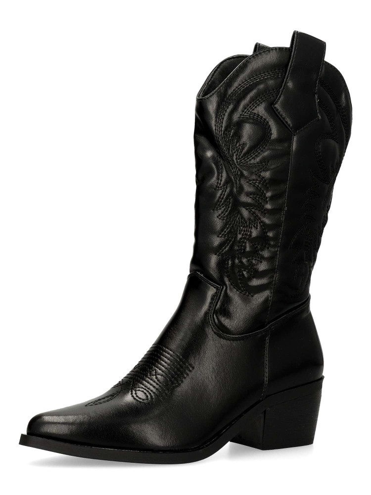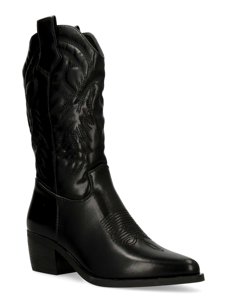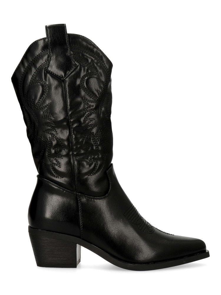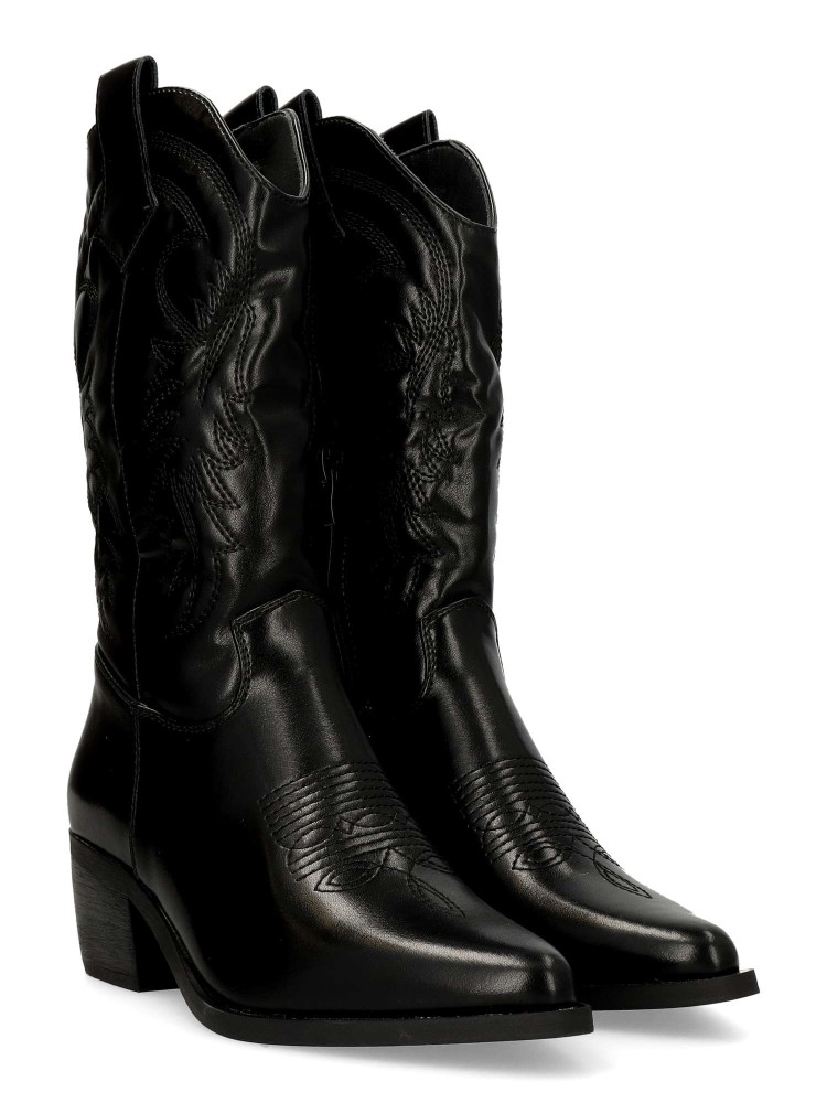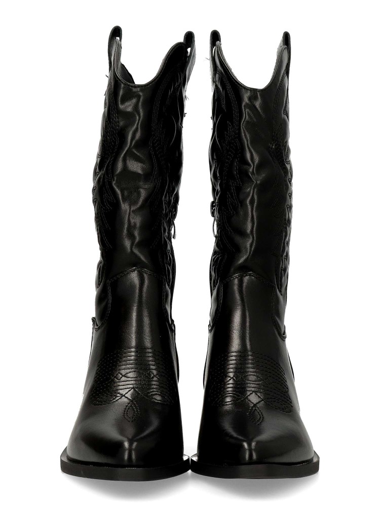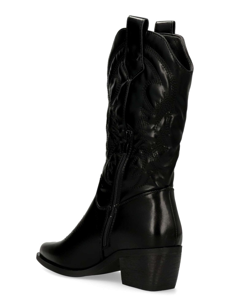 Bota cowboy de mujer, con cierre de cremallera. Fabricado piel sintética. Original bordado en la caña. Color negro. Elegantes, versátiles y siempre en tendencia. Un equilibrio perfecto entre estilo y comodidad para complementar cualquier look.