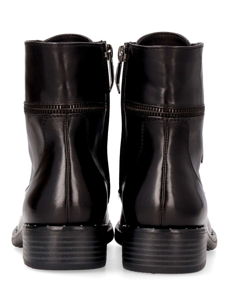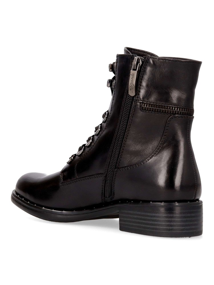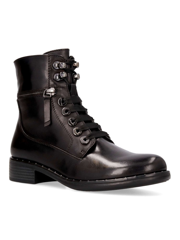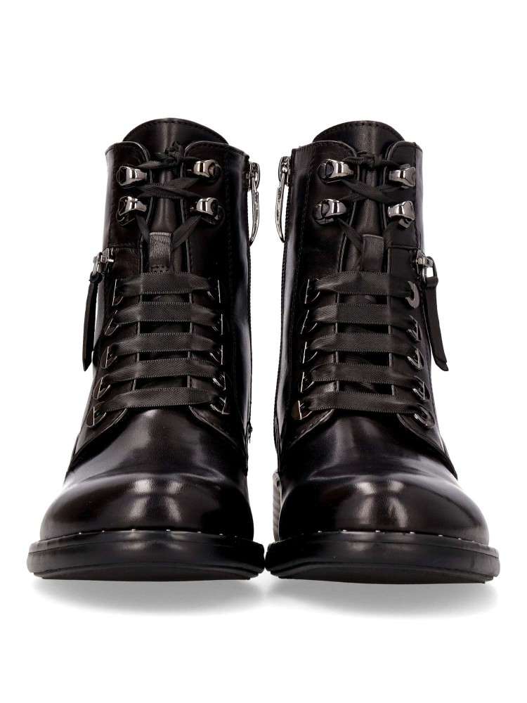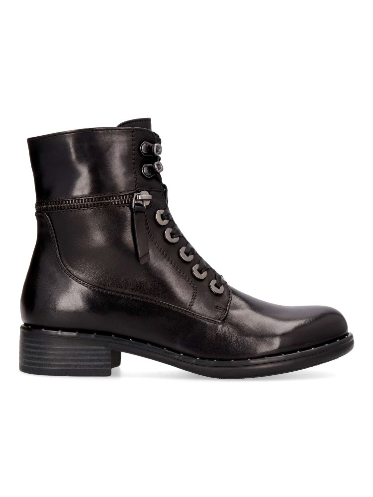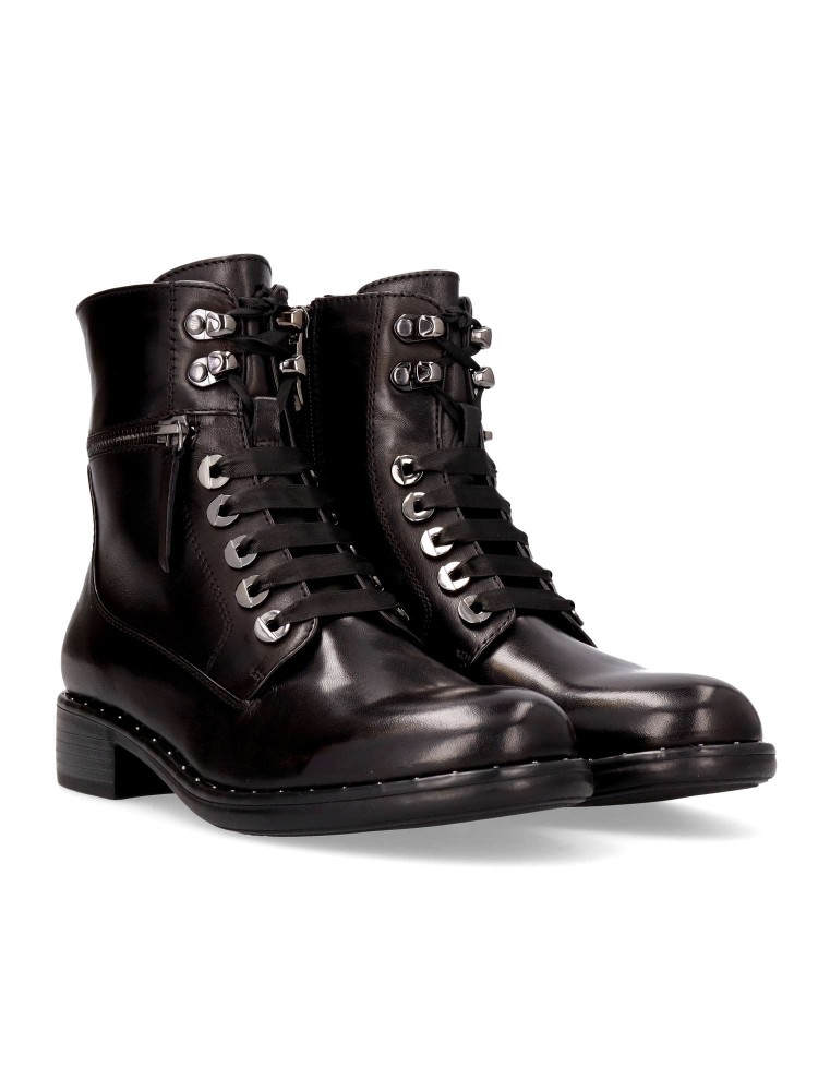 Las botas moteras Roxana combinan estilo y comodidad a la perfección. Fabricadas en piel de primera calidad. Cierre de cremallera y cordones. Pequeño tacón de 3 cm y caña de 15 cm. Botín atemporal que irradia elegancia y garantizan un uso cómodo.