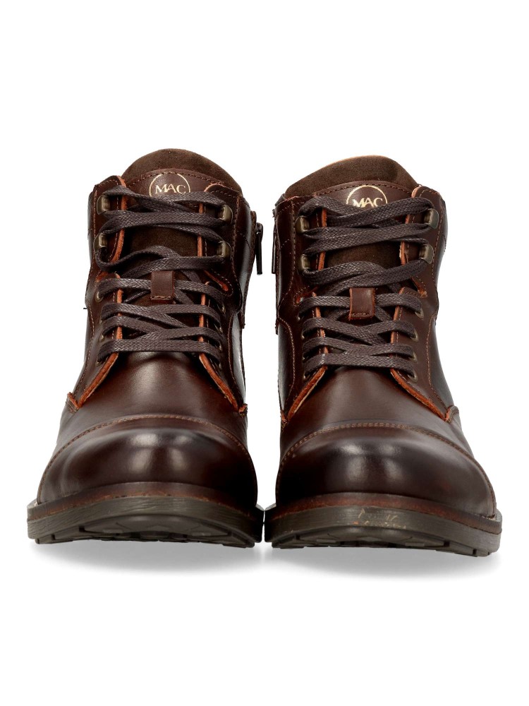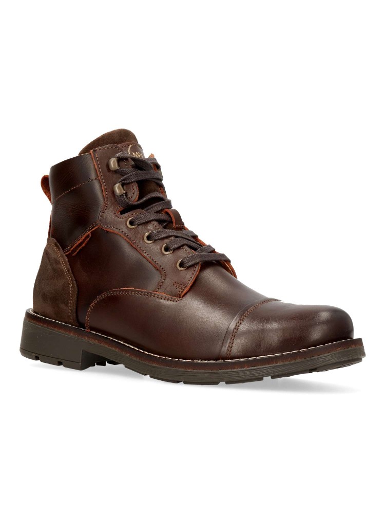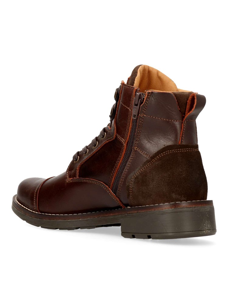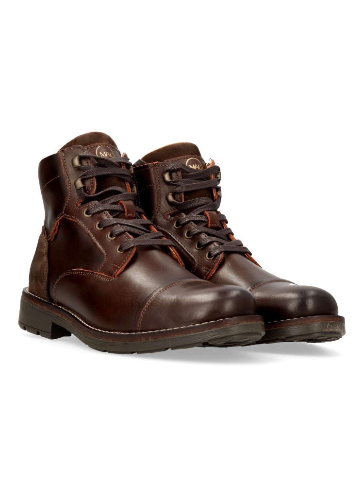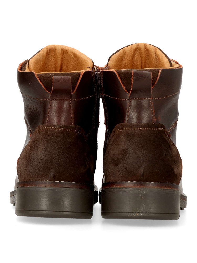 Bota cómoda de hombre, con cierre de cordones. Cuello acolchado. Modelo fabricado en piel natural nobuck, con suela de goma antideslizante. Plantilla acolchada. Color marrón oscuro. Combinan diseño y confort para conjuntar con tus looks de invierno.