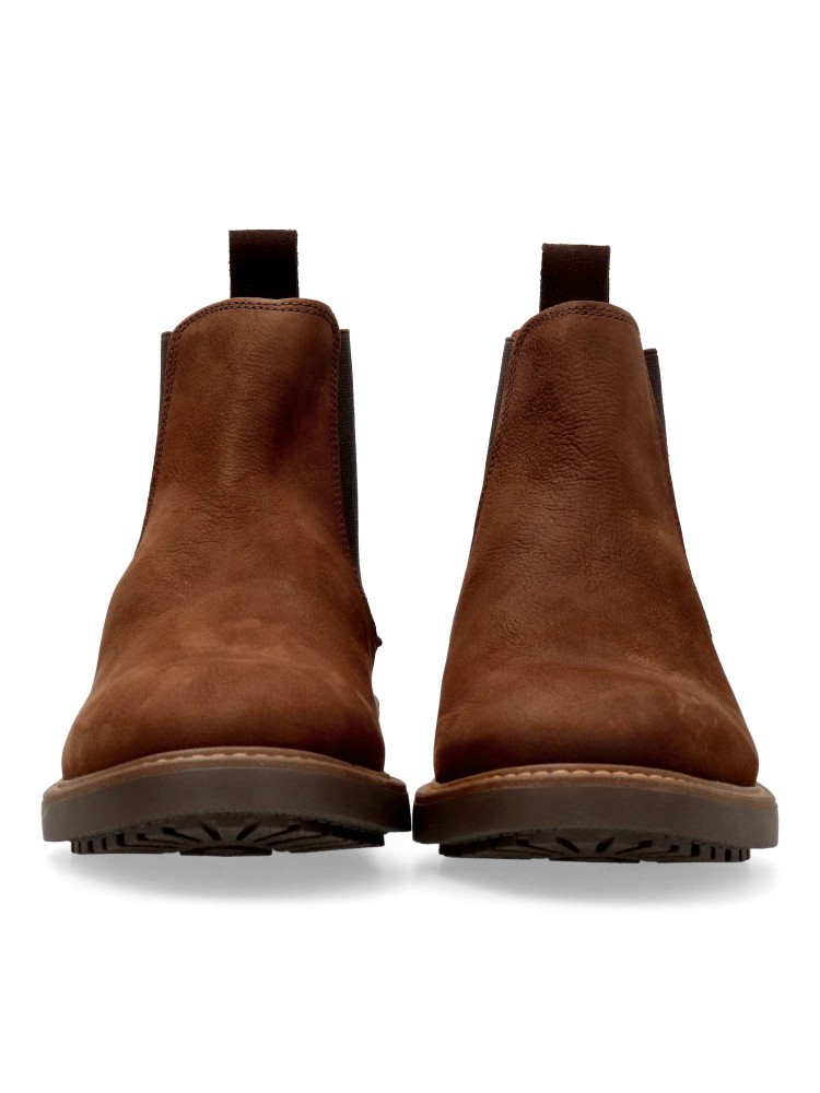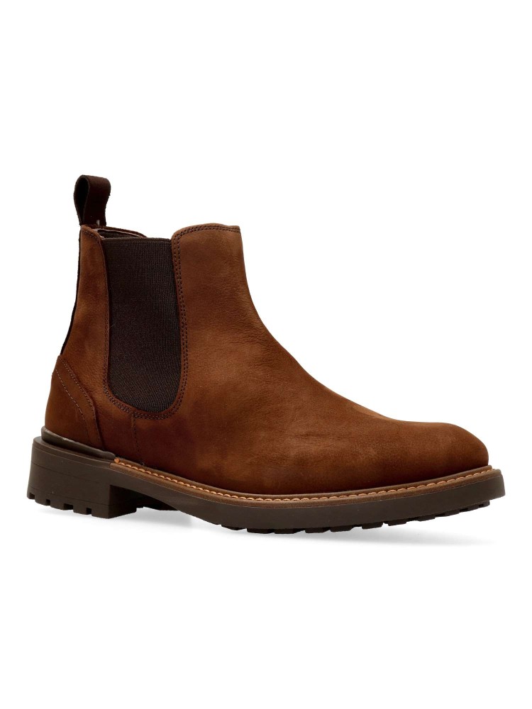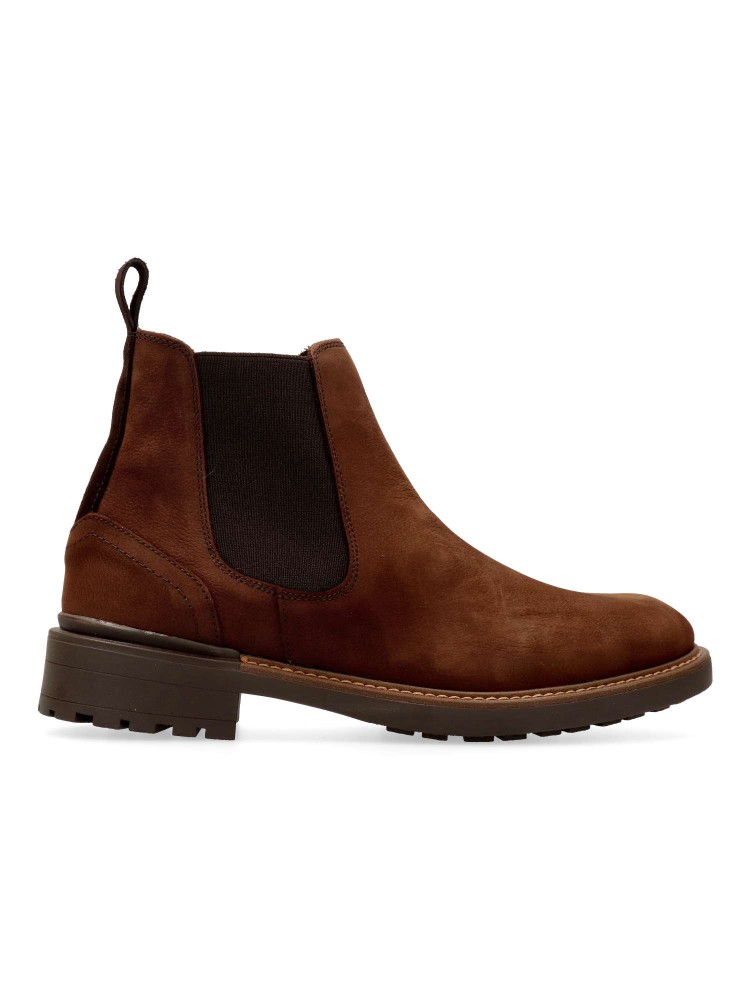 Botín de hombre, tipo chelsea. Elásticos en los laterales. Botín fabricado en piel suave, con suela de goma. Plantilla acolchada. Color marrón. Bota campera con diseño clásico, ideal con tu outfit urbano. Diseño y confort en tu día a día. Hecho en España.