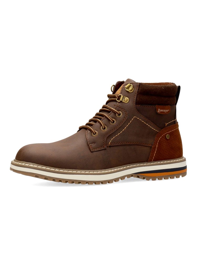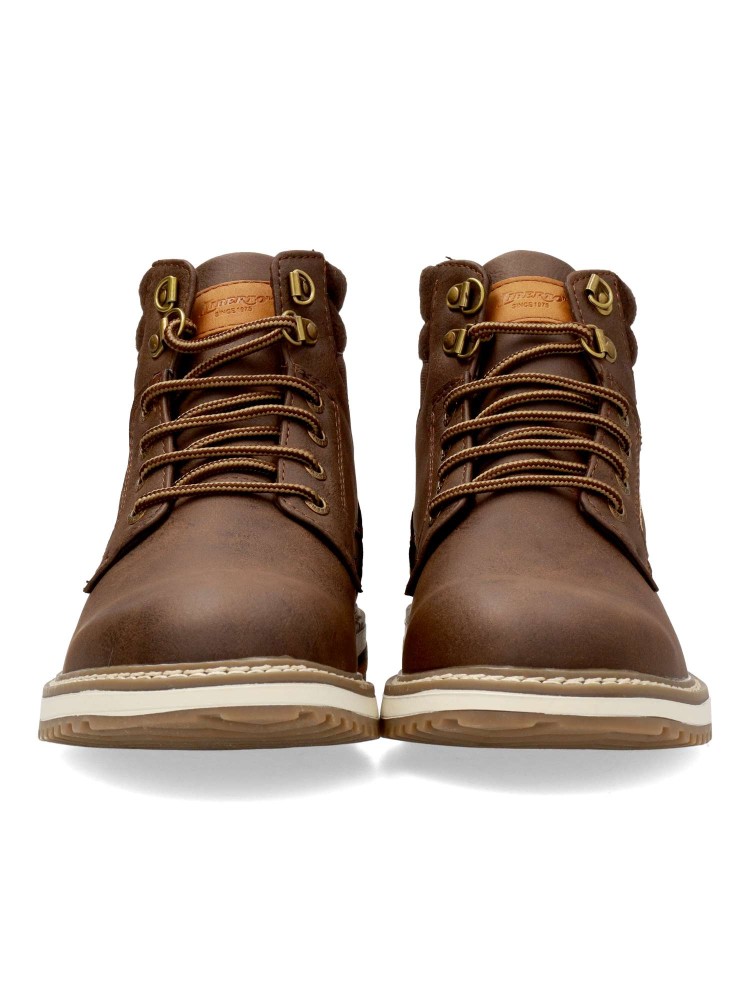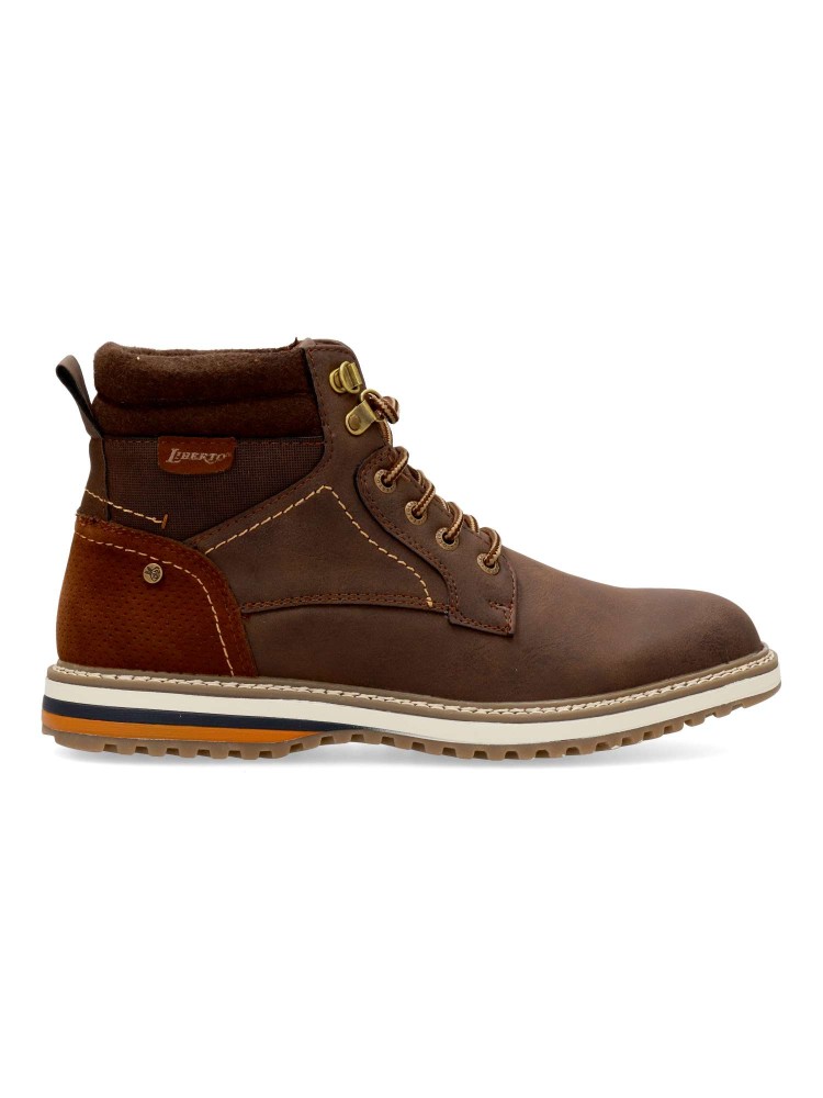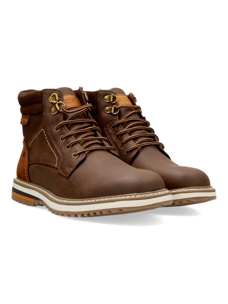 Bota para hombre, estilo casual. Cierre de cordones. Modelo tipo oxford, fabricado en material sintético con suela de goma flexible. Plantillal acolchada. Color café. Combinan elegancia y funcionalidad para un look versátil y refinado.