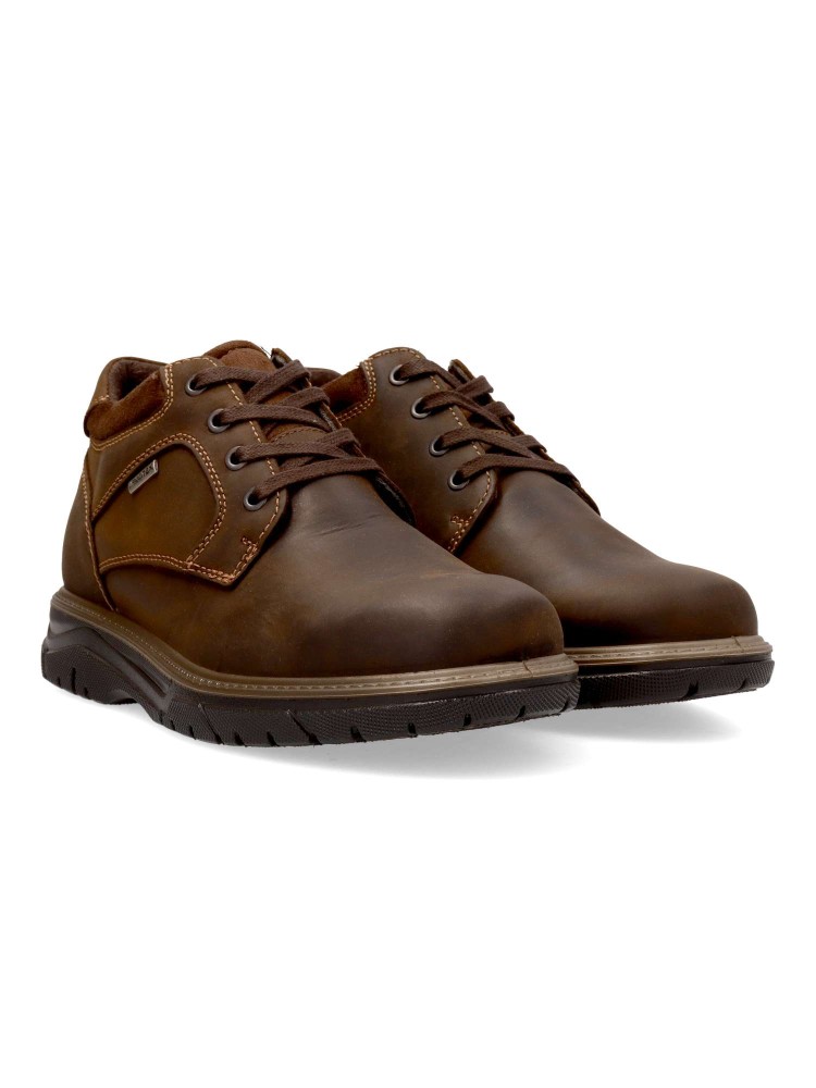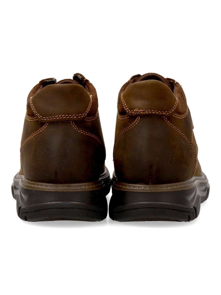 Botín casual confort de hombre. Cierre de cordones. Modelo fabricado en piel natural, con suela de goma, tecnología Shock Absorber. Plantilla extraíble de piel. Tecnología Imac Tex: Membrana protectora de agua y transpiradora. Ideal en tu día a día.