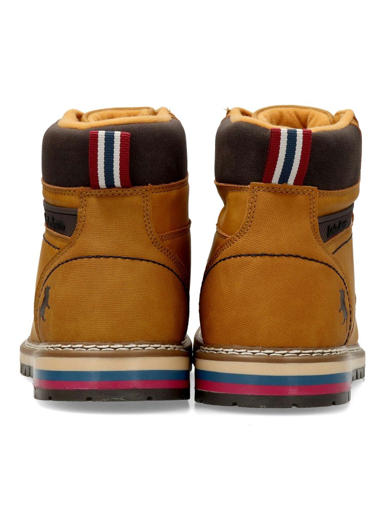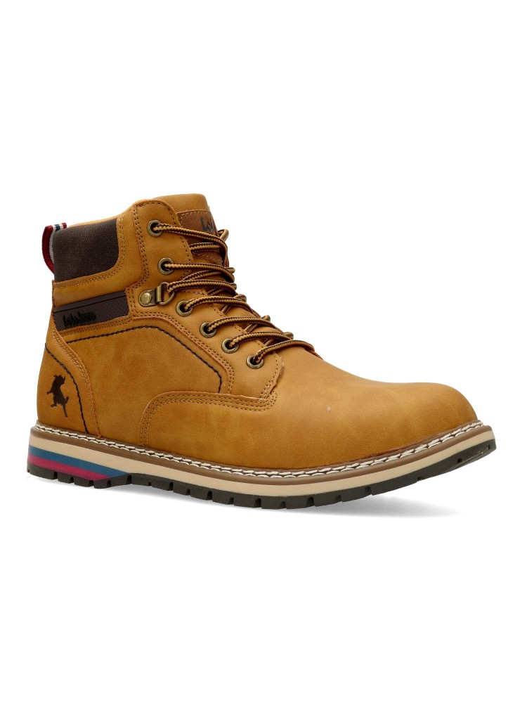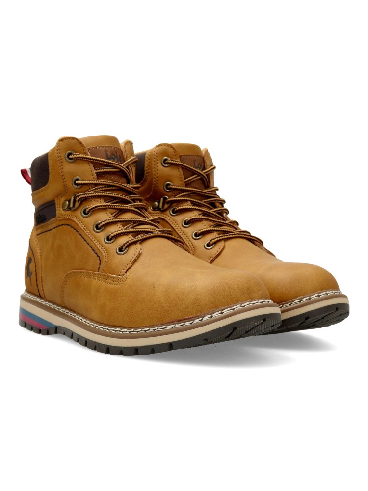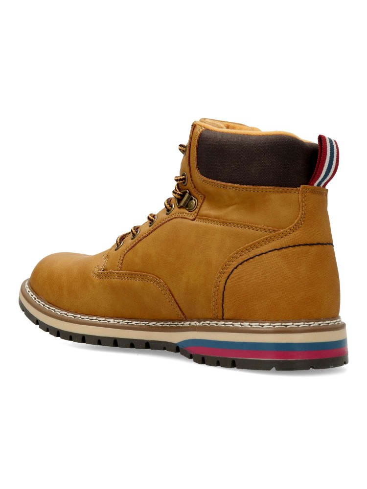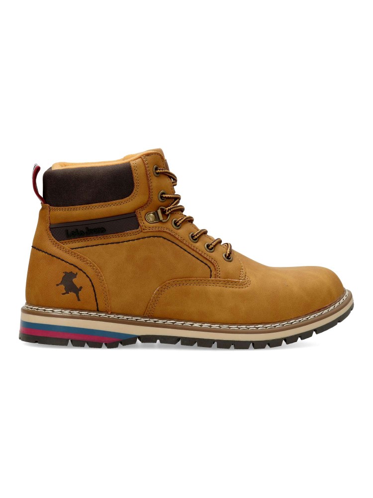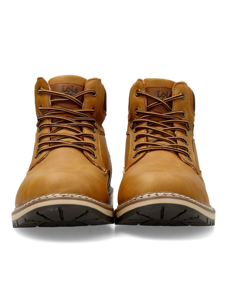 Bota de montaña para hombre, estilo casual. Cierrre de cordones. Botín cómodo, fabricado en piel sintética, con suela de goma. Plantilla acolchada y extraíble. Color melocotón. Bota sport ideal para combinar con tu estilo urbano. Lois Footwear.