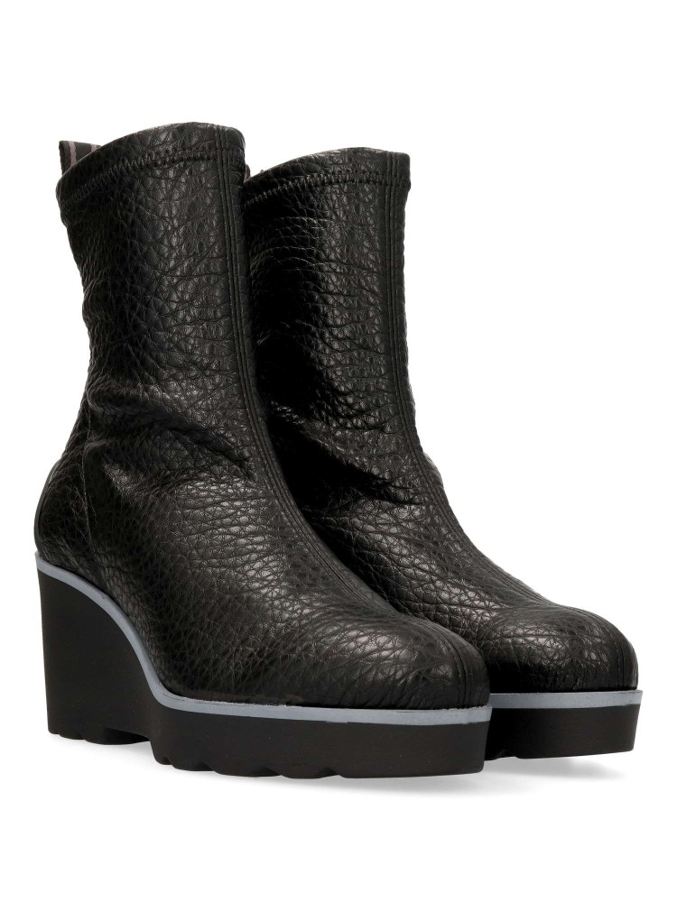 Botines de tejido elástico efecto piel metalizada de color bronce. Su horma ancha garantiza un ajuste espacioso y agradable incluso después de horas de uso. Altura cuña 7 cm. Altura caña 15 cm. Básico y atemporal imprescindible en tu armario.