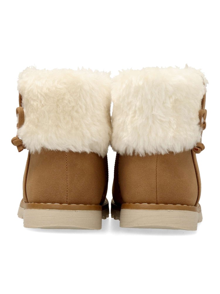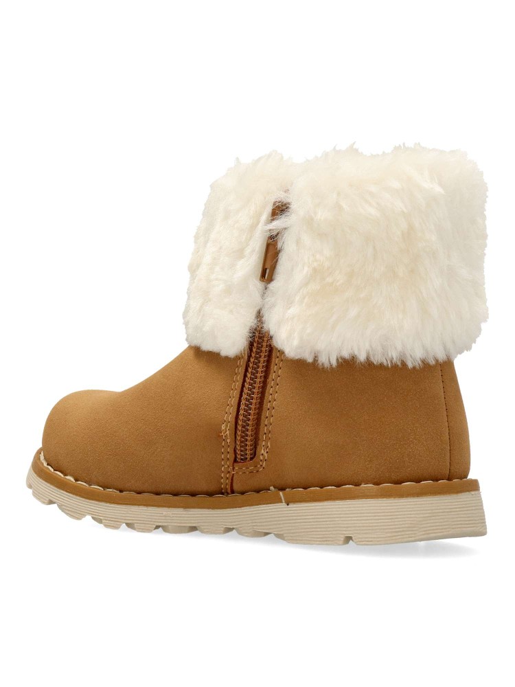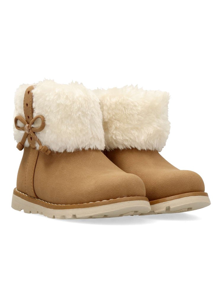 Botita de niña con collarín forrado de pelo. Cierre de cremallera. Fabricado en piel sintética. Color cuero. Modelo que estimula el pie de los niños, transpirable, cómodo, ligero y flexible. Equipado con plantilla Impronta Naturale Chicco.