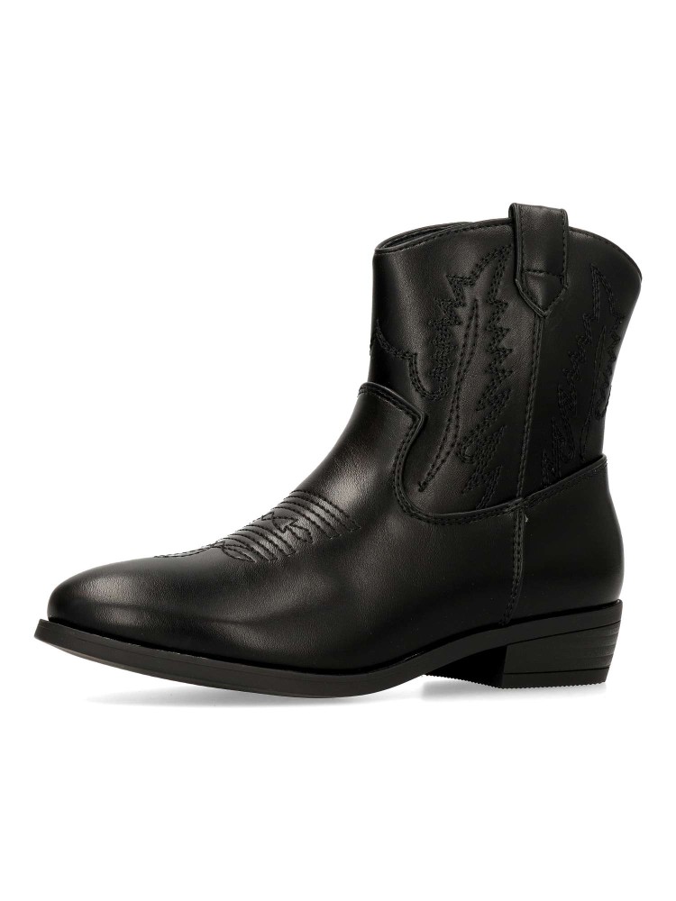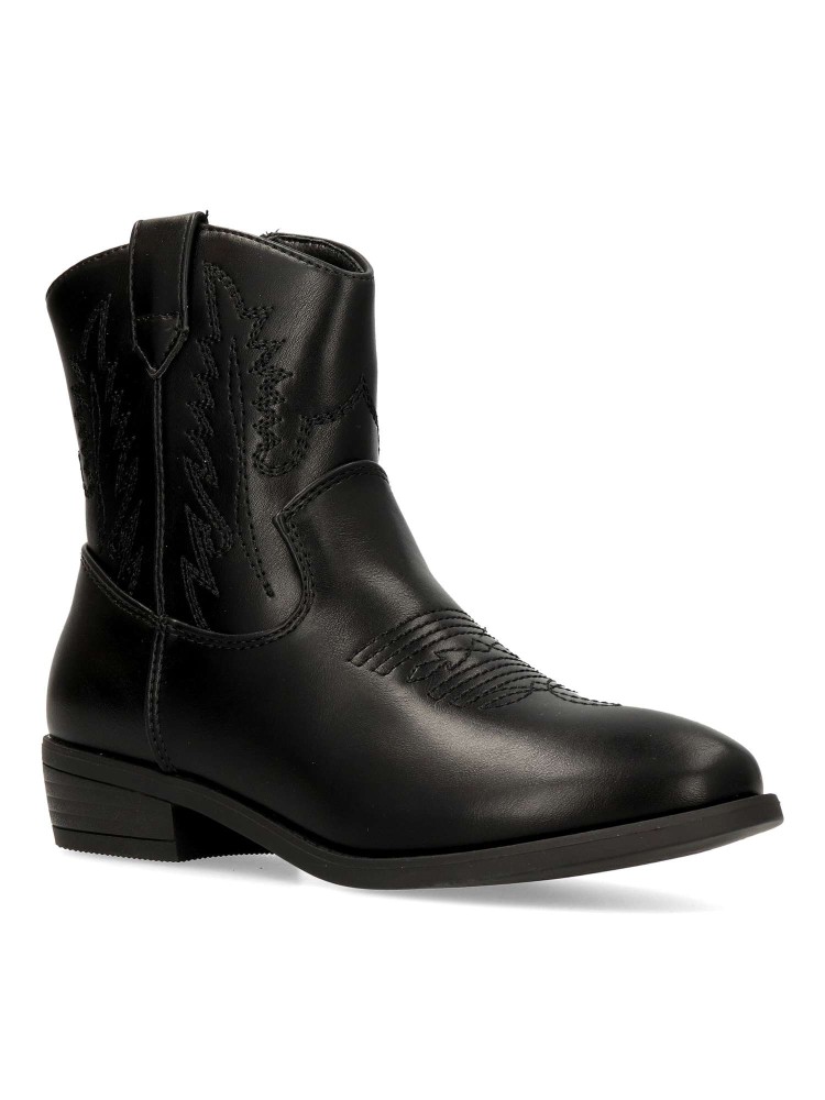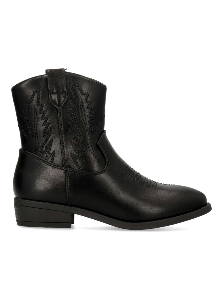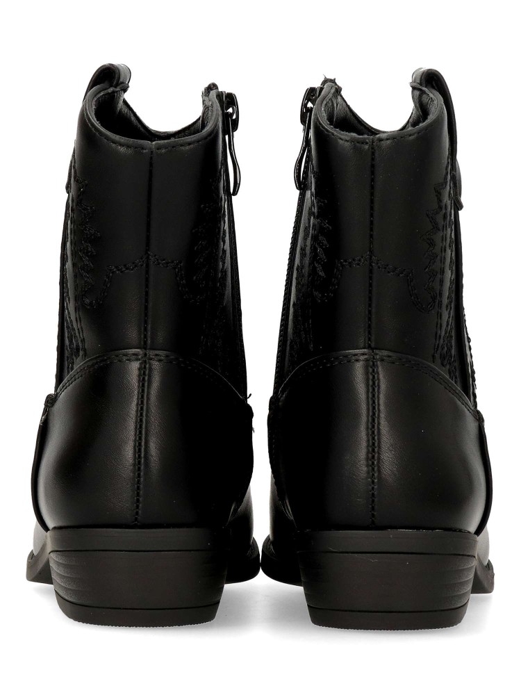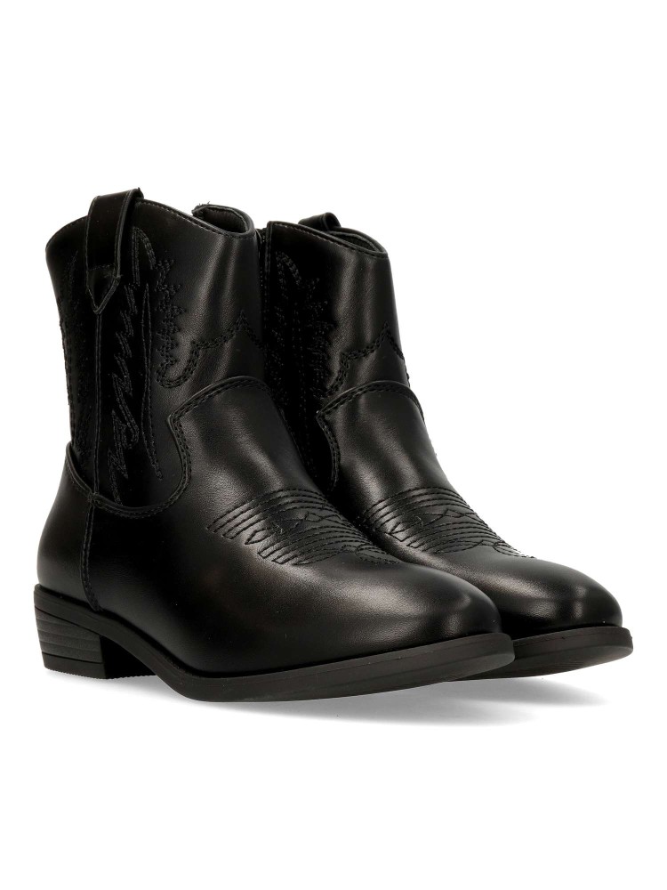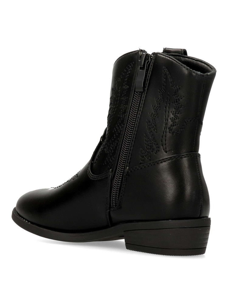 Botín de caña baja de niña. Diseño estilo cowboy, con cierre de cremallera. Fabricado en sintético antelina, con original bordado. Tacón bajo de 3 cm. Caña de 13 cm. Color beige. Diseño clásico y versátil, fácil de combinar con outfits de temporada.