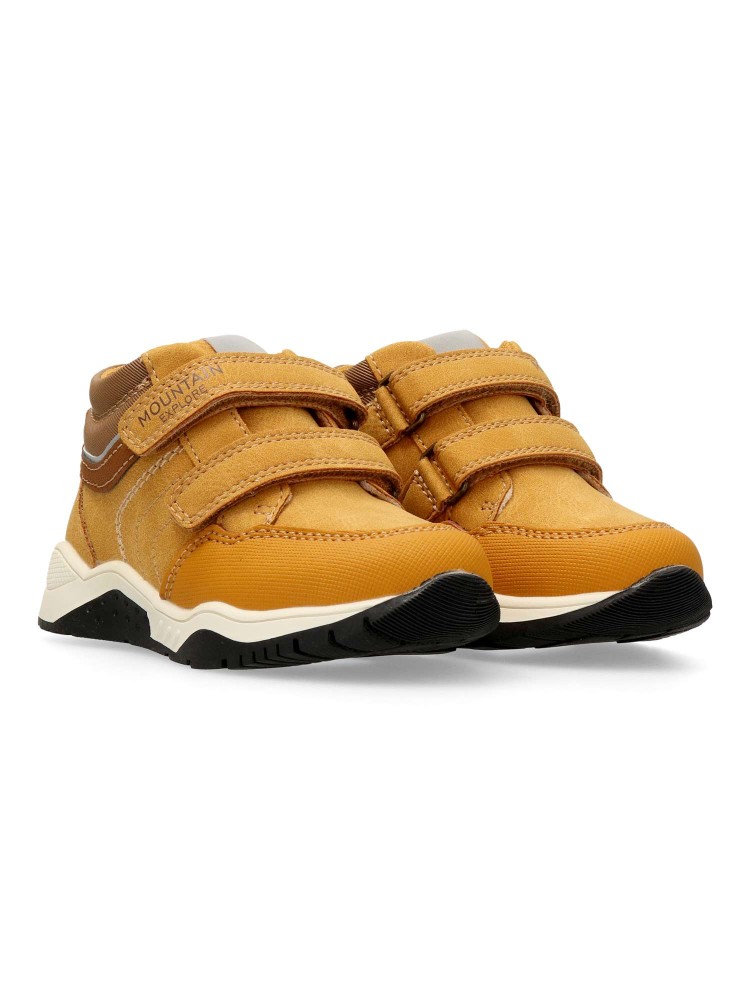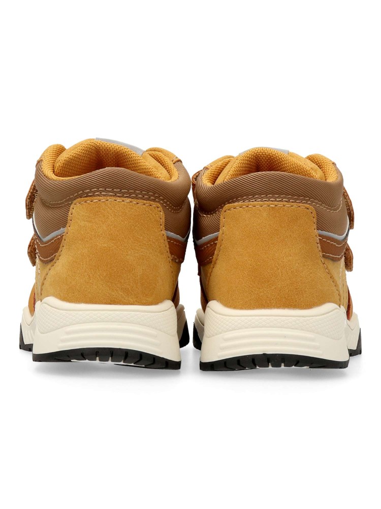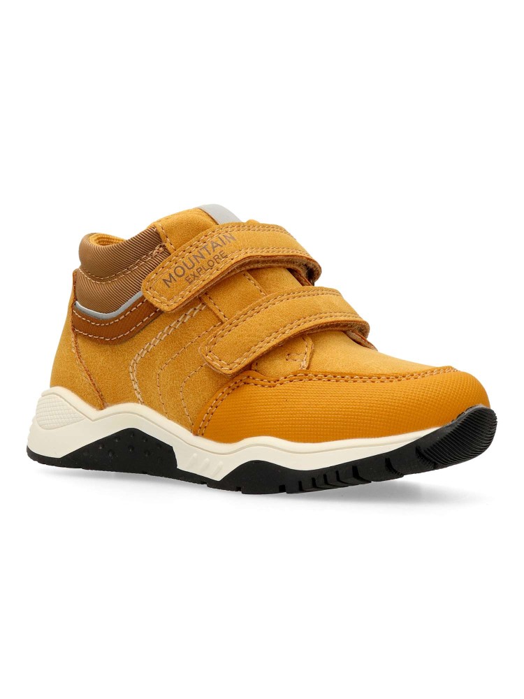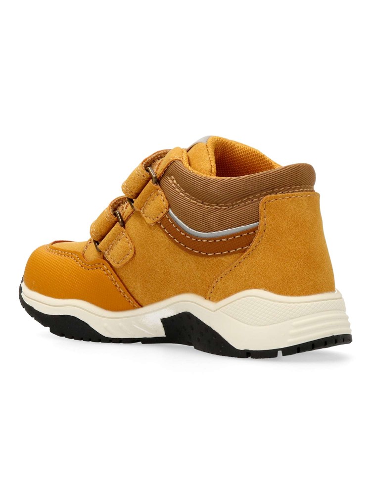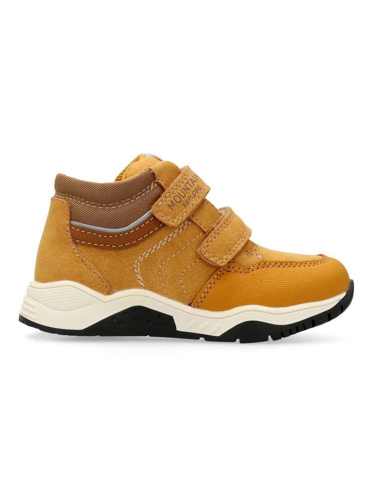 Botín de niño estilo casual. Fabricado en piel sintética, con suela de goma. Color ocre. Botita que estimula el pie de los niños, transpirable, cómodo, ligero y flexible. Plantilla Impronta Naturale Chicco. Diseño y confort para que los peques disfruten.