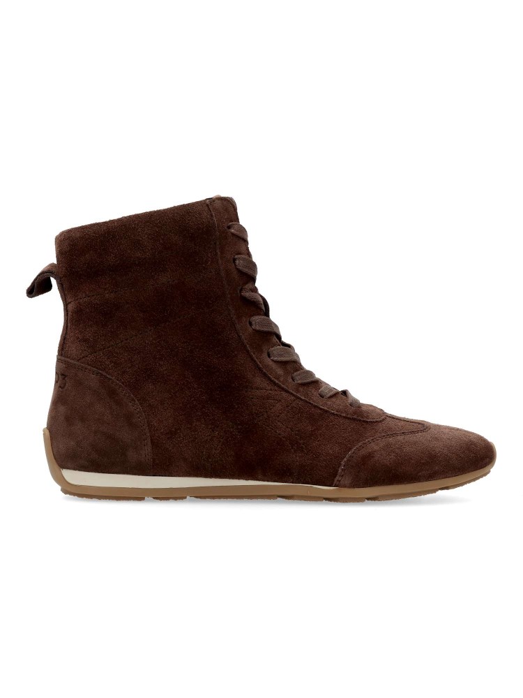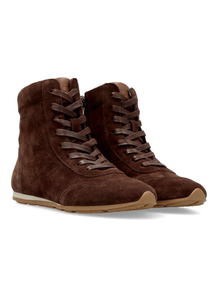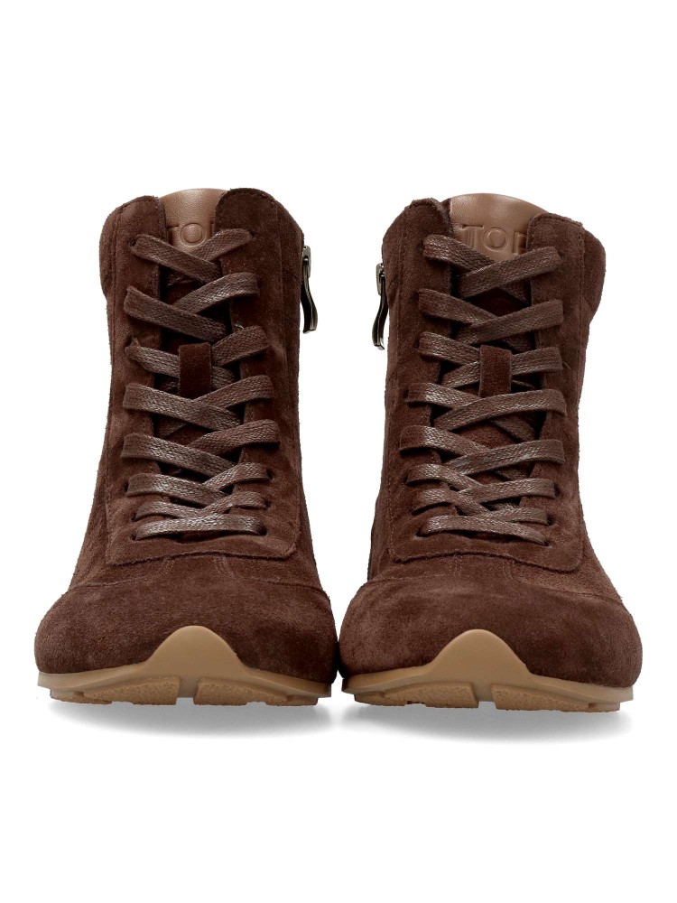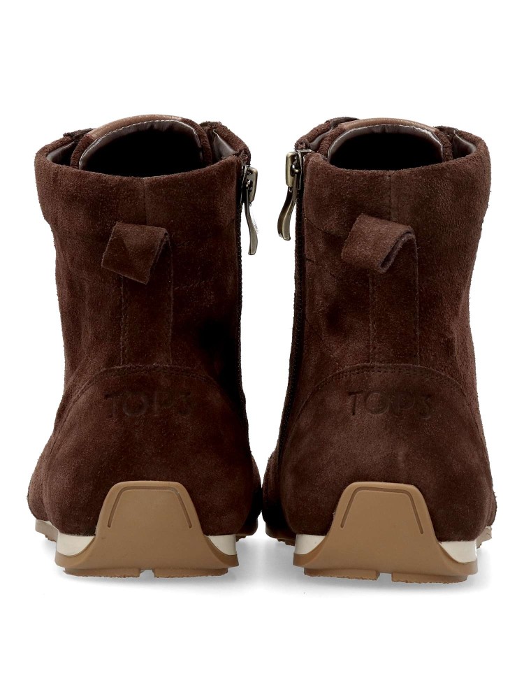 Botines boxing de mujer. Fabricado en piel serraje, con suela de goma flexible. Forro interior y plantilla acolchada de piel. Color moka. Cierre de cremallera lateral y cordones. Diseño original y versátil, que ofrece el máximo confort en tu día a día.