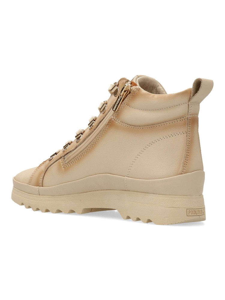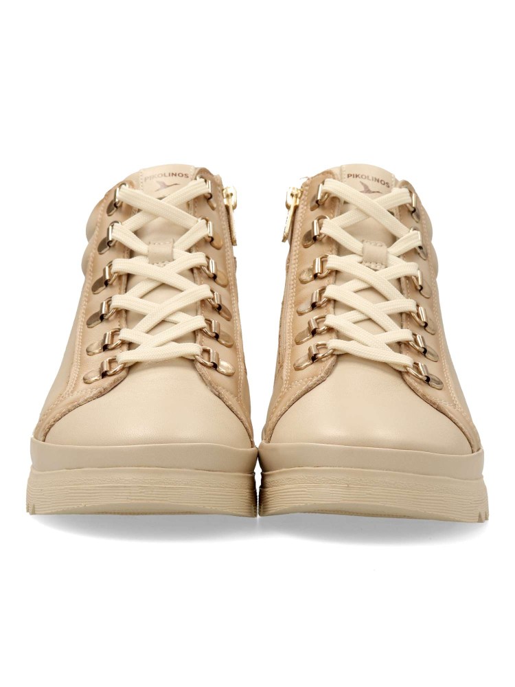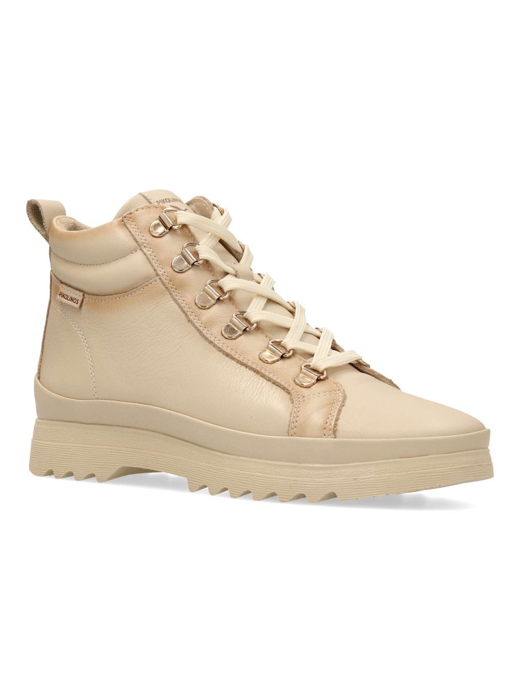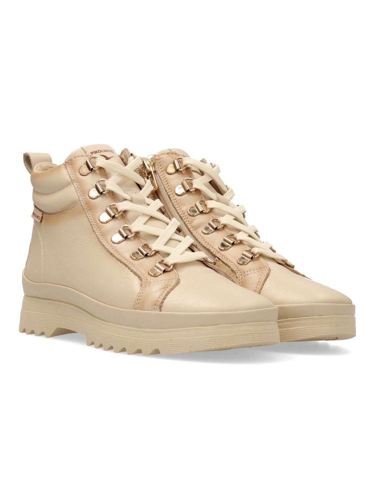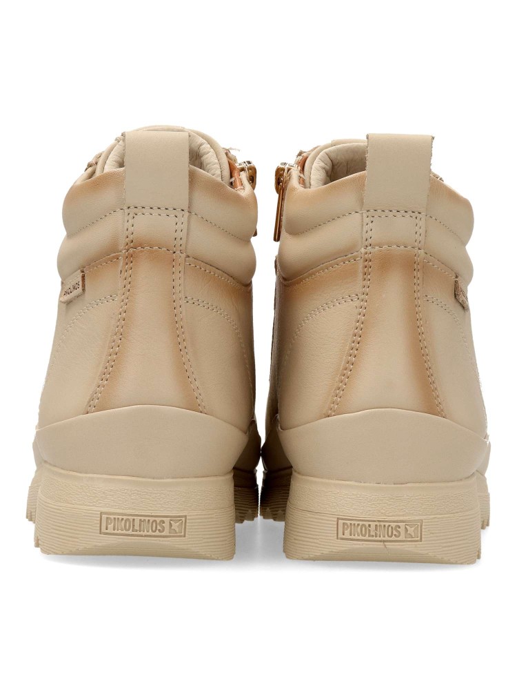 Botines de mujer estilo casual Vigo. Cierre de cordones y cremallera lateral. Fabricados en piel vacuno, con suela de goma. Color marfil. Plantilla acolchada y extraíble. Botín que es cómodo y que te hace sentir auténtica todo el tiempo.