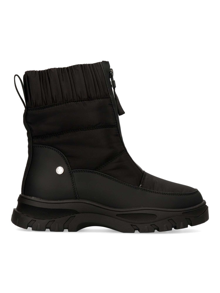 Botín de mujer, con cierre de cremallera. Fabricados en piel sintética y textil acolchado. Forro interior de pelo sintético cálido. Suela de goma antideslizante. Este modelo es perfecto para protegerte del frío sin sacrificar comodidad. Certificado vegano
