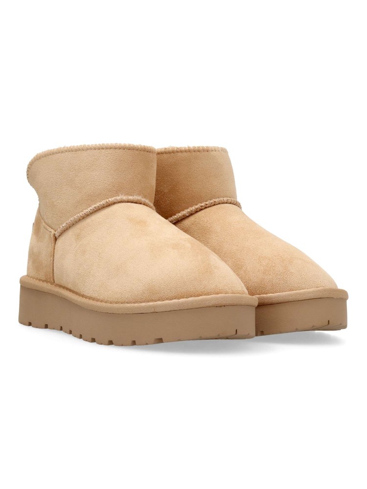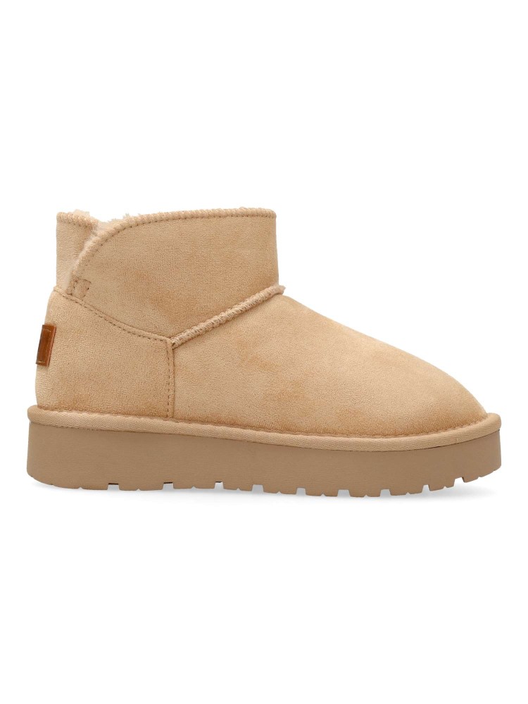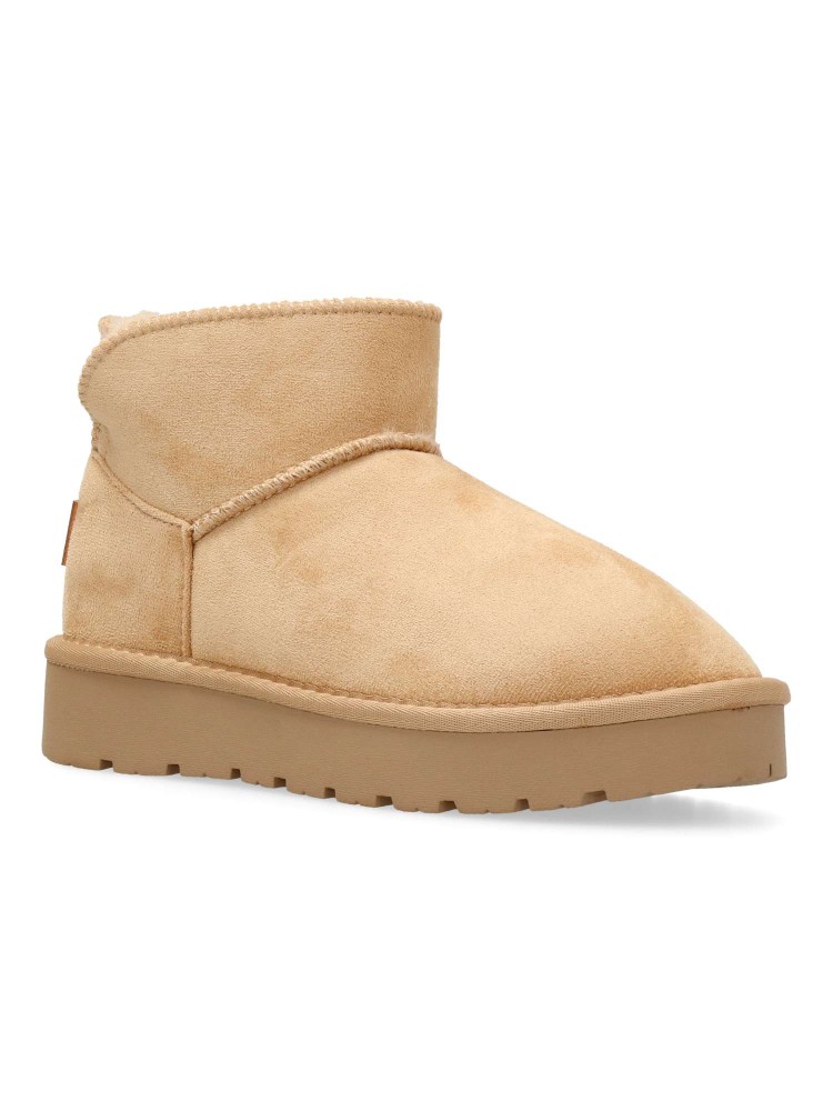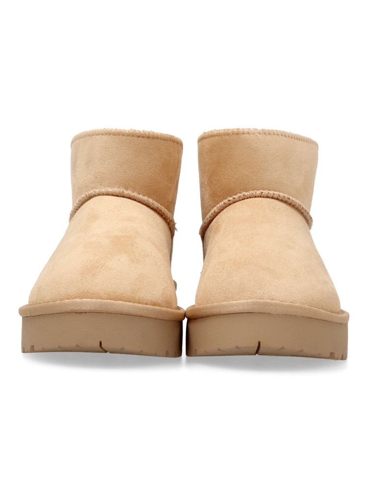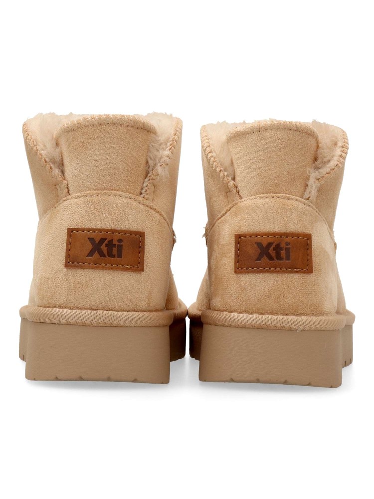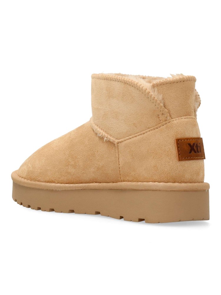 Botín de niña de la marca Xti Kids. Fabricado en suave textil con forro de pelo. Cómoda suela de goma antideslizante de 3,5 cm. Caña de 10 cm. Color beige. Diseño abrigado, ideal para que los peques no pasen frío. Certificad vegano.