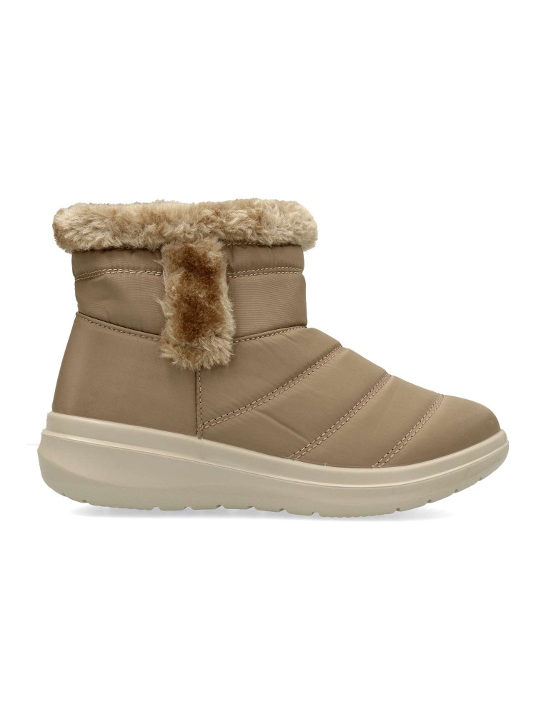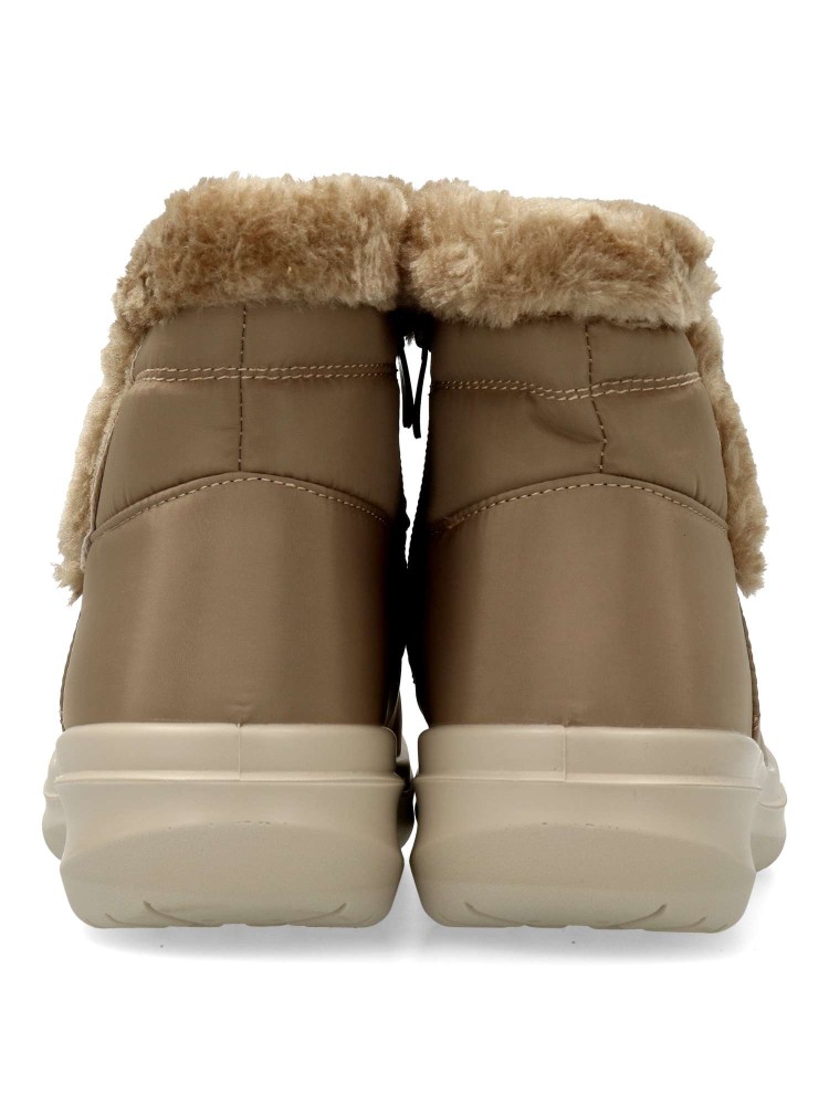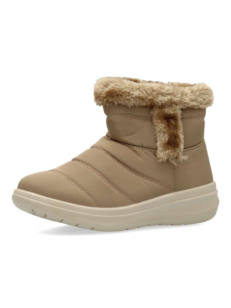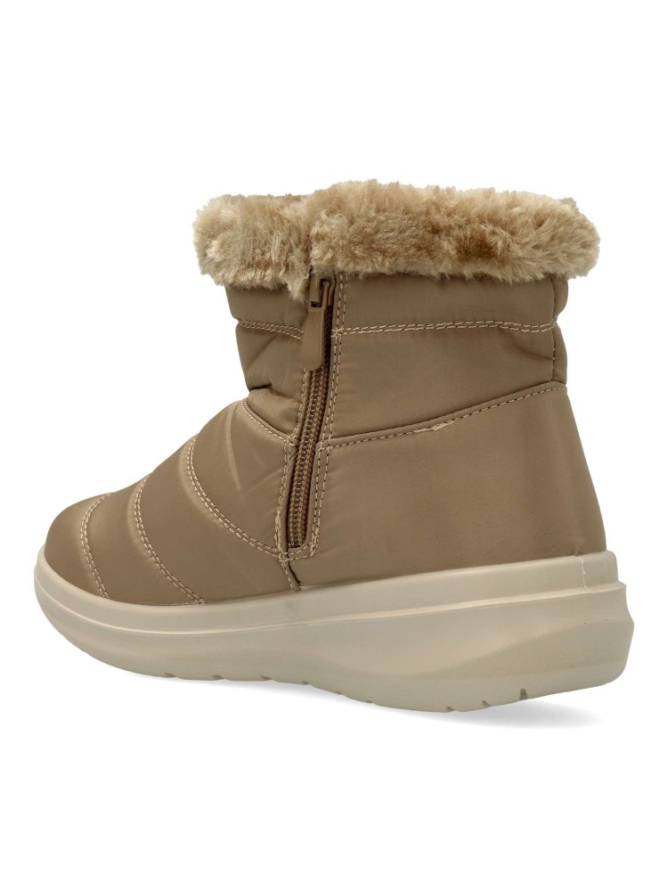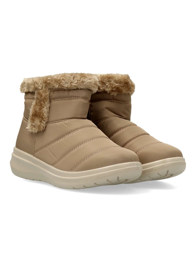 Botín plano de mujer, con cierre de cremallera lateral. Modelo cómodo, fabricado en textil acolchado. suela de goma ligera y flexible. Forro interior de pelo sintético aterciopelado. Modelo cálido y confortable, ideal con tus outfits de invierno.