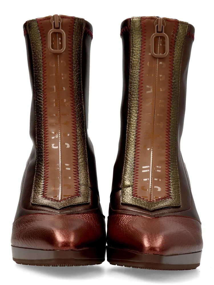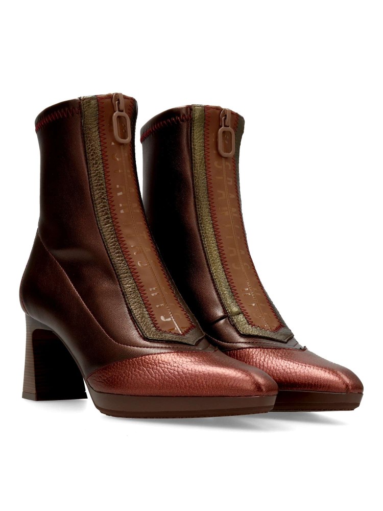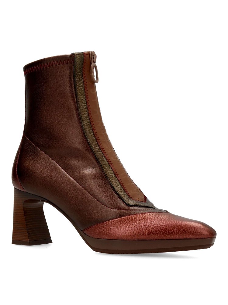 Botín con tacón bloque y punta fina. Cierre de cremallera en el empeine. Fabricado en piel y sintético, con suela de goma. Tacón de 6,5 cm. Incorpora la tecnología TRIFLOW, amortigua cada paso gracias a su triple almohadillado.