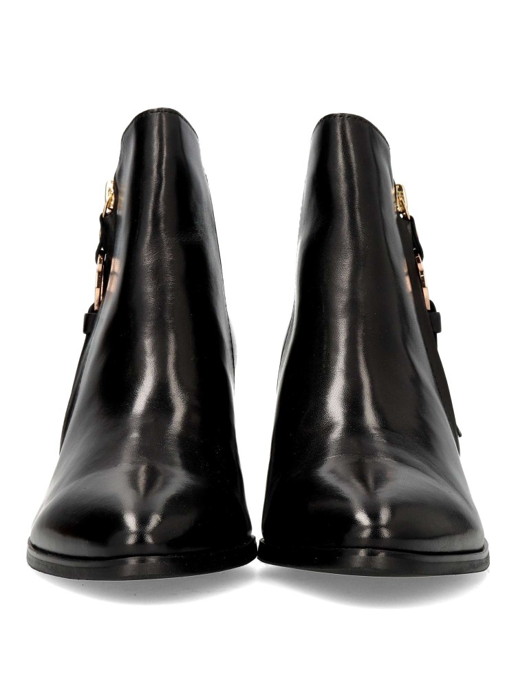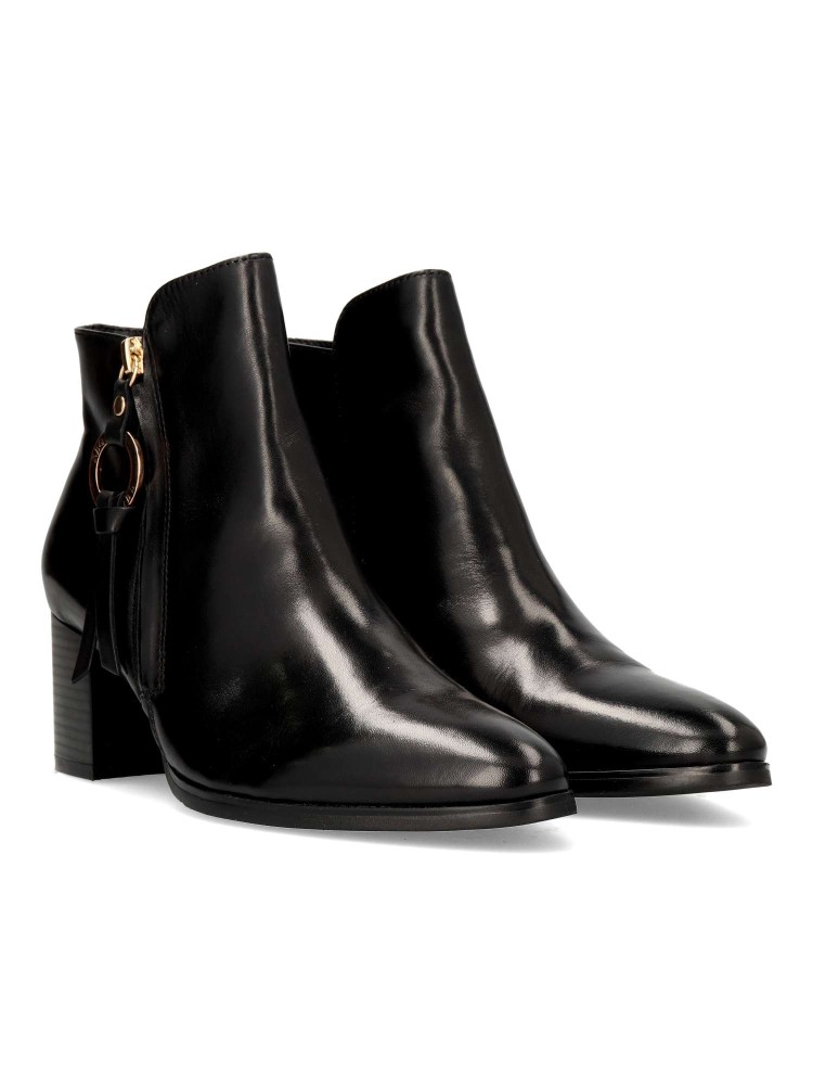 Botines de mujer con cierre de cremallera. Fabricados en piel de calidad, con suela de goma. Forro interior de pelo corto sintético. Color negro. Tacón de 5,5 cm. Caña de 10 cm. Botín versátil que ofrece confort y calidez para los días fríos de invierno.