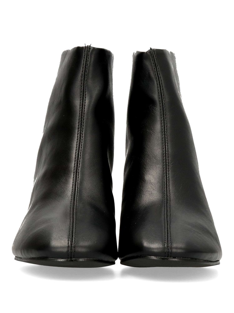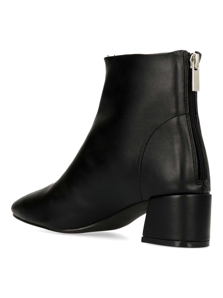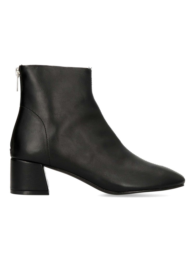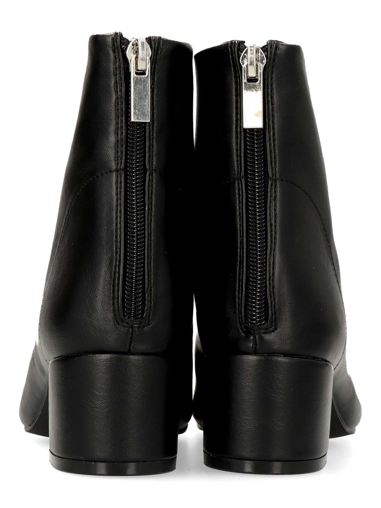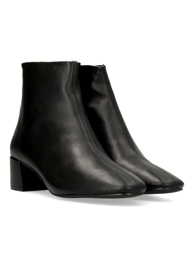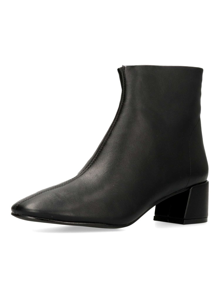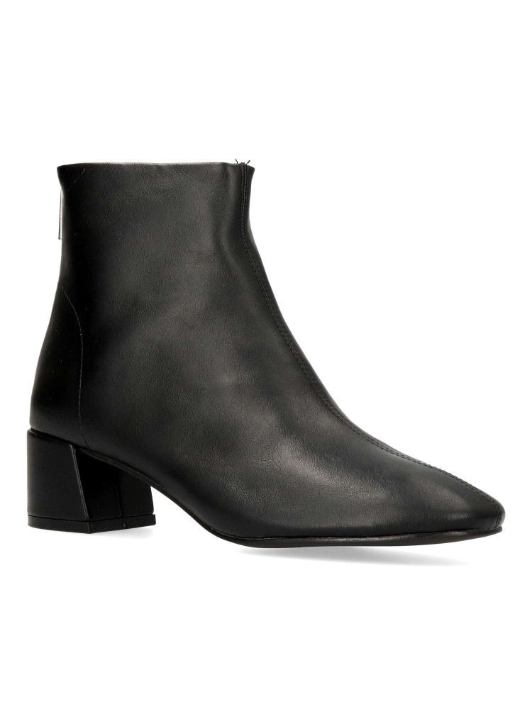 Botín confort de mujer, con cierre de cremallera trasera. Fabricado en piel sintética, con suela de goma. Tacón ancho de 4,5 cm. de altura. Caña de 13 cm. Color negro. Diseño clásico, cómodo y versátil, fácil de combinar con tus outfits de invierno.