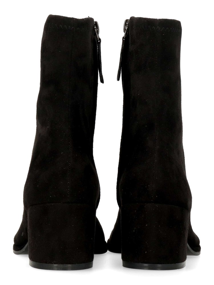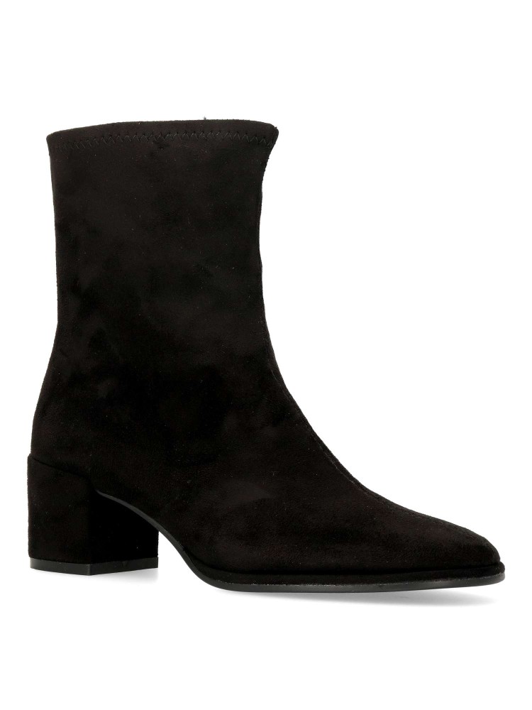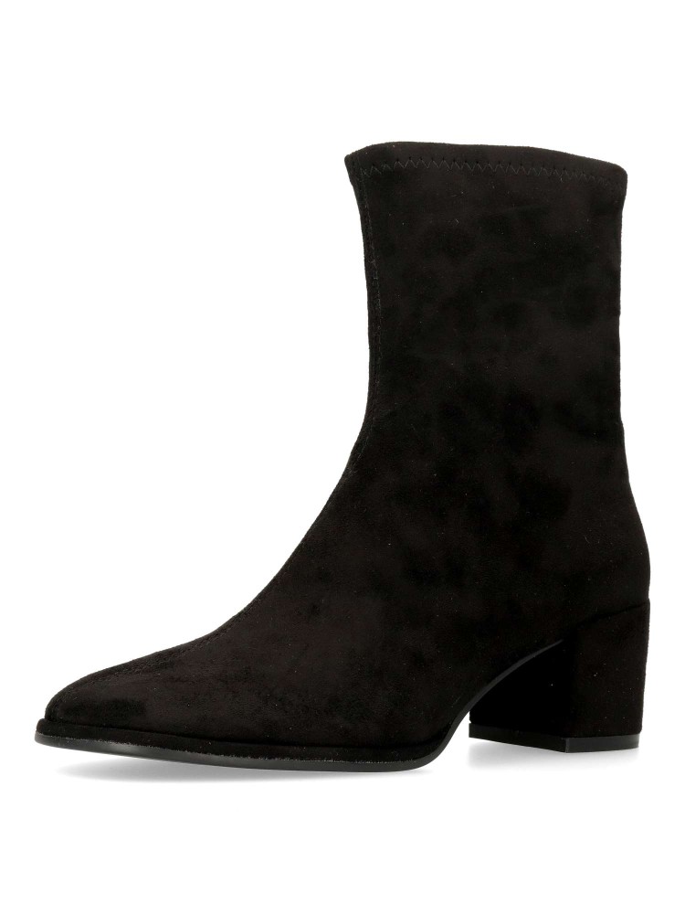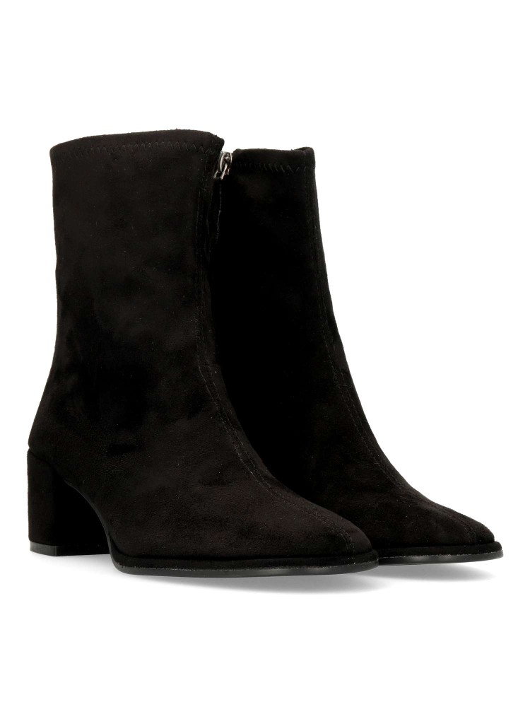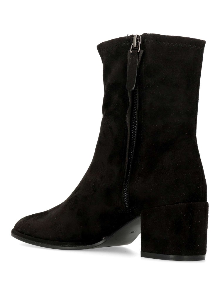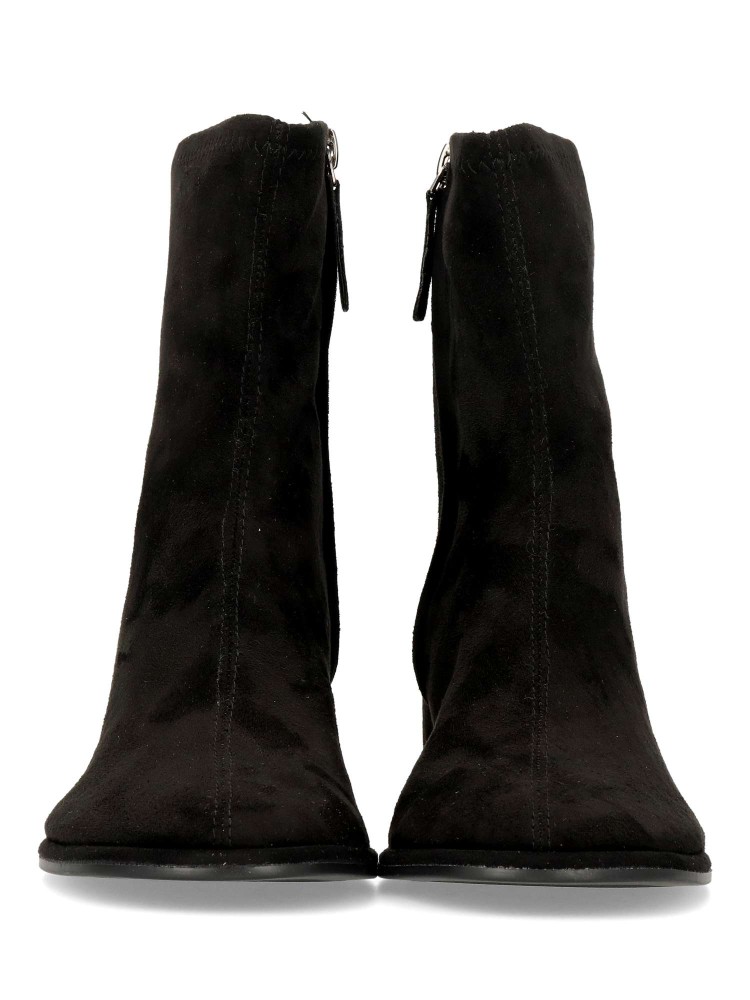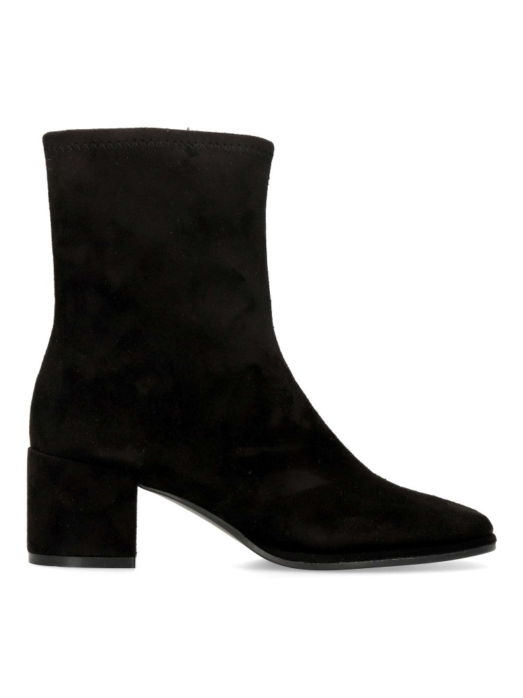 Botín cómodo de mujer, con cierre de cremallera lateral. Fabricado en material antelina elástica, con suela de goma. Tacón ancho de 5,5 cm. de altura. Caña de 16 cm. Color negro. Un básico que no te puede faltar esta temporada.