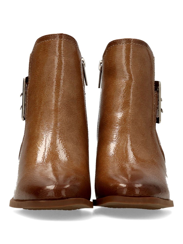 Botines de mujer con cierre de cremallera interior y elástico. Fabricados en piel sintética charol, con suela de goma. una combinación perfecta de diseño moderno y encanto atemporal. Estos botines aportan elegancia natural a cualquier look.