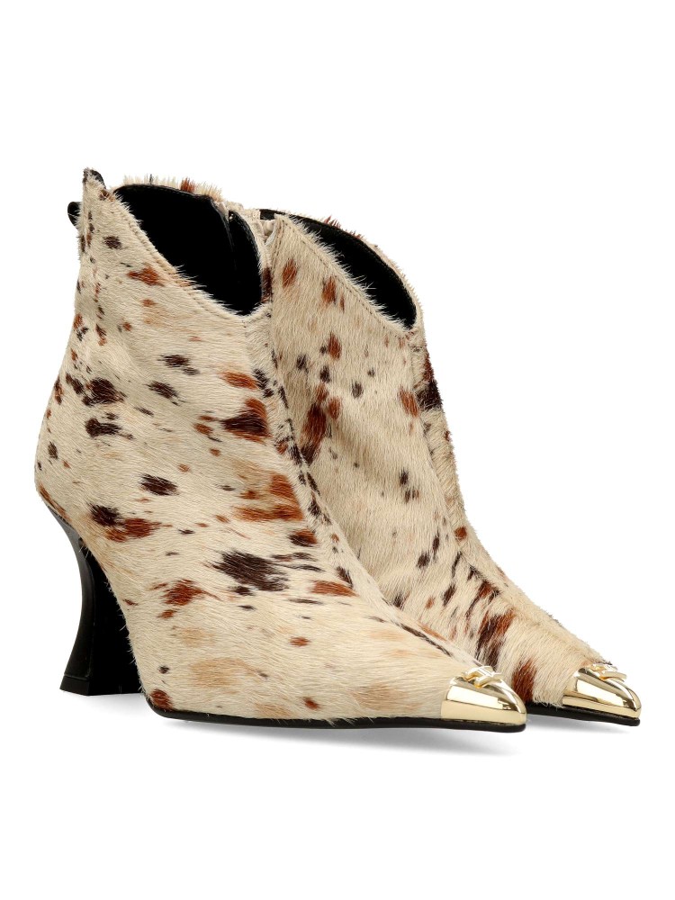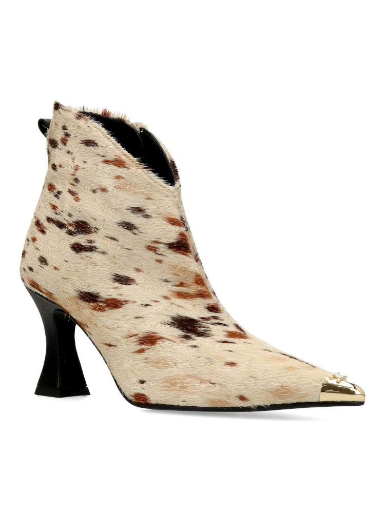 Botines de mujer Ezzio, fabricados en piel con acabado en print animal. Botín de piel de la máxima calidad, elegante, sofisticado y totalmente atemporal, botines PONY es un acierto seguro para complementar tus looks más sobrios esta temporada de otoño.