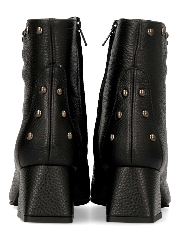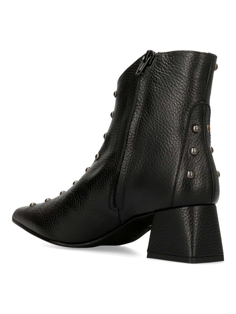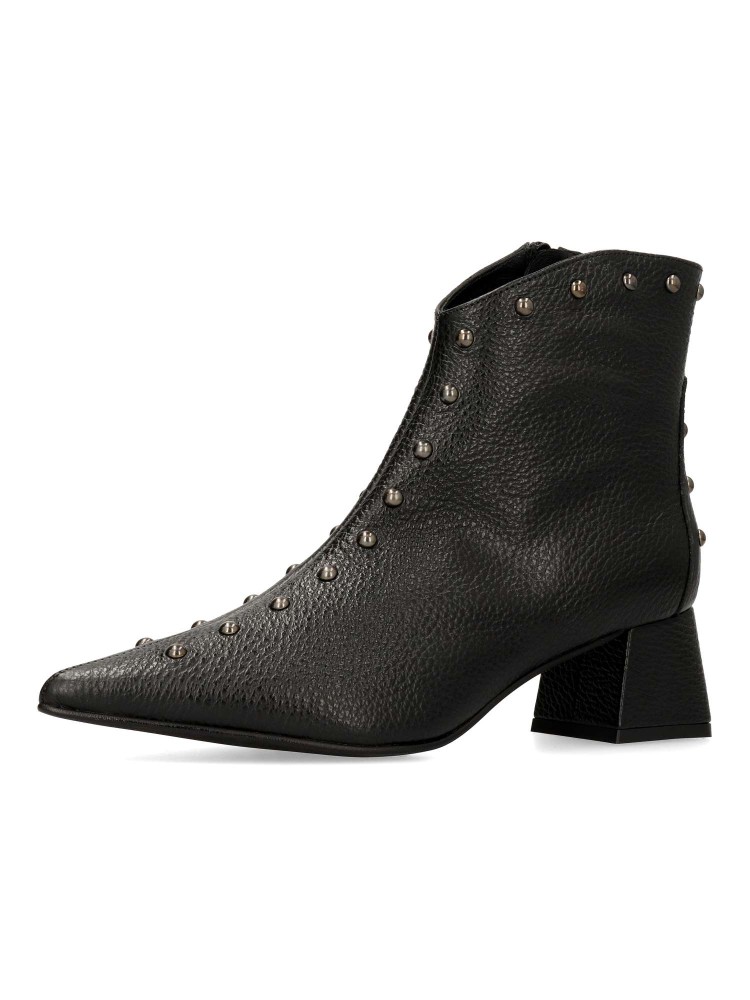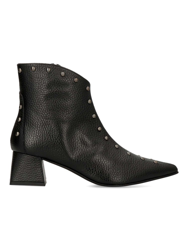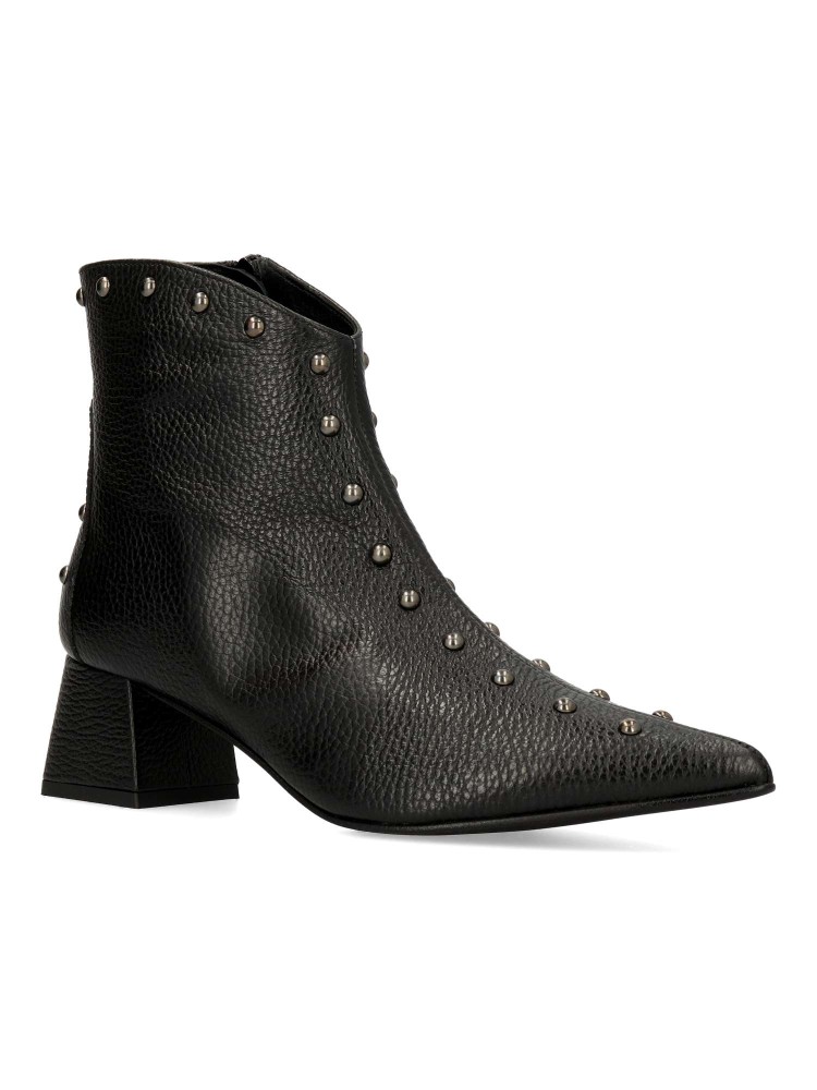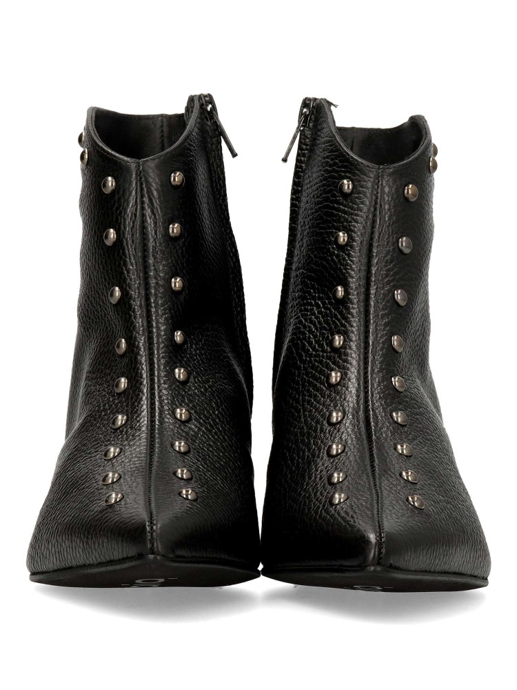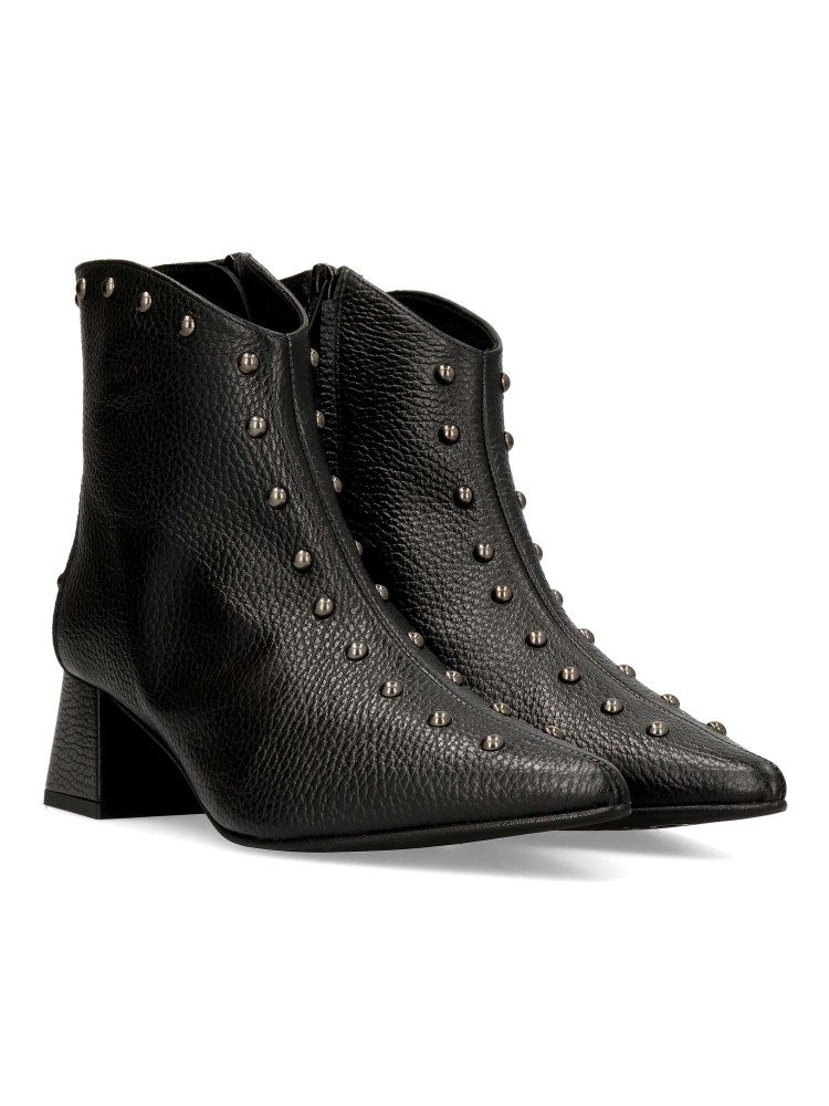 Botín negro con tachas de mujer, fabricado en piel de gran calidad. Tacón de 4,5 cm . Plantilla y forro interior también de piel. suela antideslizante. Muy cómodo para el día a día, también te arregla para una ocasión especial.